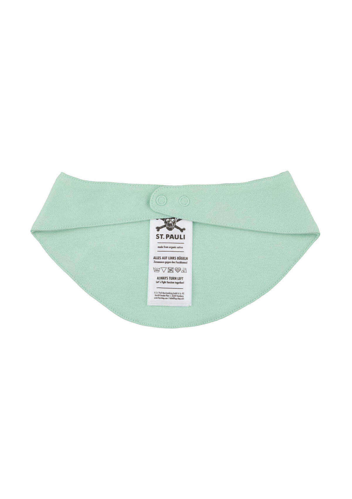 Warm eingepackt und trotzdem Statement setzen – mit der mintgrünen Baby Mütze „Allez Allez“ startet der FC St. Pauli Support schon im Kinderwagen. Vorn mit „Allez Allez“-Patch, hinten mit klassischem Totenkopf-Print. Weiche Bio-Baumwolle sorgt für ein angenehmes Tragegefühl auf zarter Babyhaut. Für kleine Kiezkicker, die’s von Anfang an richtig machen.