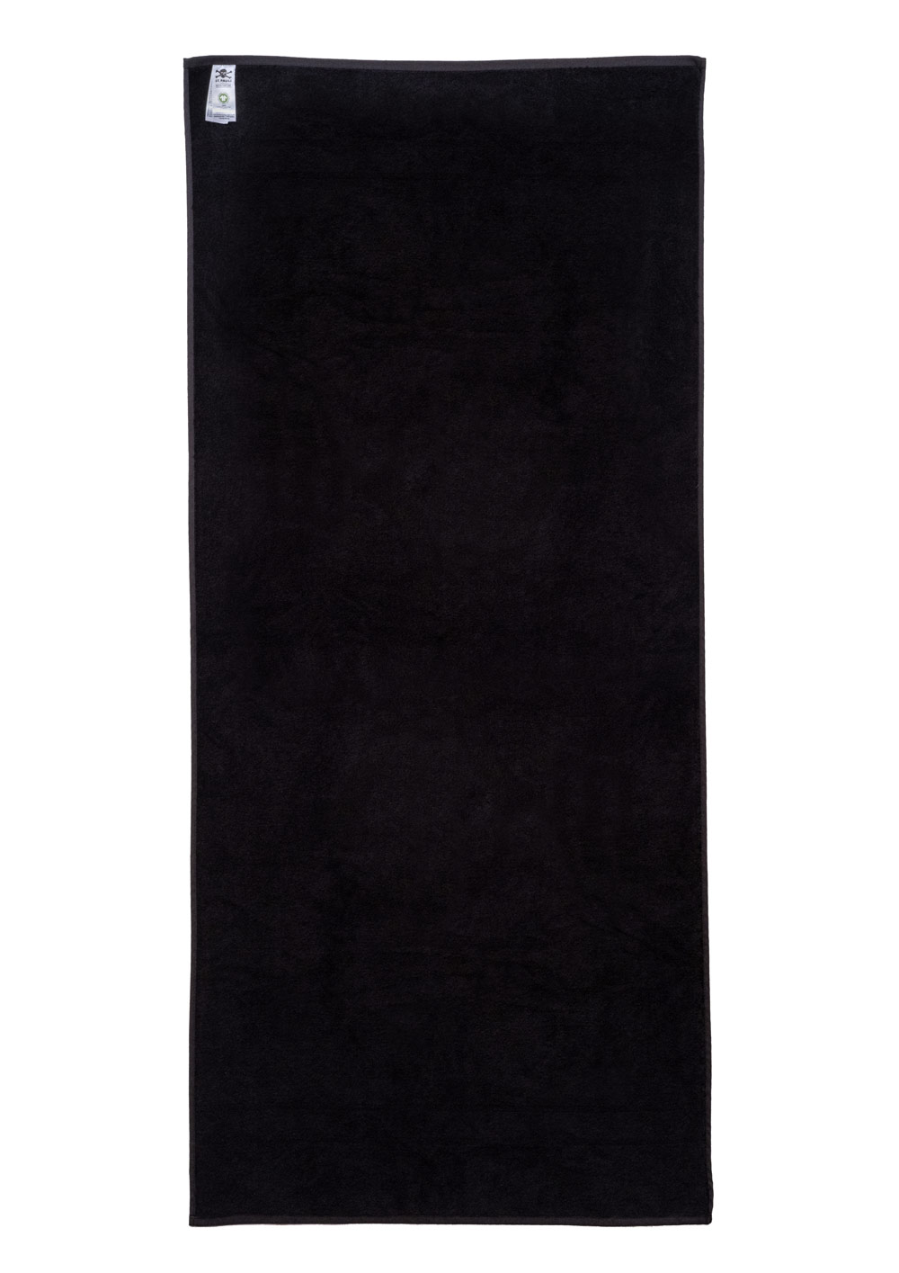 Großes, schwarzes Badehandtuch aus angenehm weicher 100% Bio-Baumwolle mit eingewebtem Totenkopf-Logo.