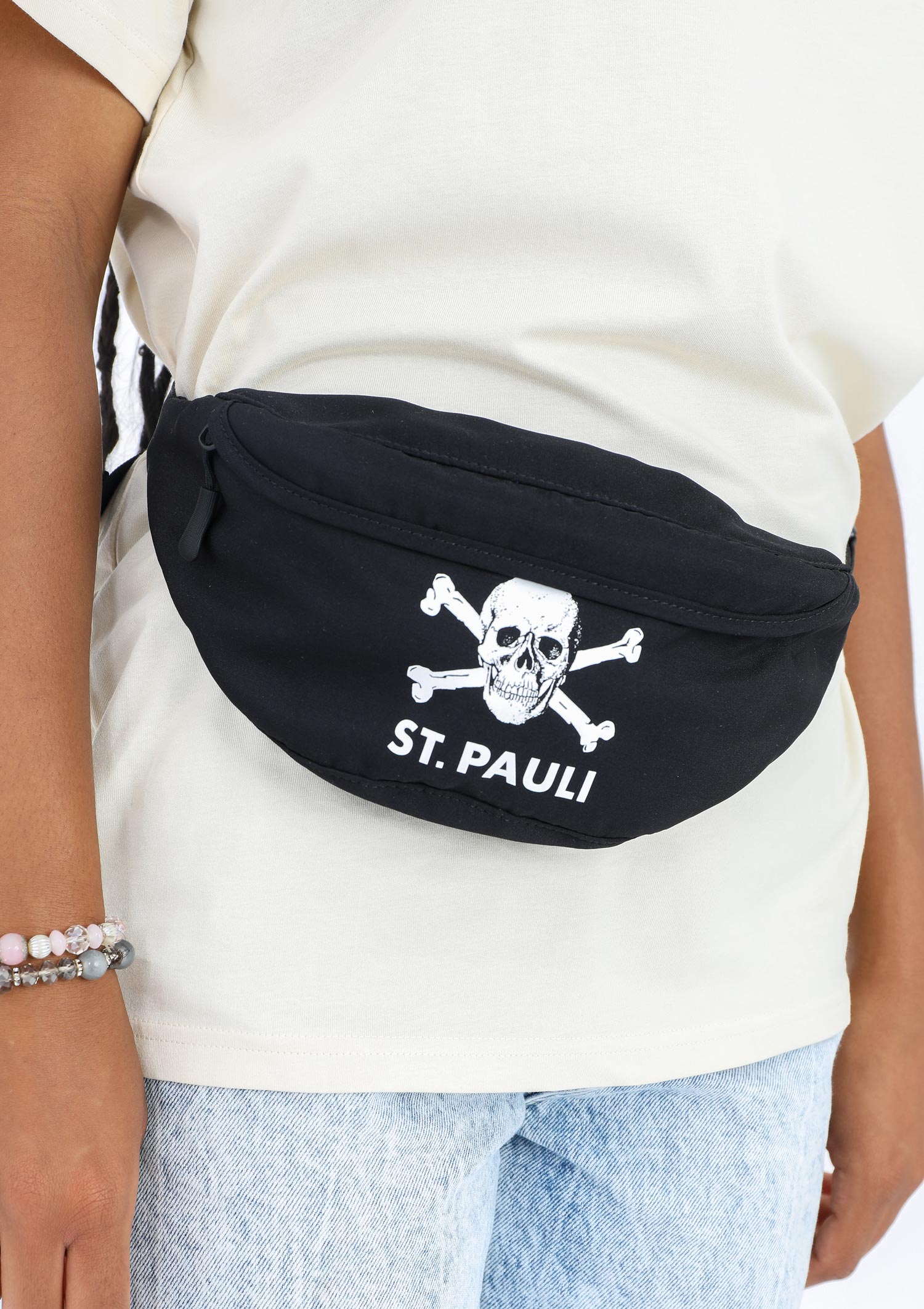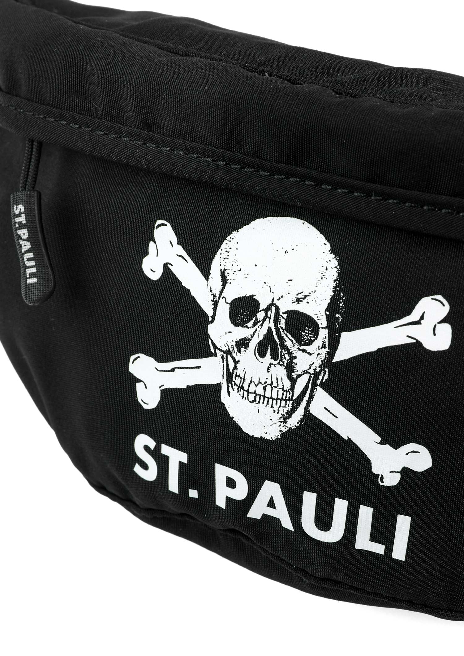 Geräumige Hip Bag in Schwarz mit geprintetem ST. PAULI Totenkopflogo und solidem Zipper zum sicheren Verstauen deiner Accessoires.