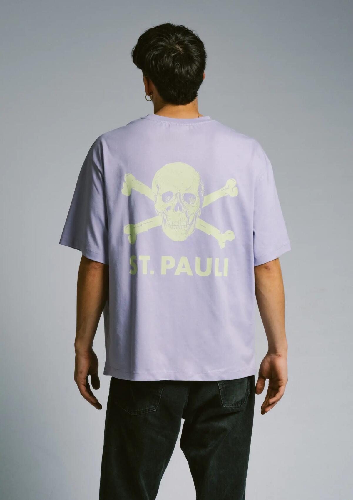 Das FC St. Pauli T-Shirt „Lavender / Lime“ verbindet klare Linien mit der unverwechselbaren Symbolik des Vereins. Der ruhige Lavendelton trifft auf einen kontrastreichen Lime-Print des klassischen Totenkopf-Emblems. Auf der Vorderseite sitzt das Logo dezent auf der Brust, während auf dem Rücken ein großflächiger Skull-&-Crossbones-Print mit „ST. PAULI“ Schriftzug für eine markante Aussage sorgt.Der Schnitt orientiert sich an klassischer Streetwear und lässt sich vielseitig kombinieren – im Stadion, im Alltag oder unterwegs in der Stadt. Die reduzierte Front und der prägnante Rückenprint greifen typische Elemente der FC St. Pauli Fan- und Straßenkultur auf und bringen sie in ein klares, modernes Design.Ein FC St. Pauli T-Shirt für alle, die Fußballkultur, Haltung und urbanen Stil selbstverständlich miteinander verbinden.