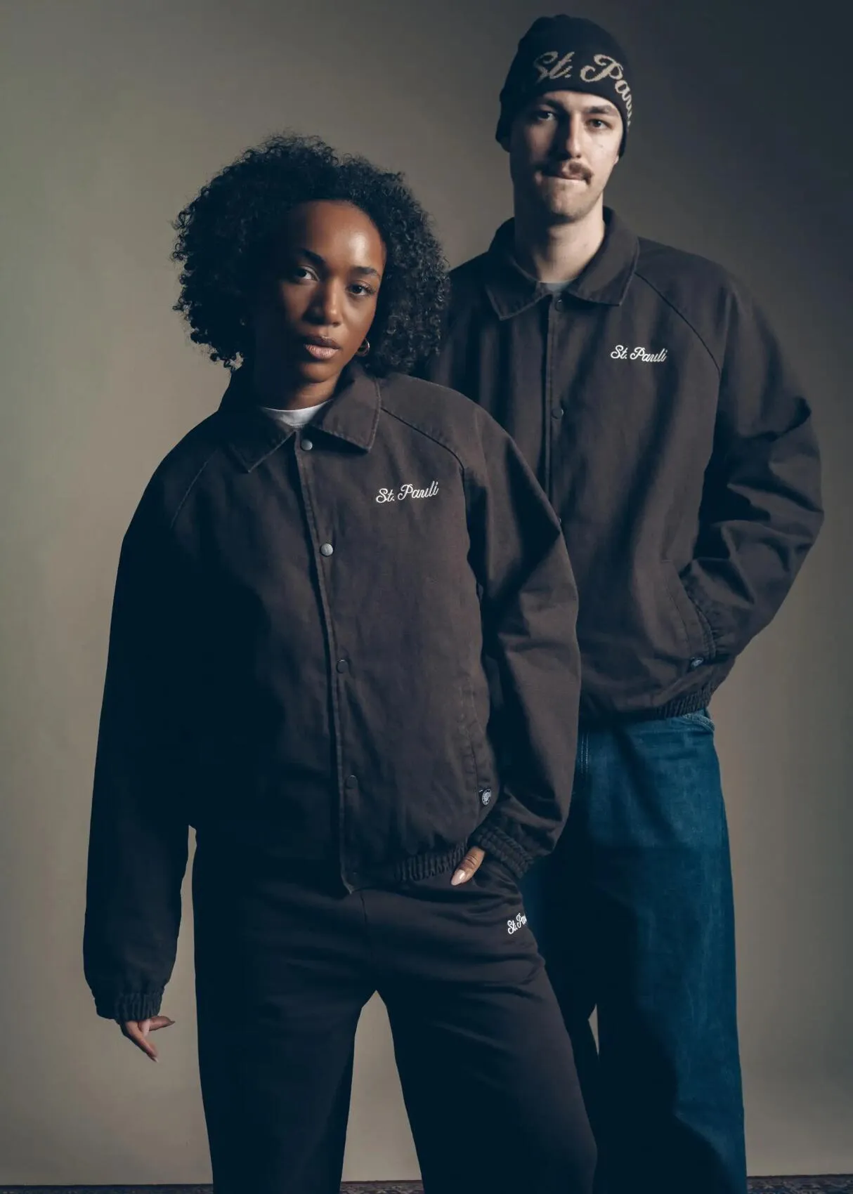 Die FC St. Pauli Jacke „St. Pauli Script“ in Braun verbindet sportliche Silhouette mit klarer, urbaner Haltung. Der dezente „St. Pauli“-Script-Stick auf der Brust setzt ein bewusst reduziertes Statement und verankert das Design sichtbar in der Fußballkultur am Millerntor. Die dunkle Braun-Nuance greift die Vereinsfarben auf und steht für einen zeitlosen Look zwischen Stadion und Straße.Mit klassischem Kentkragen, durchgehender Druckknopfleiste und elastischen Bündchen an Saum und Ärmeln bietet die Jacke funktionale Details für Alltag und Spieltag. Seitliche Eingrifftaschen sorgen für praktischen Stauraum, während die lockere Passform Bewegungsfreiheit garantiert. Ob über Hoodie, Sweatshirt oder T-Shirt getragen – diese FC St. Pauli Jacke ist ein vielseitiges Essential für jede Saison.