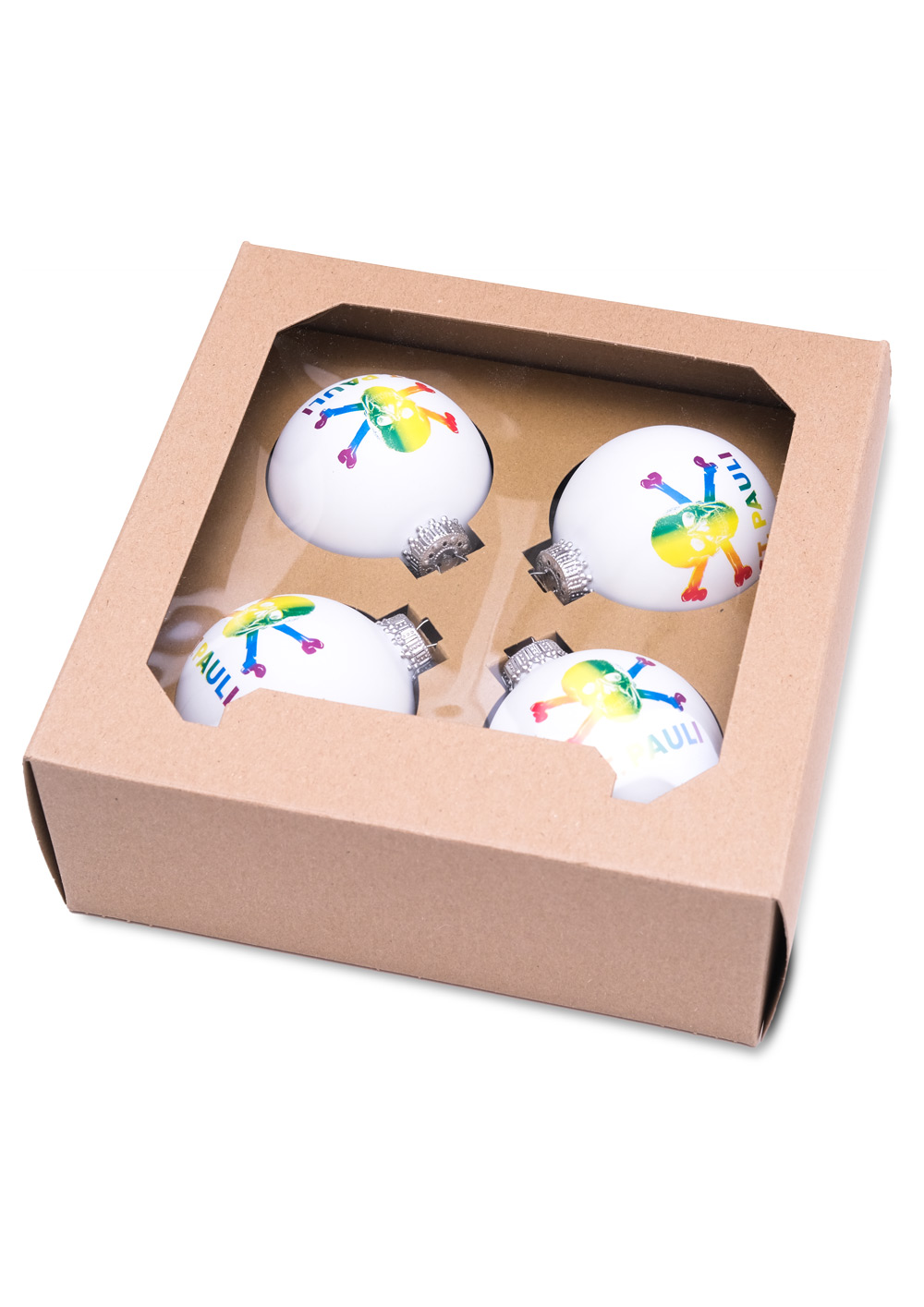 Mit dem FC St. Pauli Christbaumkugel Regenbogen 4er Set wird dein Weihnachtsbaum so bunt wie der Kiez! Die weißen Kugeln sind mit dem ikonischen Totenkopf in strahlenden Regenbogenfarben und dem Schriftzug "St. Pauli" verziert. Perfekt für alle, die Vielfalt und Fanliebe feiern möchten. Diese Kugeln bringen nicht nur Glanz in deine Festtagsdeko, sondern stehen auch für die Werte des Vereins: Offenheit und Zusammenhalt.