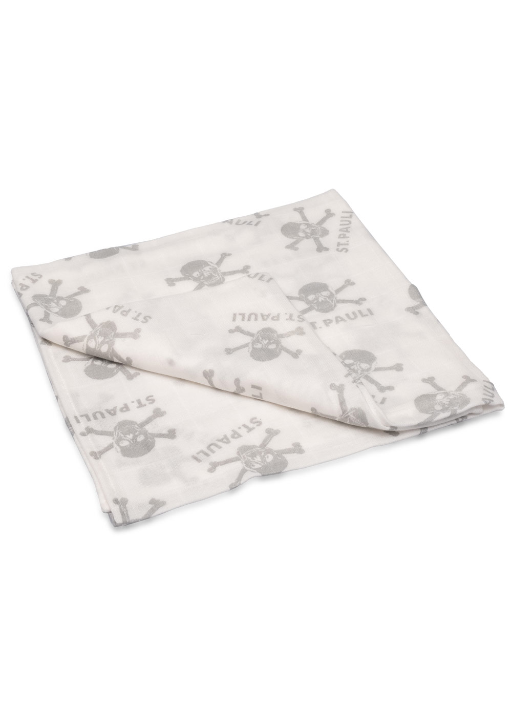 Ready to splash: Fluffy soft and easy-care baby towel in gray with embroidered black ST. PAULI skull logo. The baby towel is made of 100% organic cotton.