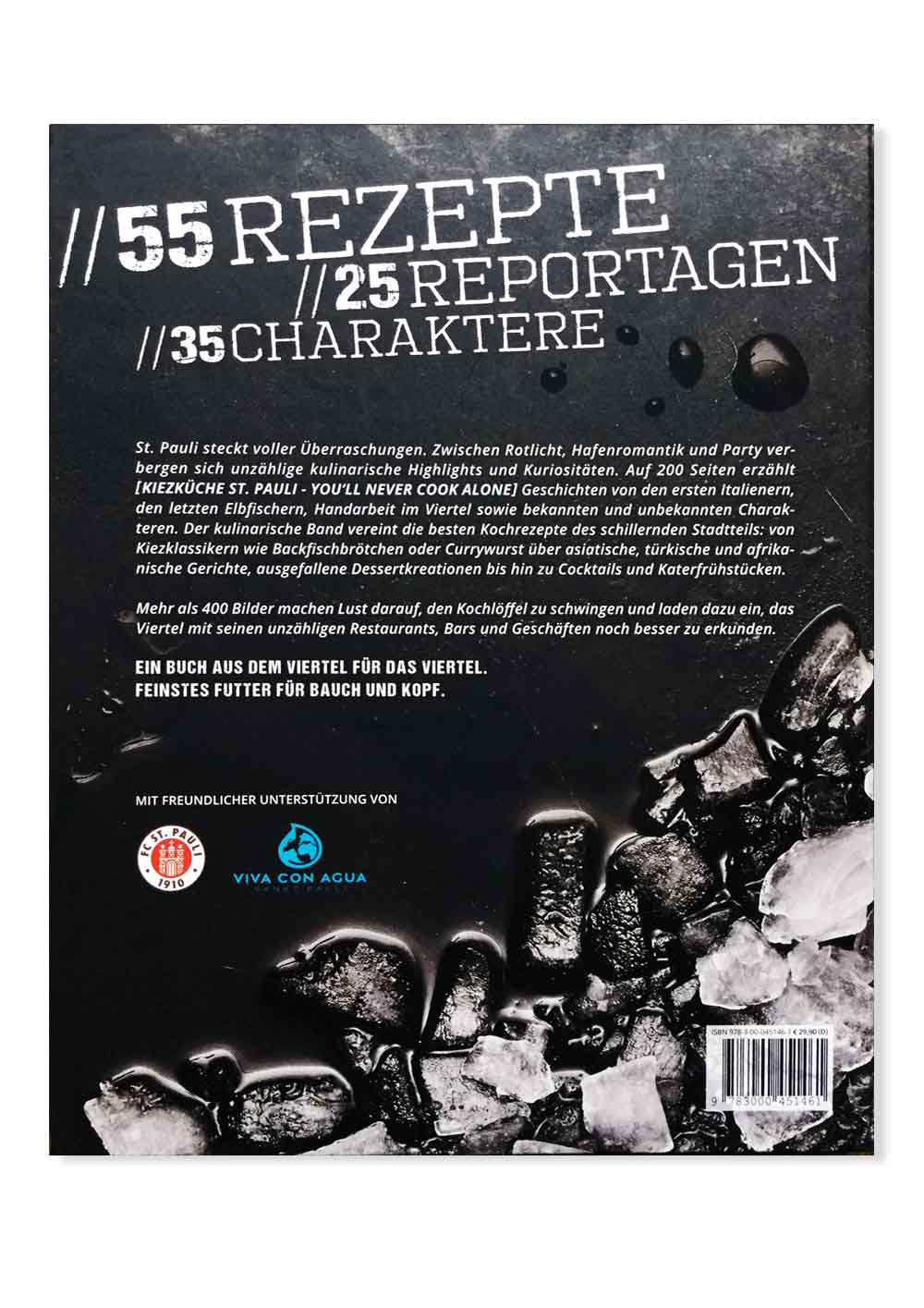 St. Pauli steckt voller Überraschungen. Zwischen Rotlicht, Hafenromantik und Party verbergen sich unzählige kulinarische Highlights und Kuriositäten. Auf 200 Seiten erzählt ""Kiezküche St. Pauli - You'll never cook alone"" Geschichten von den ersten Italienern, den letzten Elbfischern, Handarbeit im Viertel sowie bekannten und unbekannten Charakteren. Der kulinarische Band vereint die besten Kochrezepte des schillernden Stadtteils: von Kiezklassikern wie Backfischbrötchen oder Currywurst über asiatische, türkische und afrikanische Gerichte, ausgefallene Dessertkreationen bis hin zu Cocktailsund Katerfrühstücken.