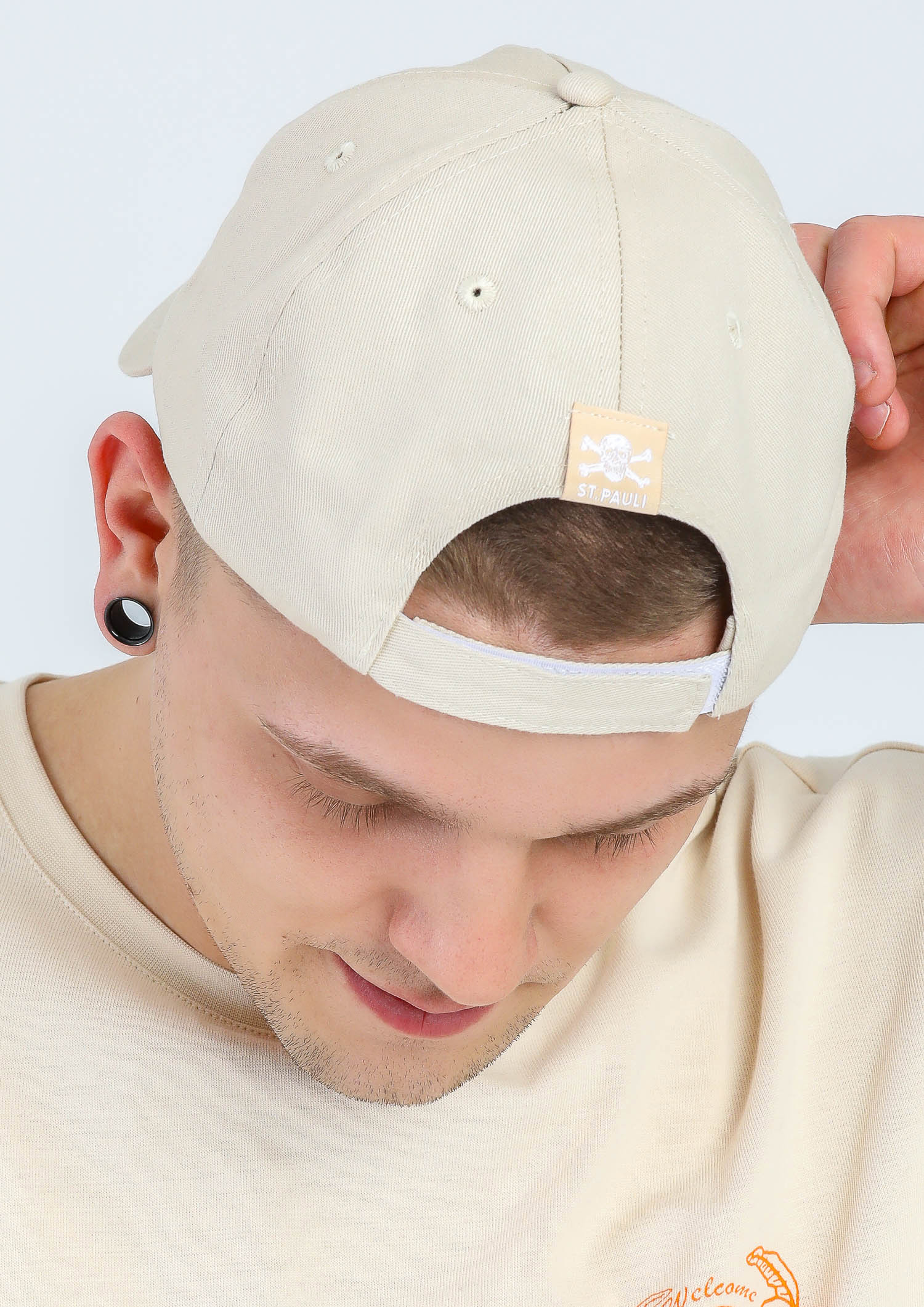 Show off your style with the "Welcome to Hell - Palm" Cap in summery beige featuring bold orange embroidery of palm trees and the FC St. Pauli logo. The "Enjoy Your Stay" message adds a playful vibe – perfect for sunny days and true fans!
