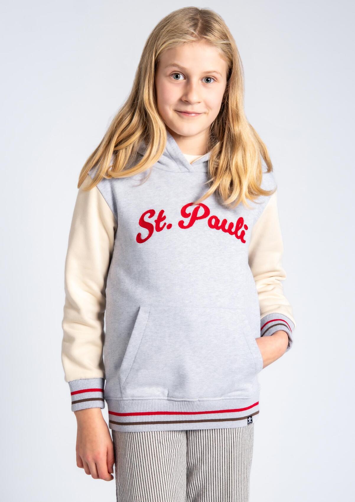 The classic jumper for kids also in grey. You can't get more St.Pauli than this. Basic hooded made of 300 gr. cotton. Large front motive in screen print. Developed on St. Pauli for St.Pauli.
