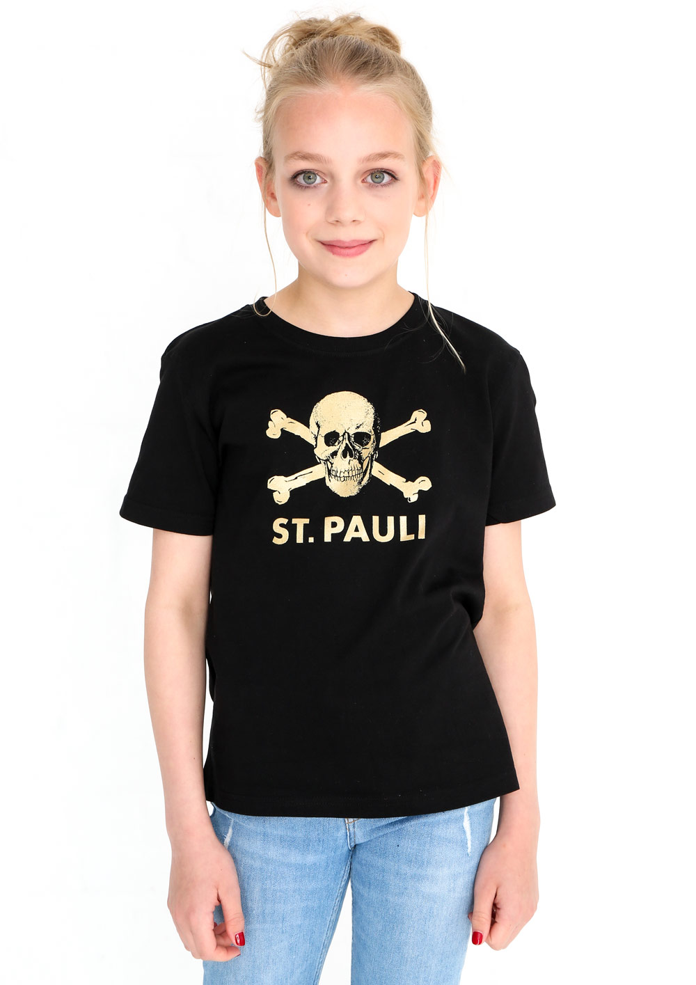 Kinder T-Shirt, Basic Schnitt, Tk Druck in gold vorne gross