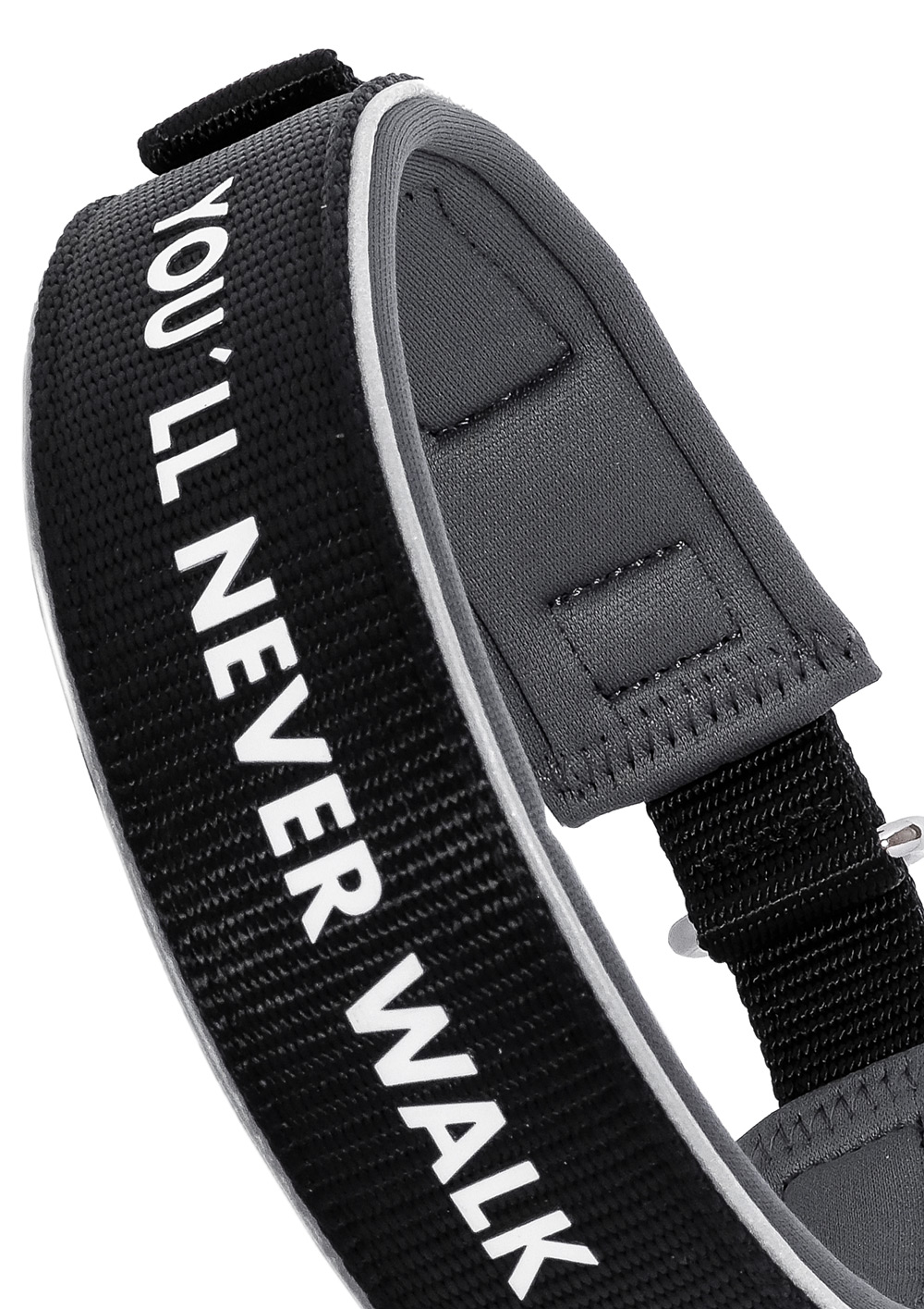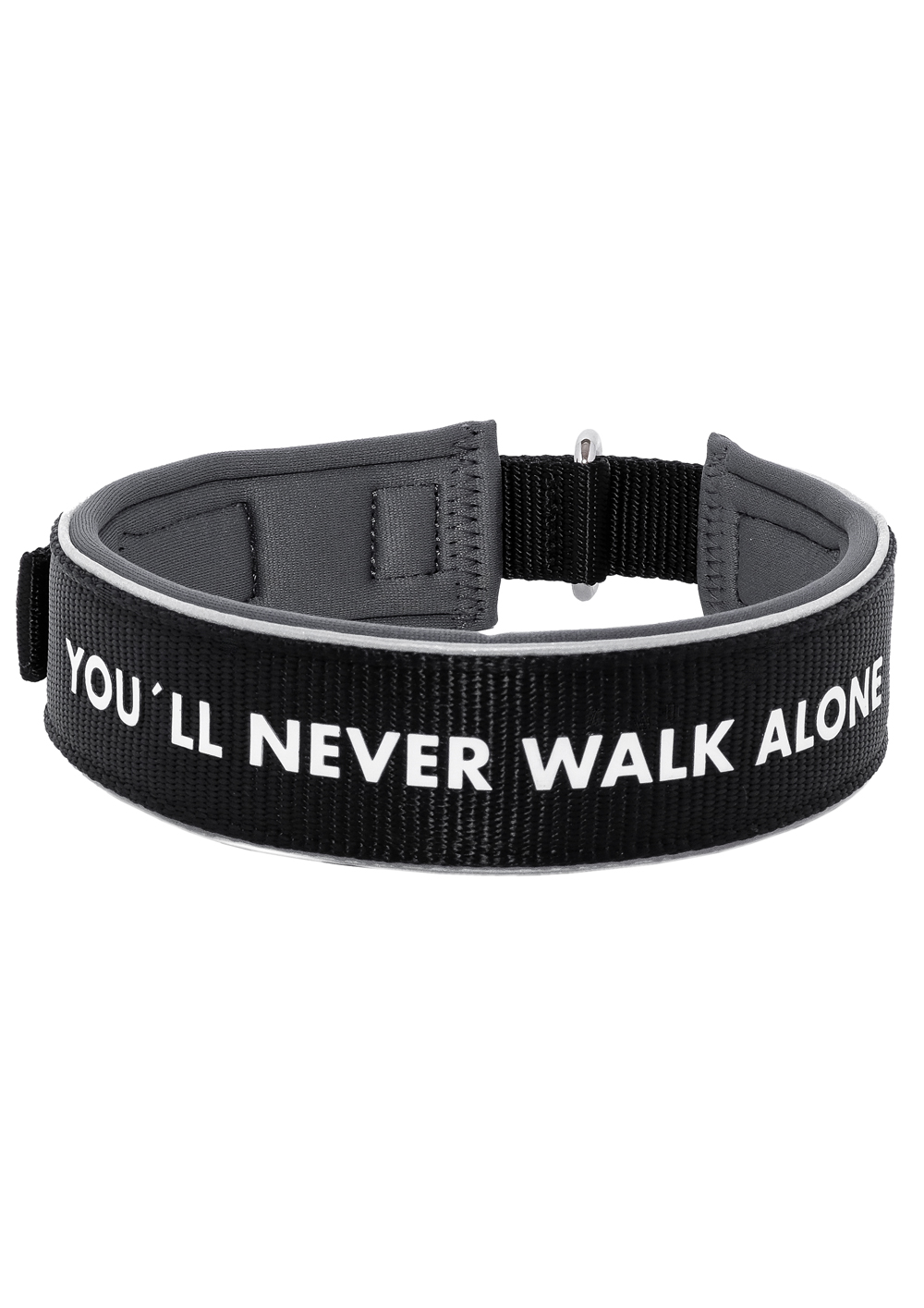 Black nylon dog leash with 3-way adjustment to a length of 20 cm to 200 cm. The neoprene inside gives you a good and pleasantly soft grip. Of course with the matching print for best friends: "You'll never walk alone"!