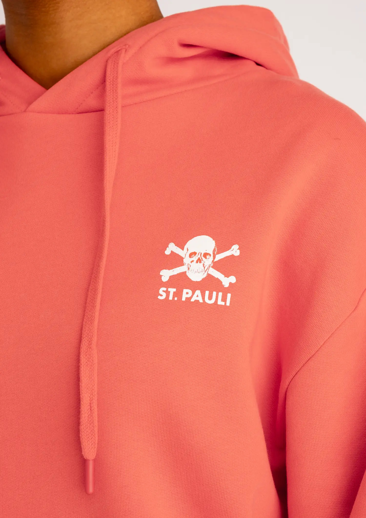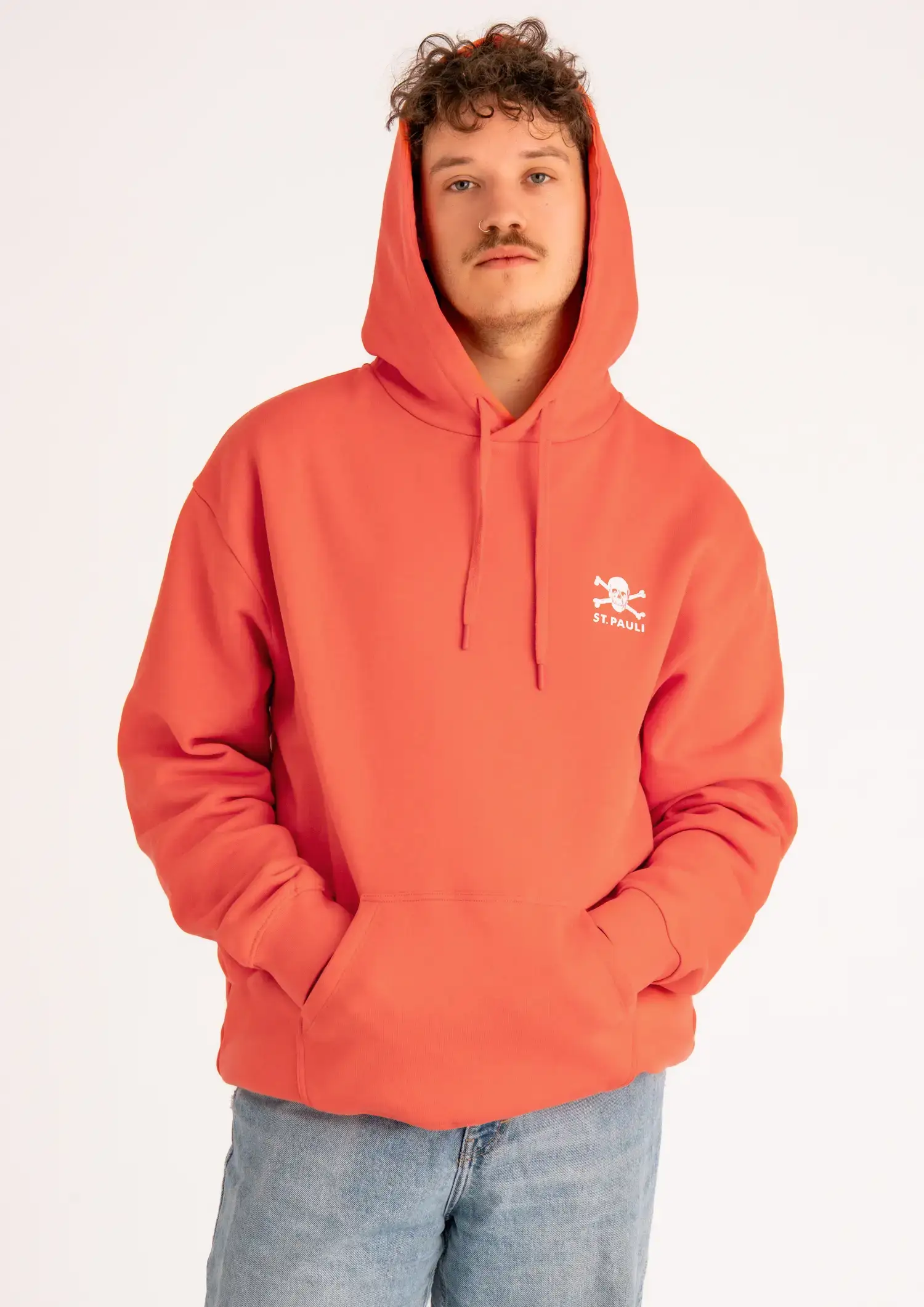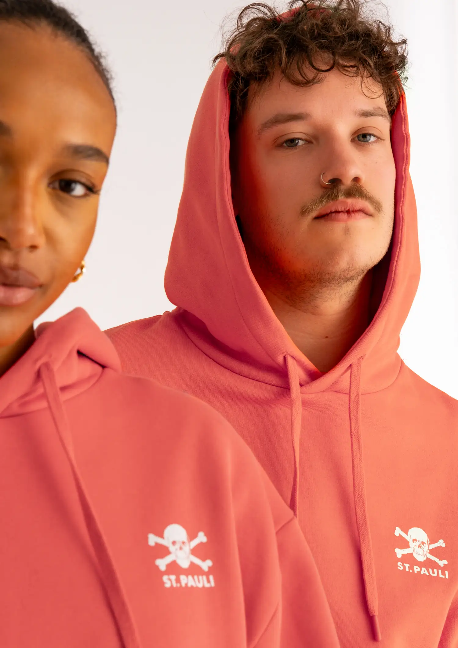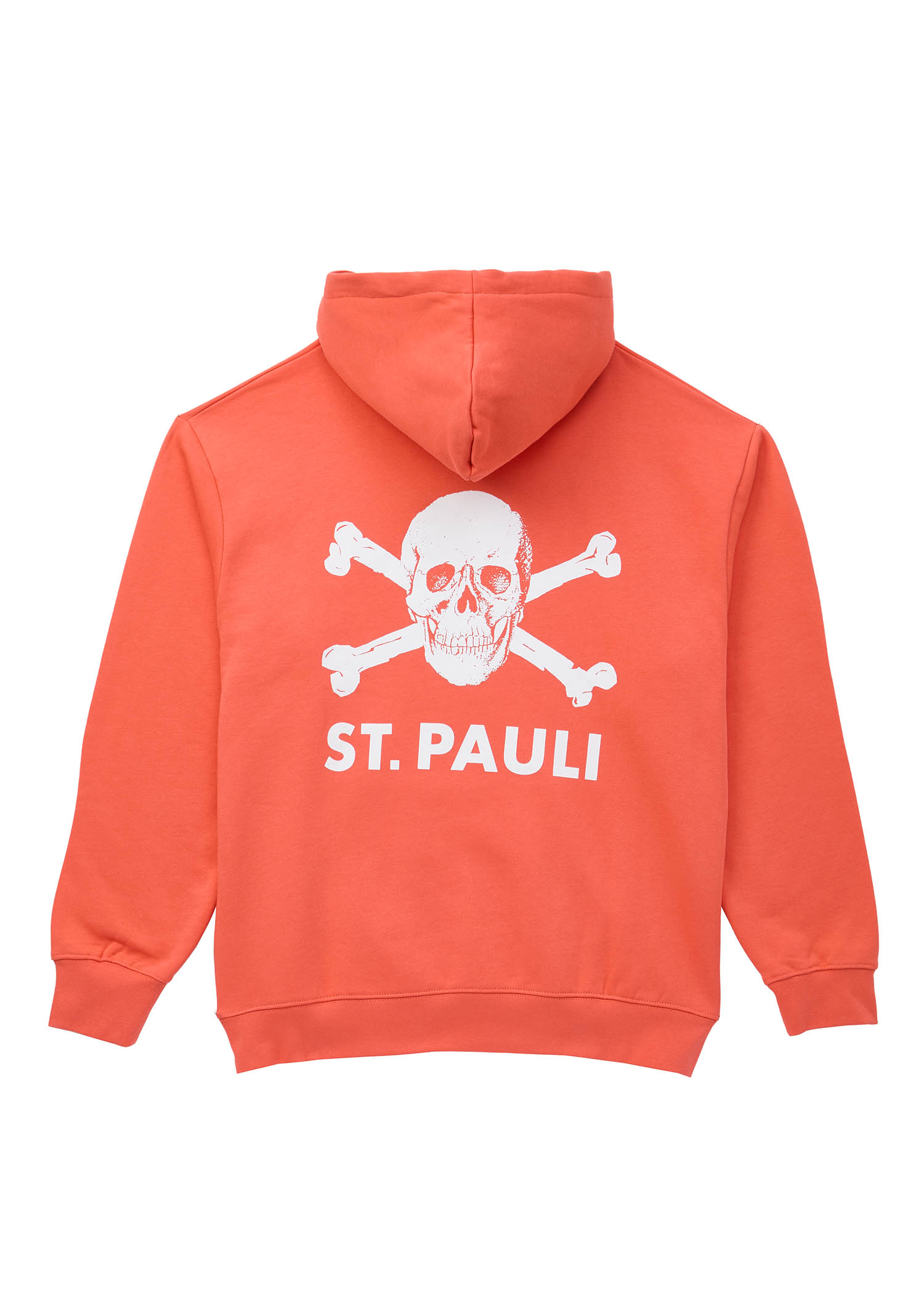 Loud, bold, unmistakably St. Pauli – this coral-colored hoodie brings the heat with a small skull & crossbones logo on the chest and a bold full-back print. The relaxed fit and 100% cotton fabric deliver laid-back comfort with serious attitude. Whether you're at the match or on the streets, this piece speaks for itself –front to back.