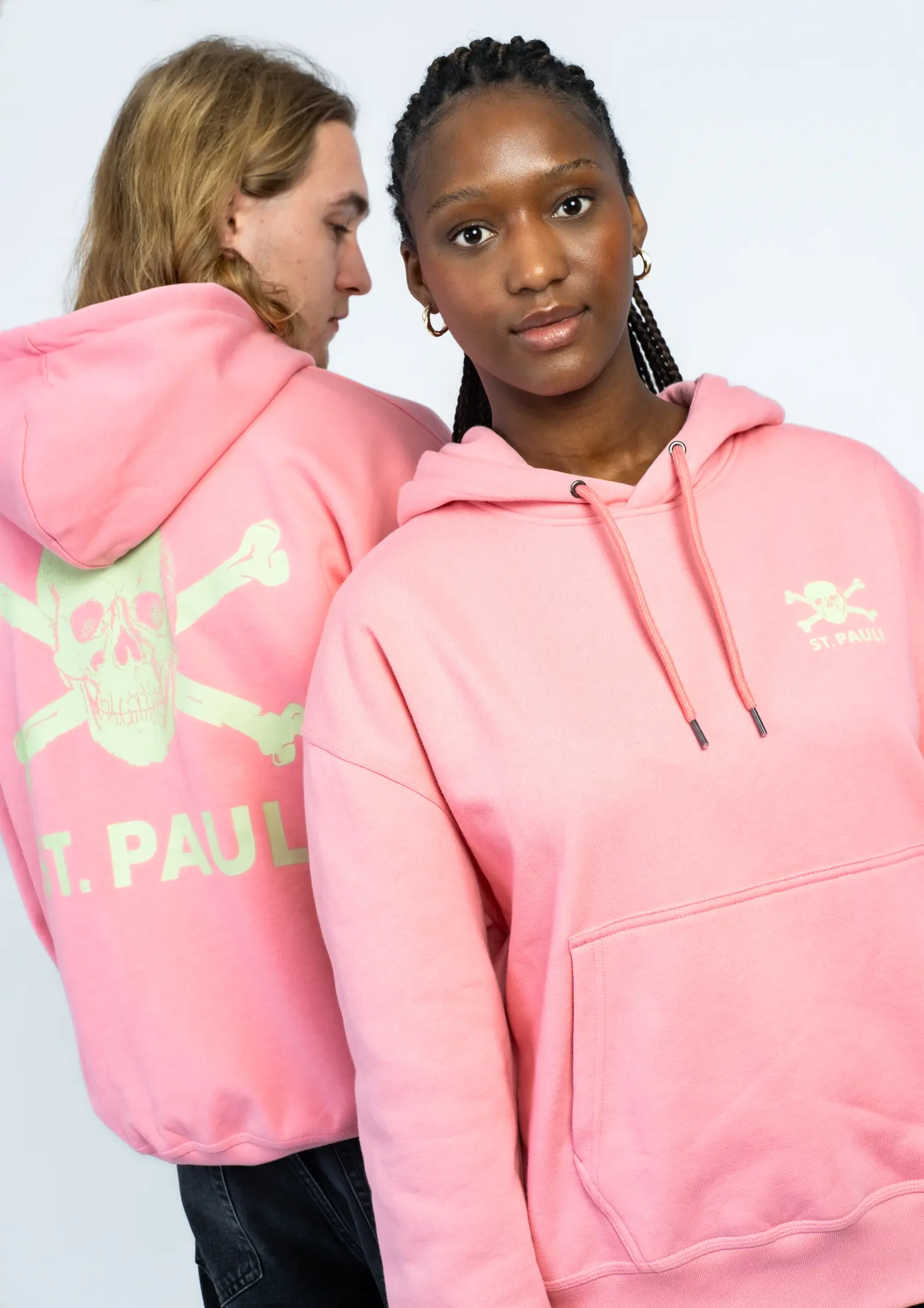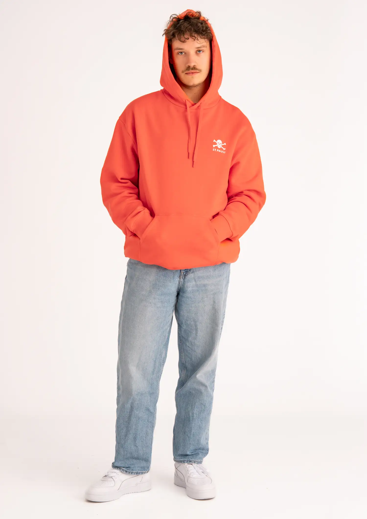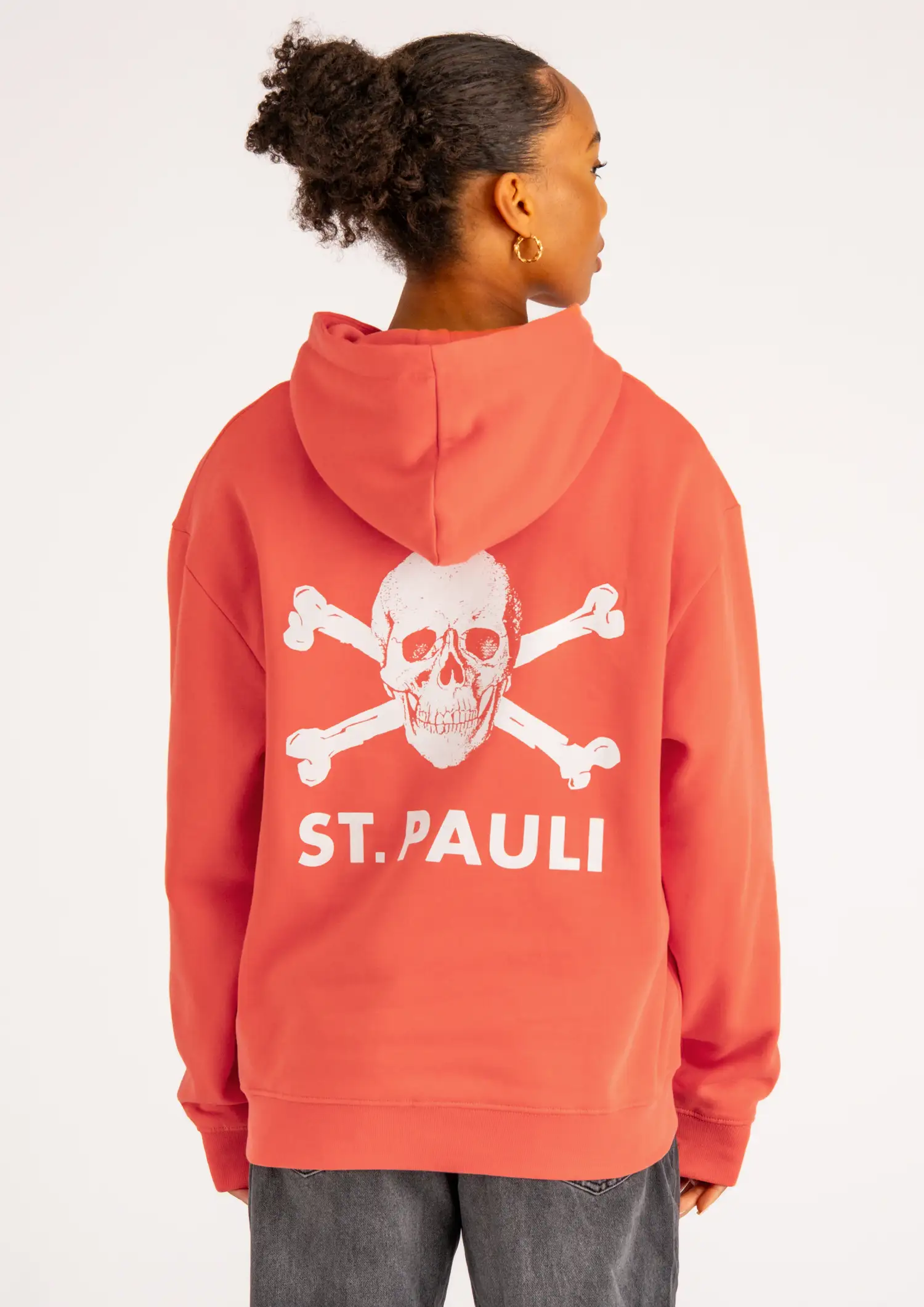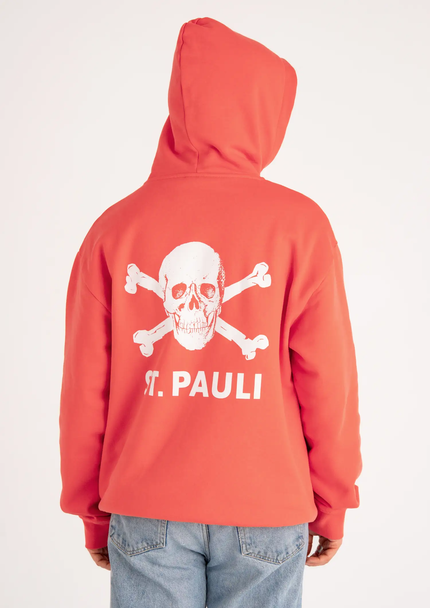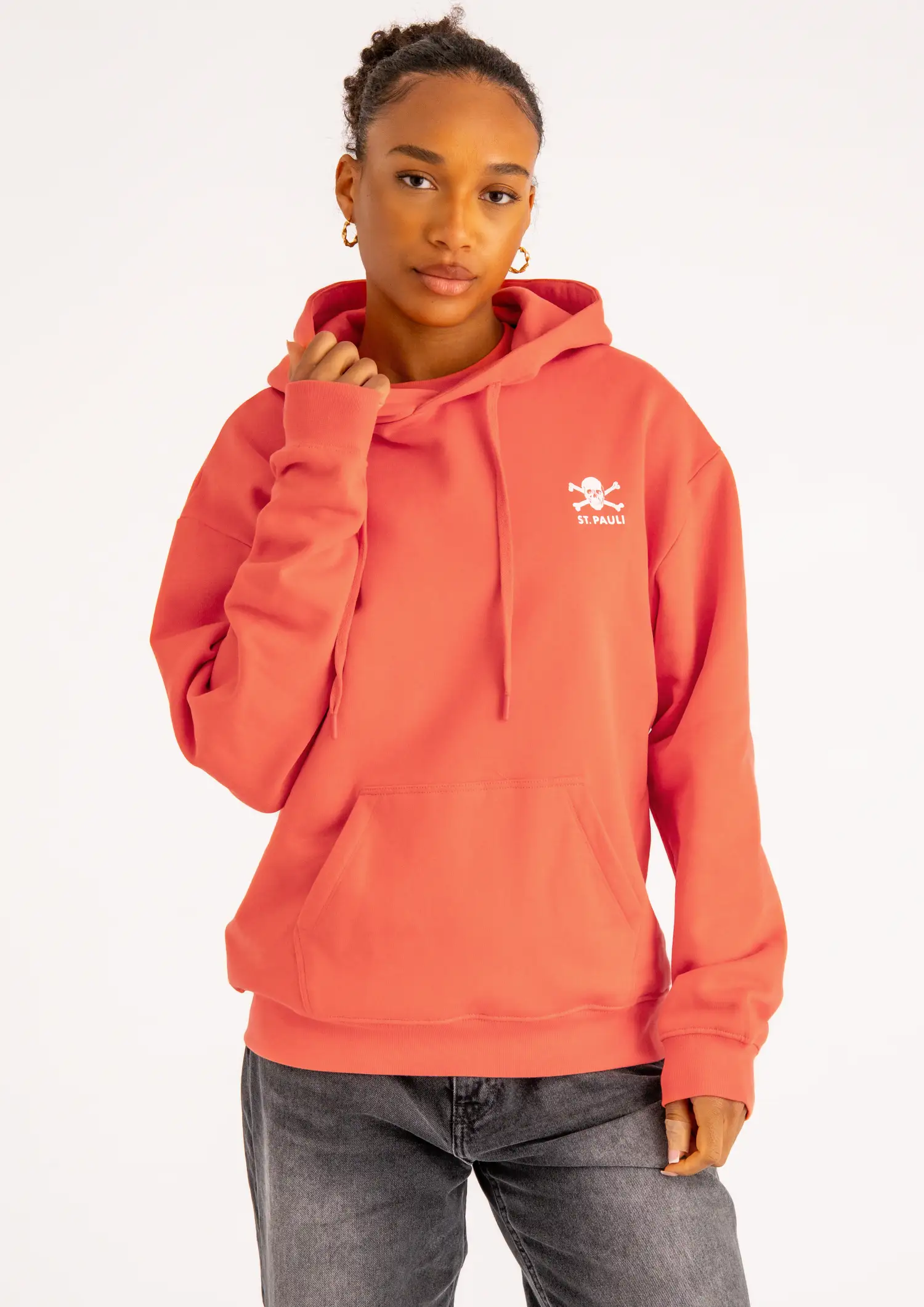 Loud, bold, unmistakably St. Pauli – this coral-colored hoodie brings the heat with a small skull & crossbones logo on the chest and a bold full-back print. The relaxed fit and 100% cotton fabric deliver laid-back comfort with serious attitude. Whether you're at the match or on the streets, this piece speaks for itself –front to back.
