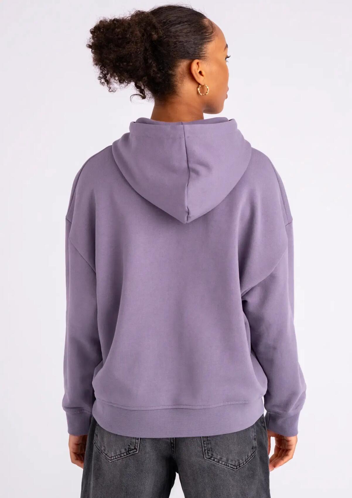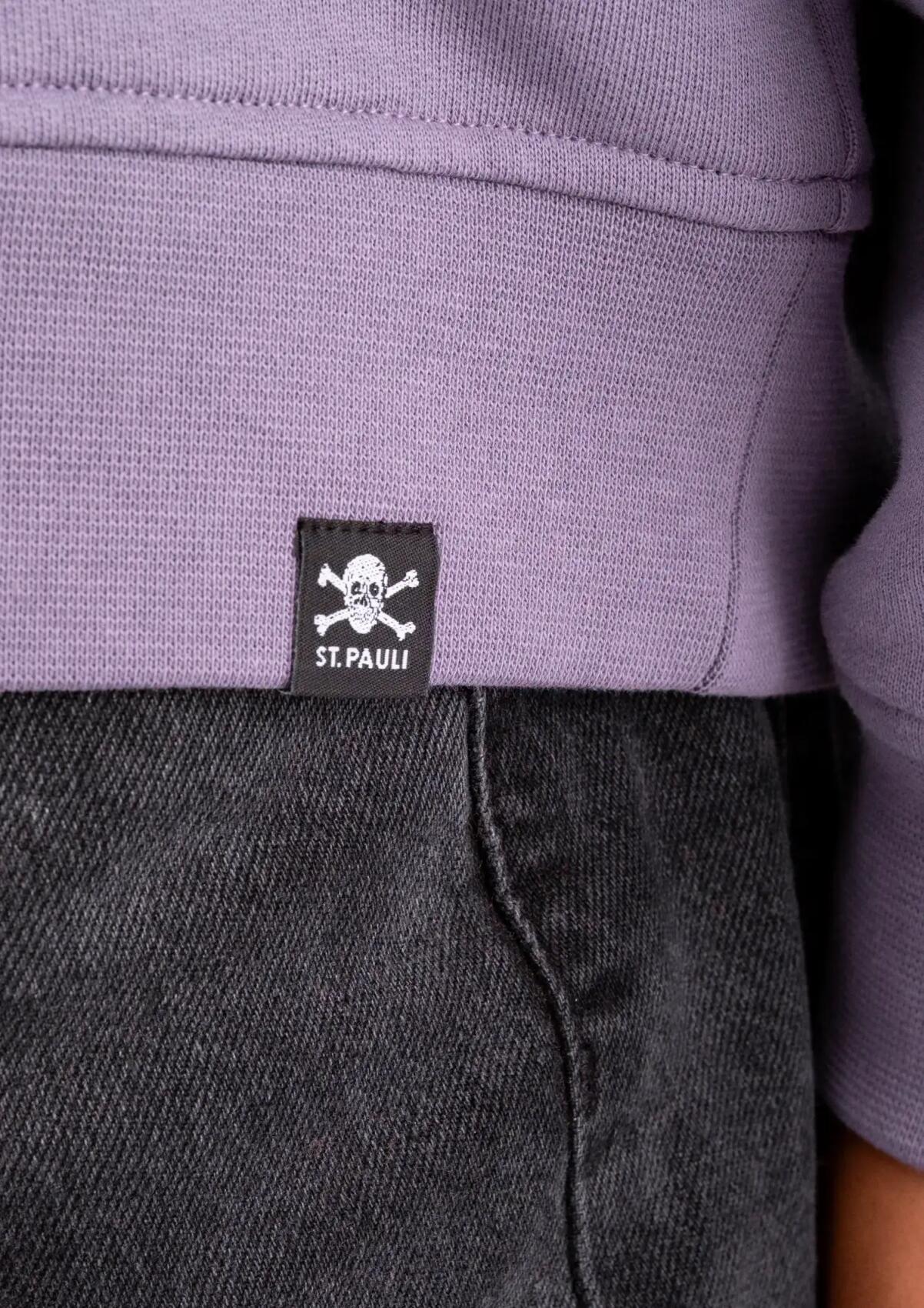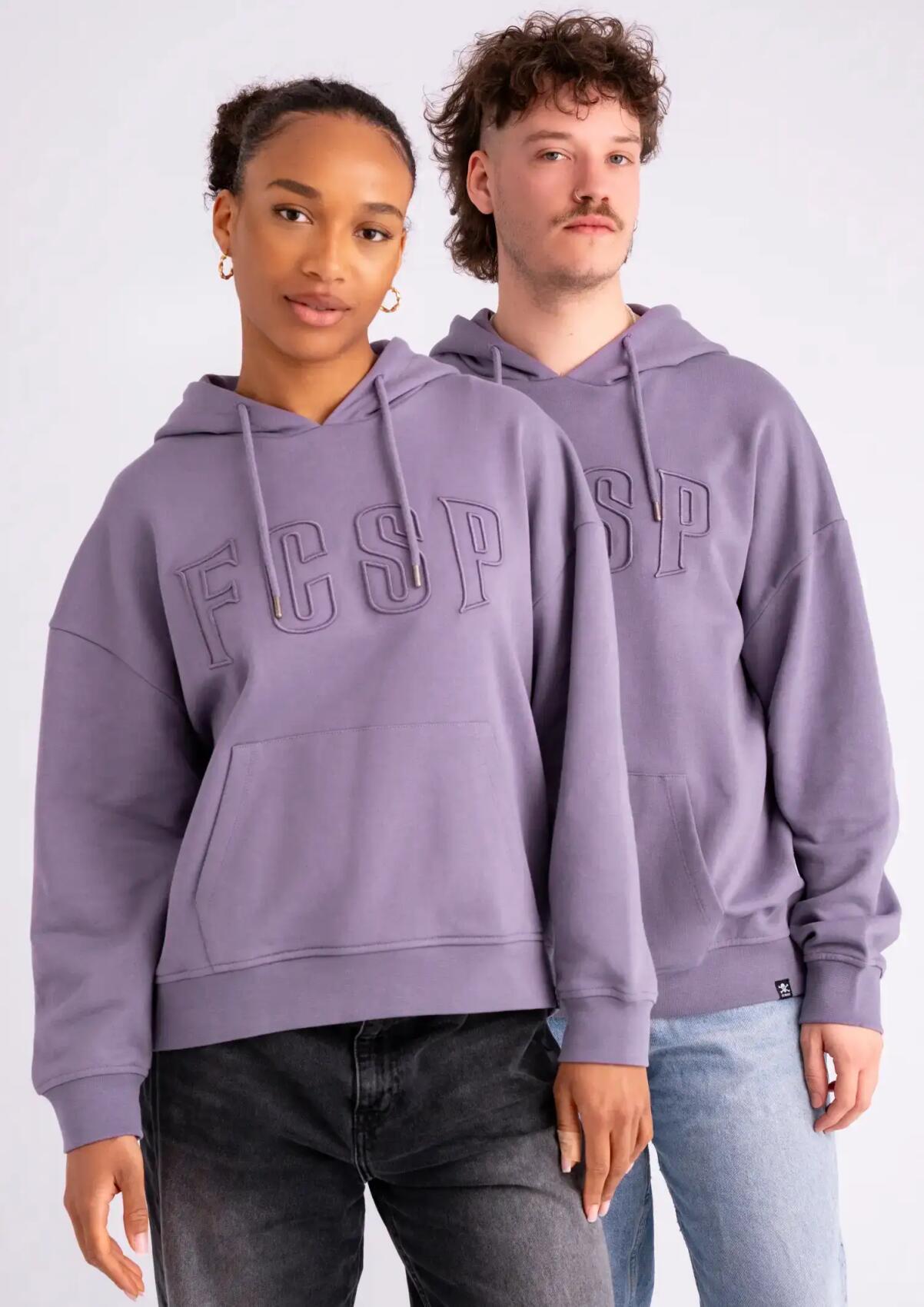 The purple FC St. Pauli hoodie "FCSP Embro" comes with a high-quality FCSP outline embroidery on the chest and a relaxed boxy fit. Ideal for a stroll through the Karoviertel or the Kiez. Made from 100% organic cotton.
