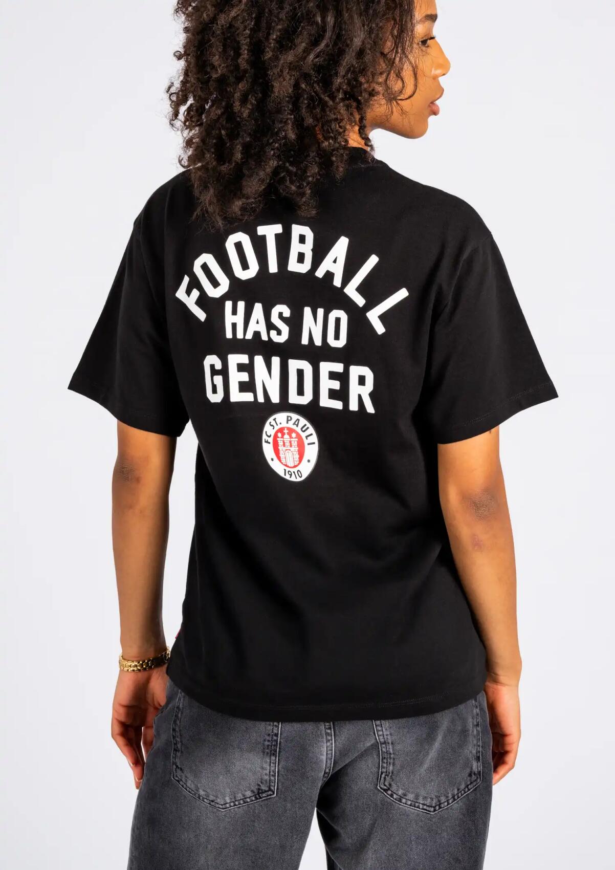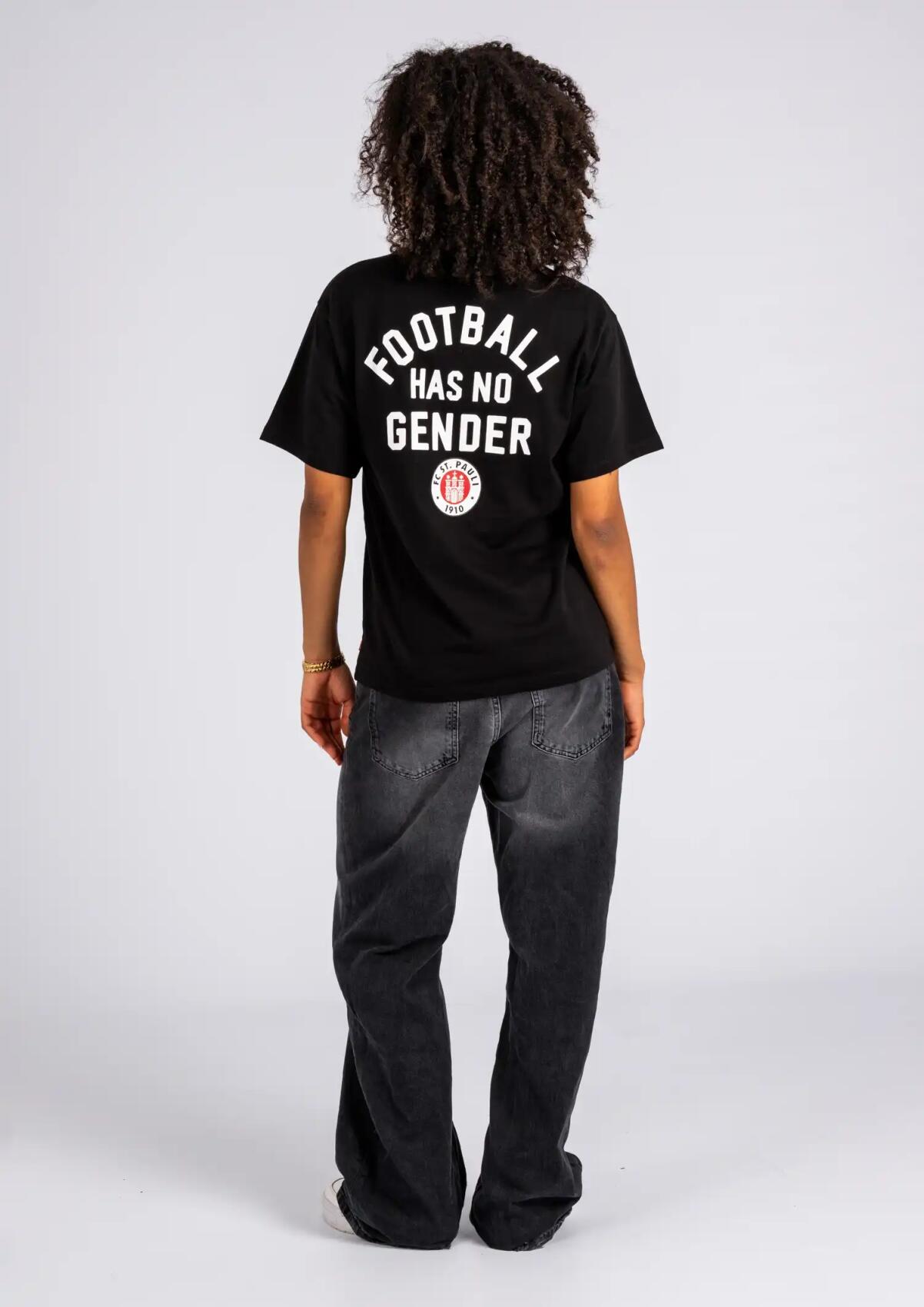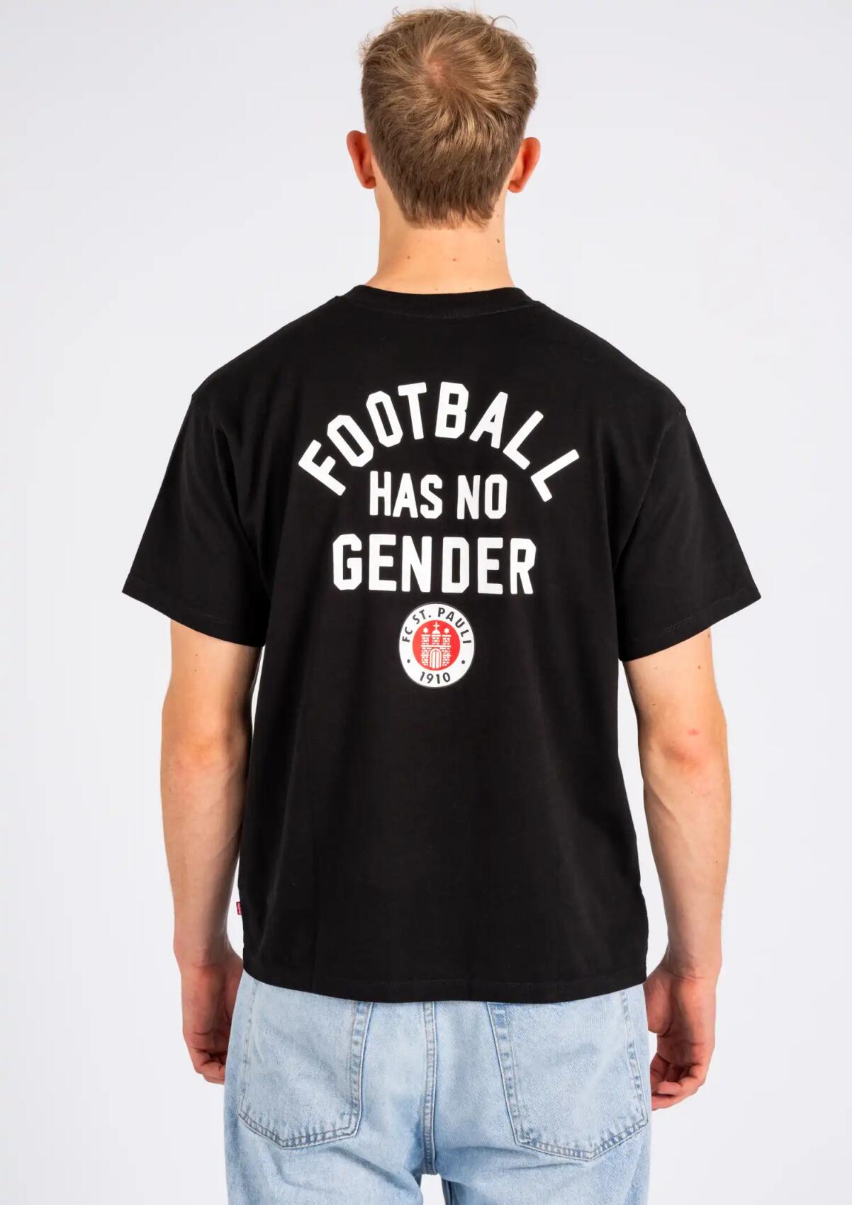 The Levi's x FC St. Pauli T-Shirt "Football Has No Gender" delivers a bold statement: Football is for everyone. This black shirt, made of soft cotton, features a minimal front design with "St. Pauli" branding and a bold statement paired with the FCSP logo on the back. Part of the exclusive Levi's collaboration – for fanswho stand for equality.