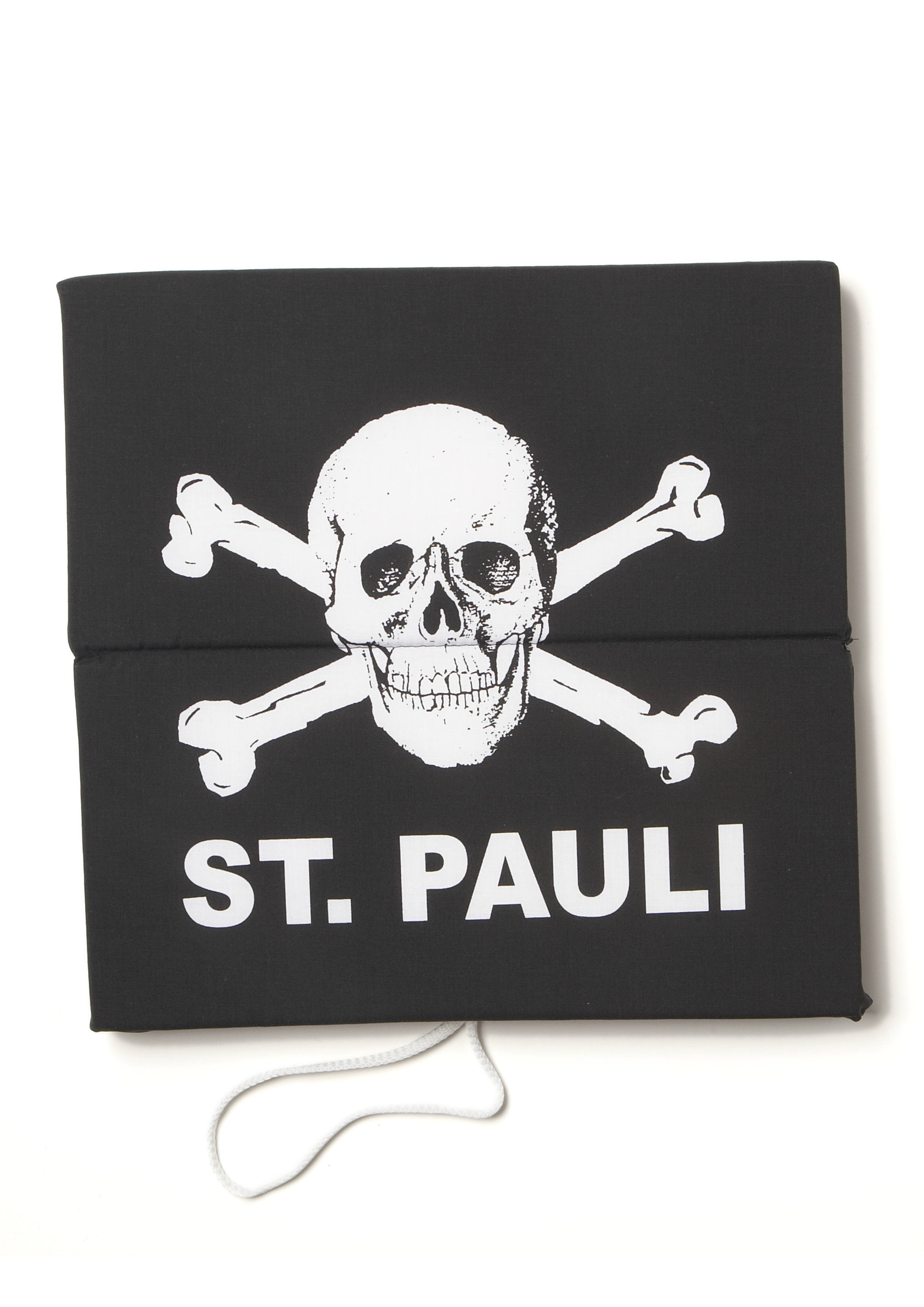 Softly padded, foldable seat cushion in black with printed ST. PAULI skull logo.