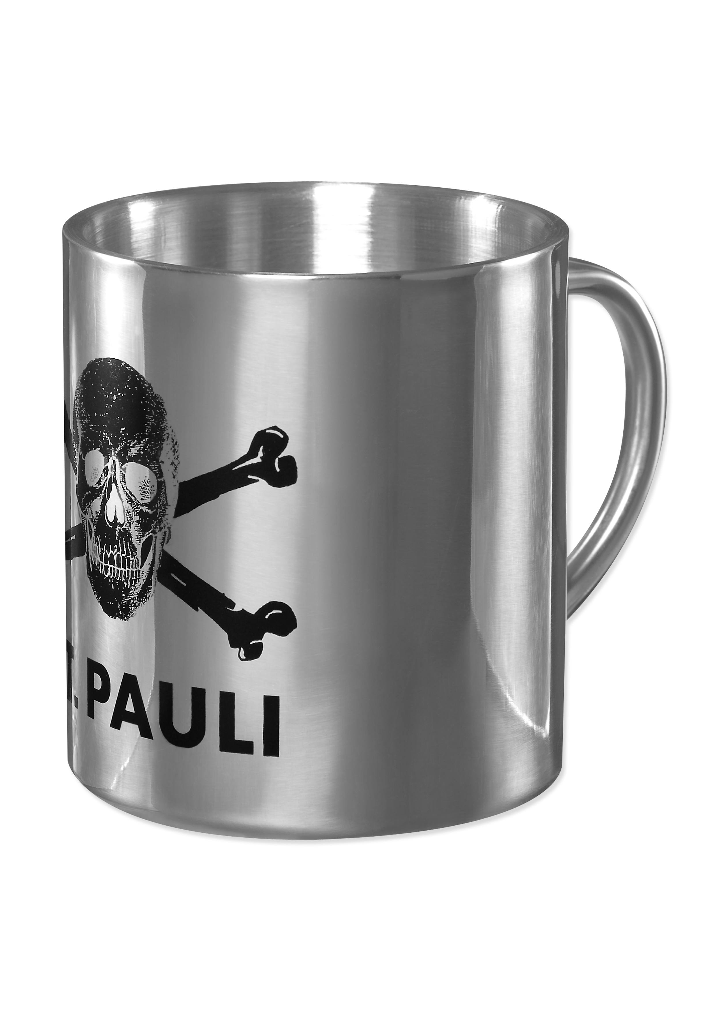The stainless steel coffee mug with the Skull and Crossbones design by FC St. Pauli is perfect for fans on the go. Durable, lightweight, and sustainable – great for daily use, camping, or the office. Featuring the iconic Skull and Crossbones logo and "ST. PAULI" lettering, this mug is a bold statement of your passion. The high-quality material keeps your drinks hot or cold for extended periods.