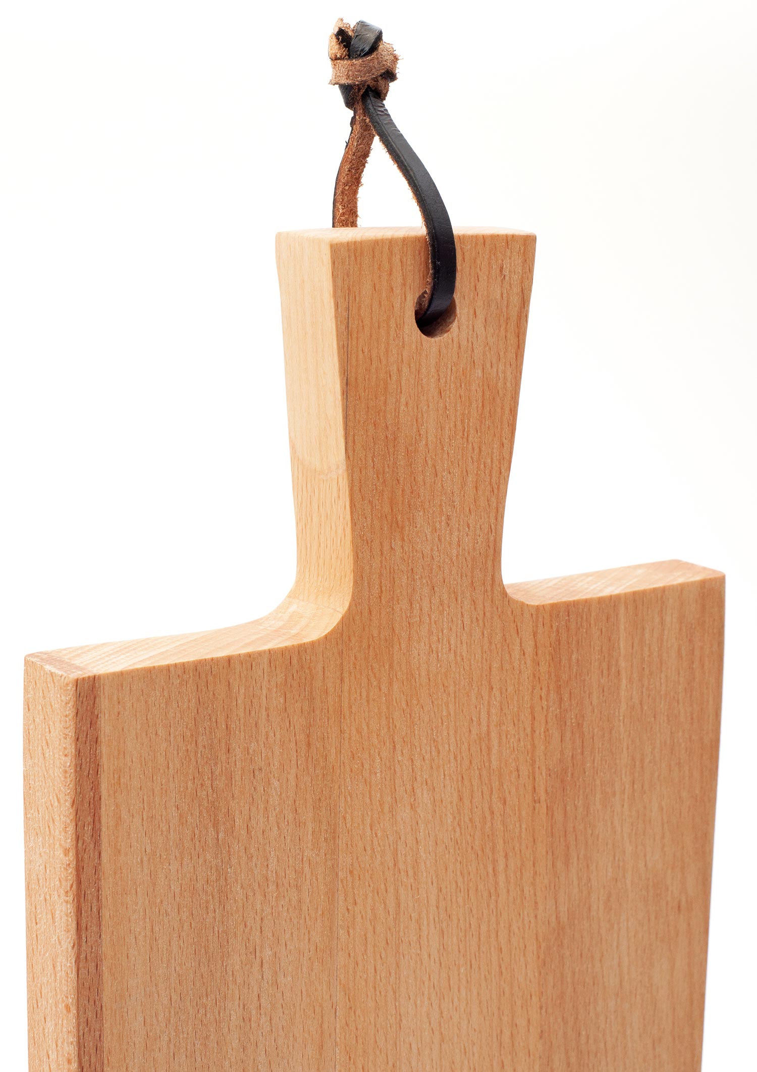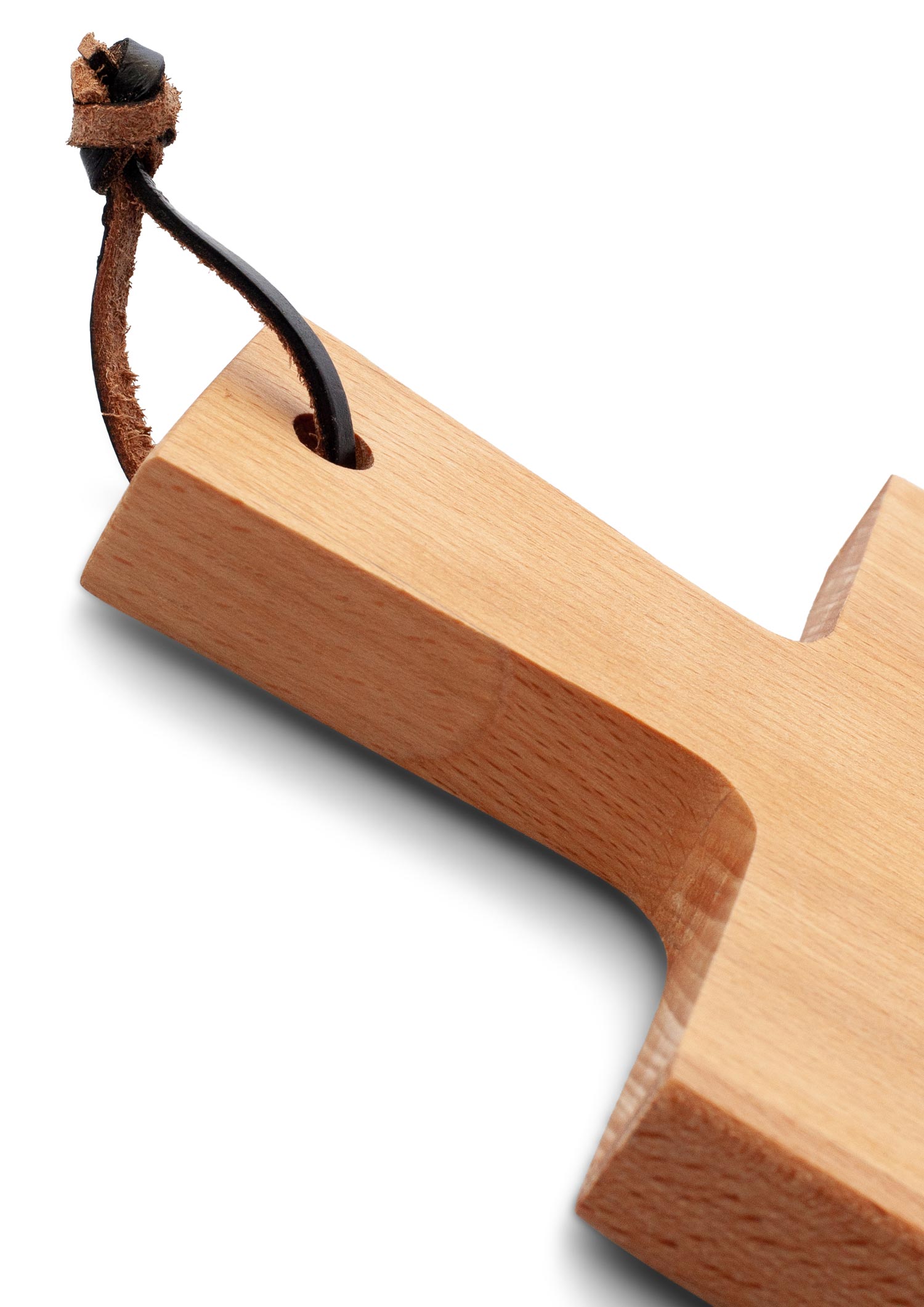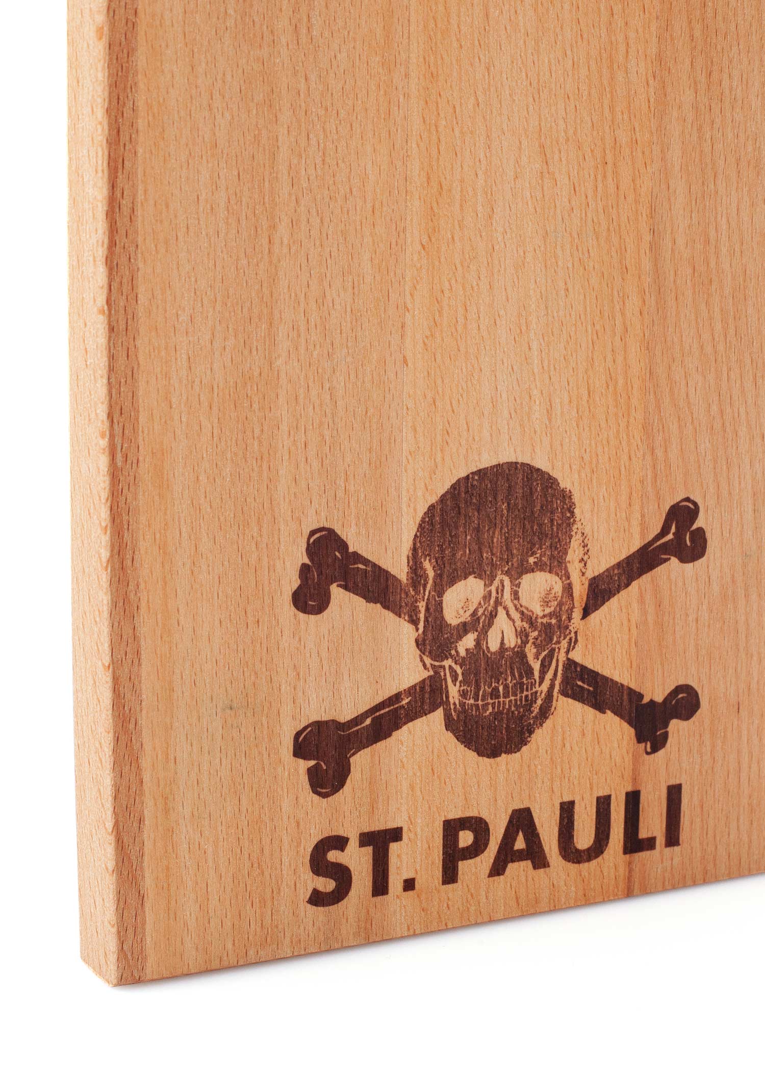 Quick snacks taste twice as good on our snack board with handle made of high-quality, oiled beech wood. You can easily wipe the smooth, grained wood surface with skull logo and then hang the board on the ribbon to save space on the wall. The wood used comes from responsibly managed German forests