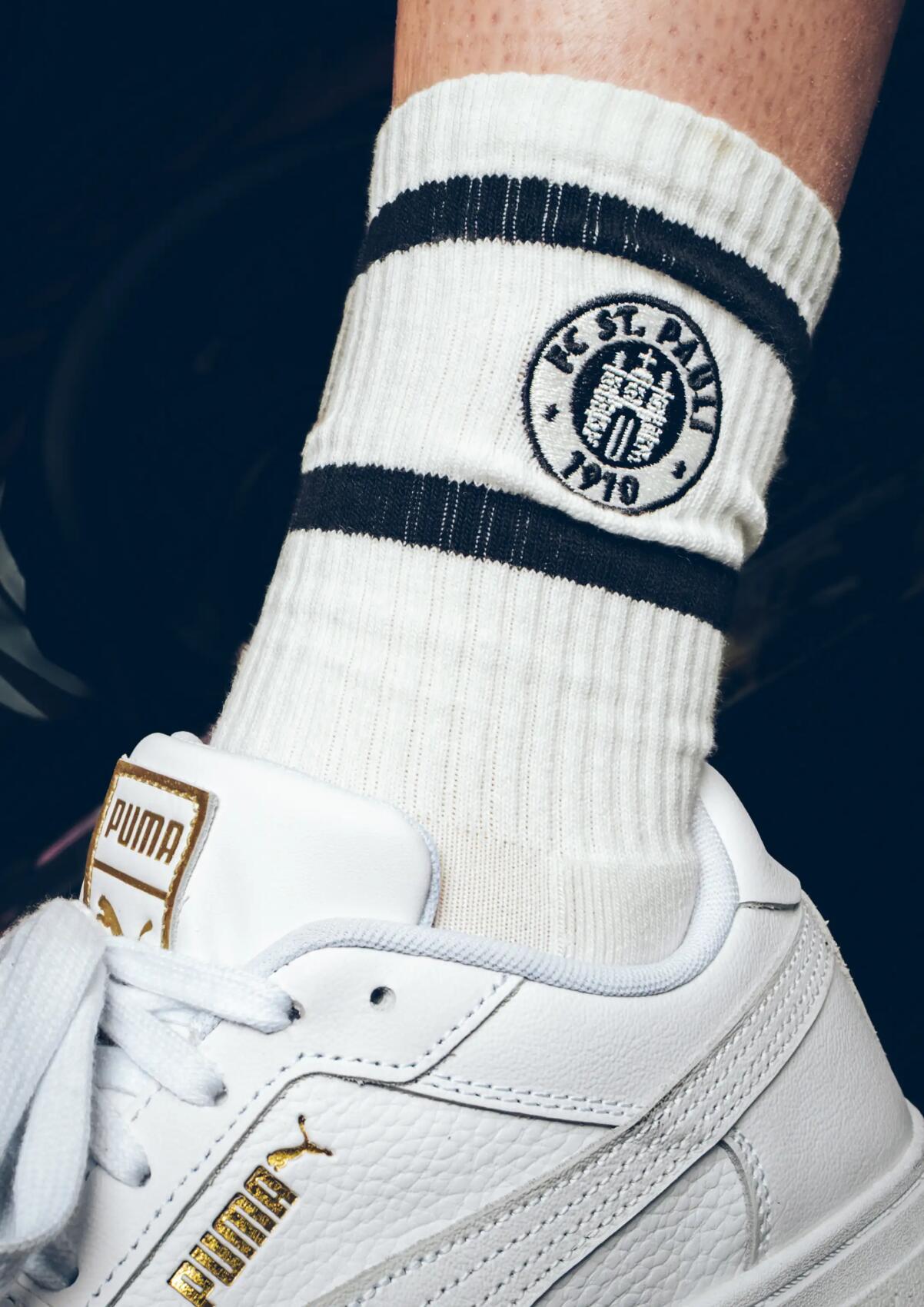 Stand proud from the ground up: The FC St. Pauli “Rainbow Summer” socks deliver classic tennis style with a bold twist – four retro rainbow stripes and an embroidered skull just below the cuff. Clean, crisp, and ready for match day or daily life. For Kiezkicker who wear theirstance with every step.