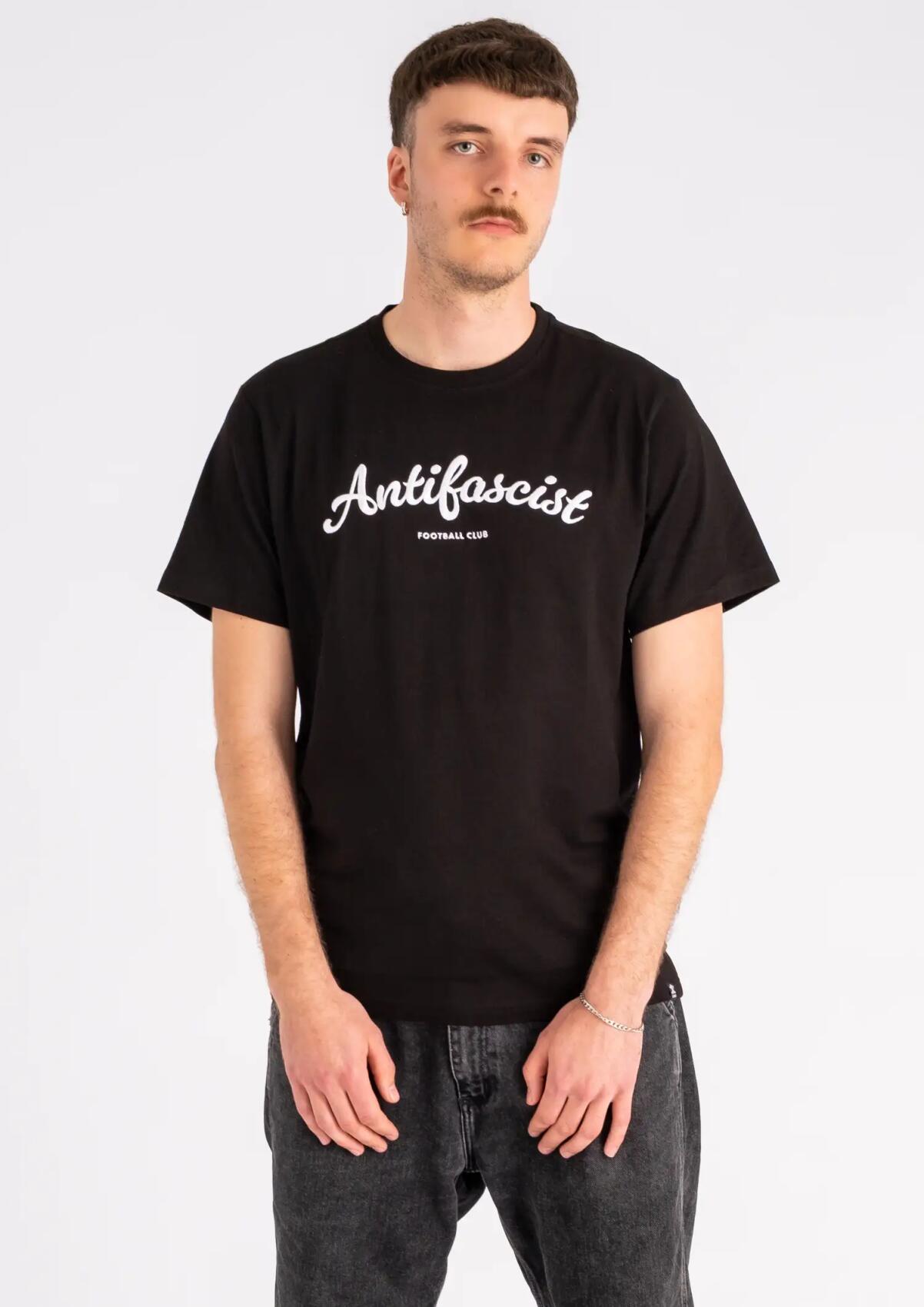A bold message front and center: The black T-shirt with white “Antifascist – Football Club” stitch stands firm against fascism. Made from 100% organic cotton, it offers a clean look with a conscience. Whether you're out in the streets, at a match, or in everyday life – this tee keeps it sharp and uncompromising. St. Pauli style, plain and simple.