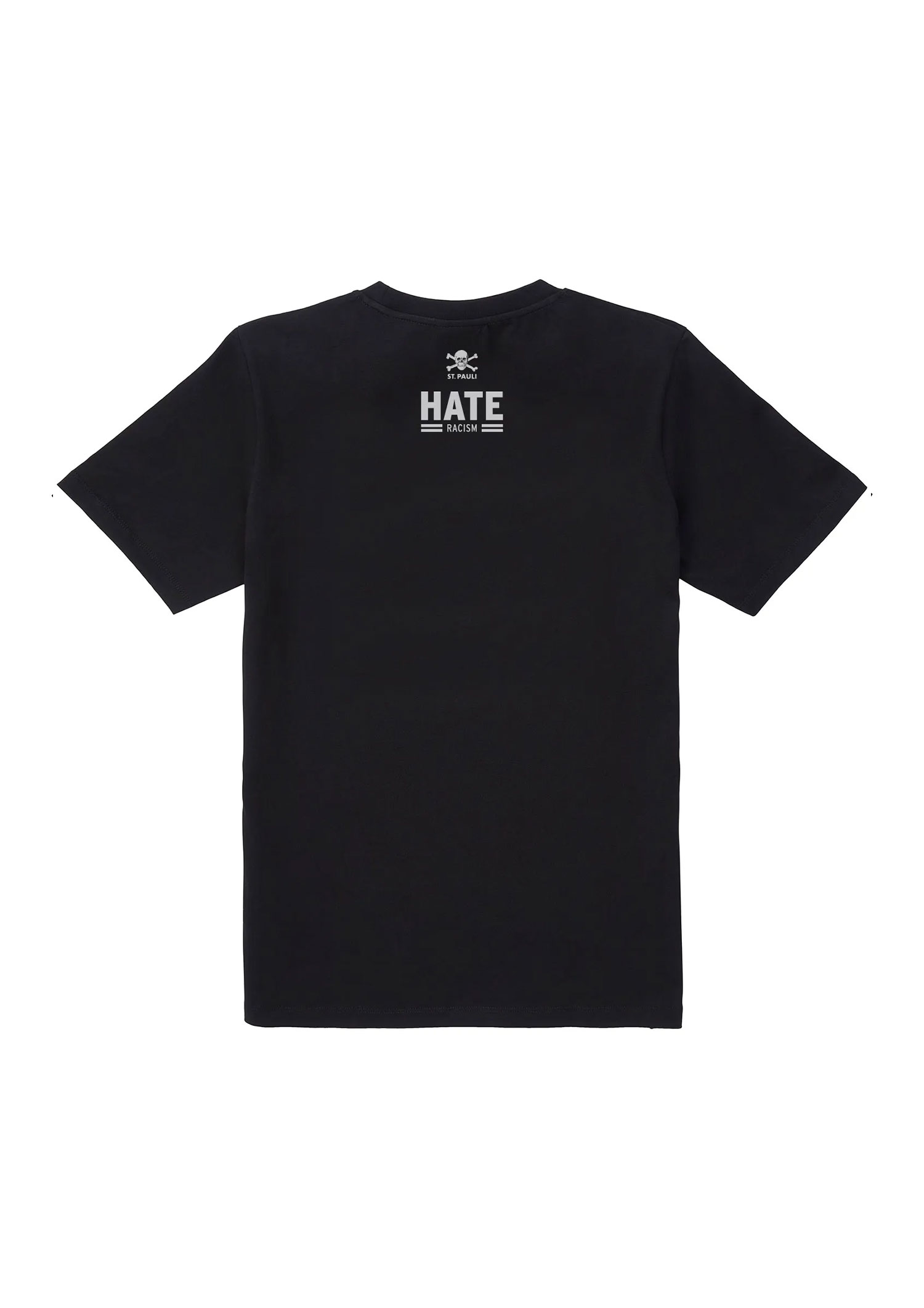 Stand up for what matters with the "Love St. Pauli / Hate Racism" T-Shirt by FC St. Pauli. Featuring "LOVE SANKT PAULI" on the front and the powerful "HATE RACISM" message on the back, this shirt makes a bold statement. Made from 100% premium organic cotton, it offers a relaxed fit perfect for match days or everyday wearin the streets of Hamburg.
