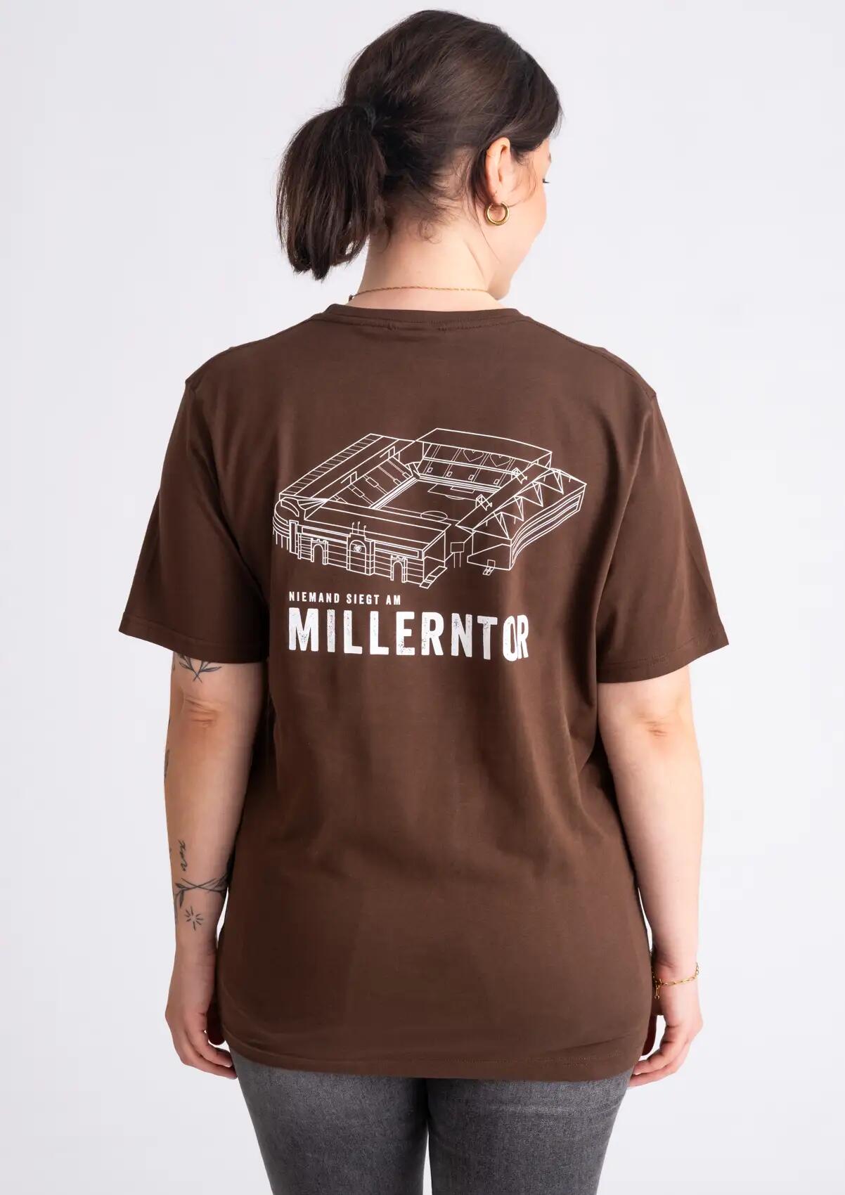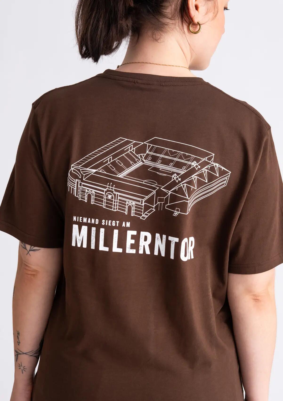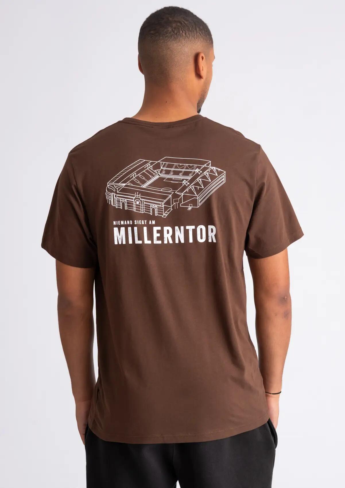Homage to our legendary football temple - the brown ‘Millerntor’ T-shirt comes clean with a small FC St. Pauli crest on the front and the fine graphic of the Millerntor stadium on the back with the message: ‘Nobody wins at the Millerntor’. 100% FairTrade organic cotton for real Kiezkickers, who have their home between the bunker and the Kiez in the heart of Hamburg - in the beautiful Millerntor stadium.