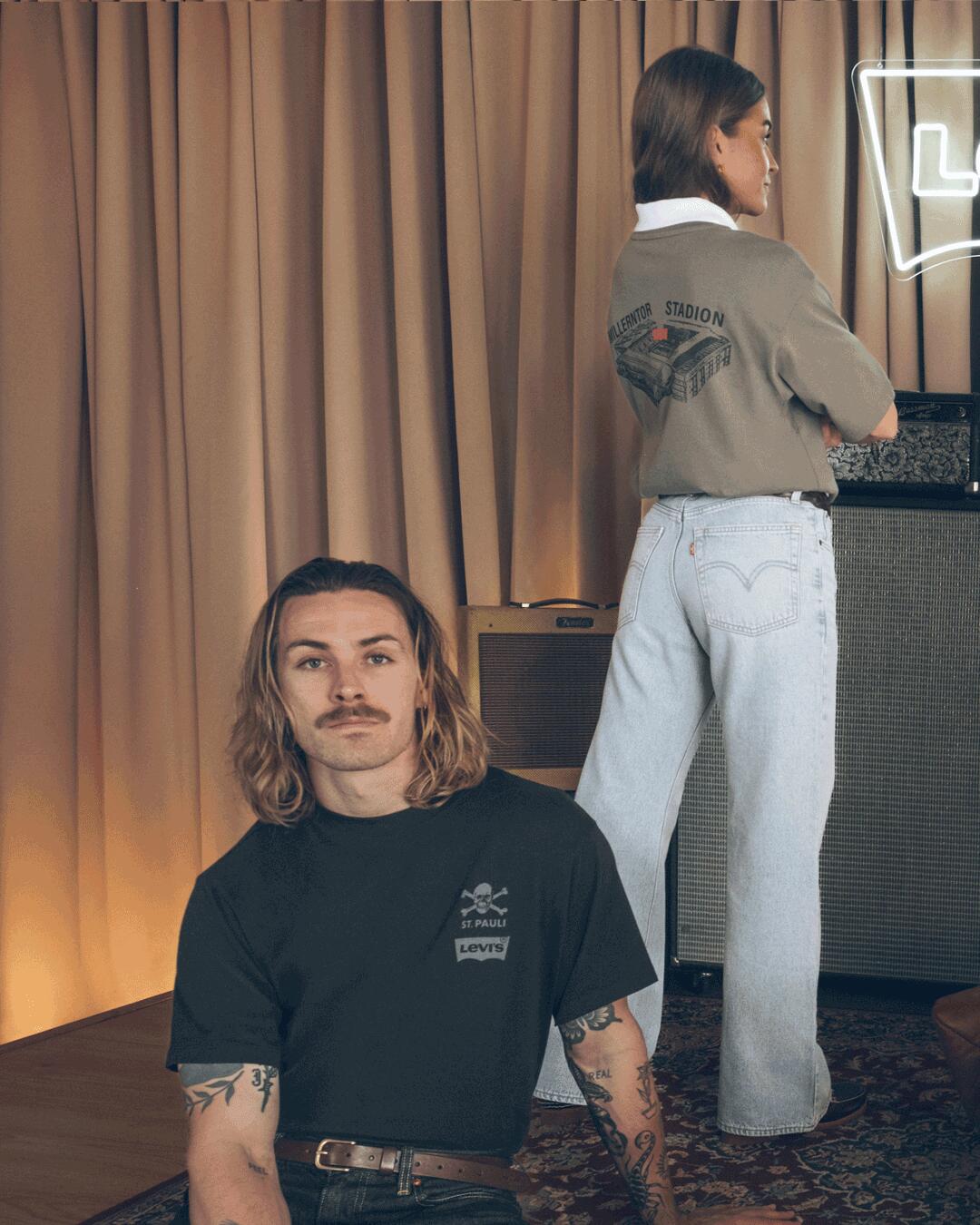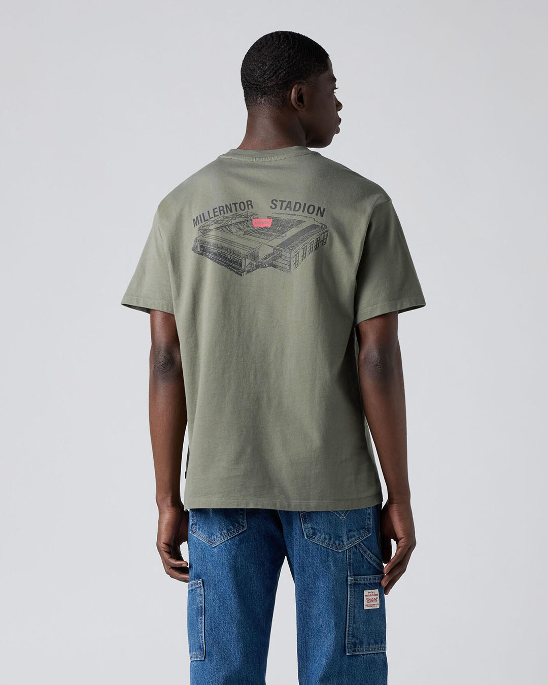 Kiezkultur zum Anziehen: Das hellbraune FC St. Pauli Shirt kommt vorn mit klassischem Totenkopf in Schwarz, hinten feiern zwei Comic-Figuren unter dem „Allez Allez“-Slogan. Klarer Rückendruck, starker Look – und alles aus 100 % Biobaumwolle. Für alle, die nicht nur singen, sondern auch Haltung tragen. Boys in Brown – since 1910.