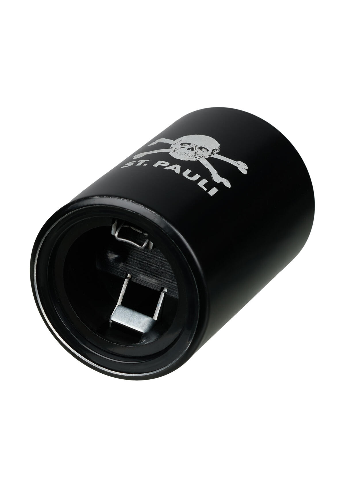 Der FC St. Pauli Flaschenöffner „Push“ mit Totenkopf verbindet funktionales Design mit der klaren Haltung des Kiezclubs. Der kompakte Öffner im schwarzen Zylinderformat trägt den ikonischen St. Pauli Totenkopf und den Schriftzug des Vereins – reduziert, markant und unverwechselbar.