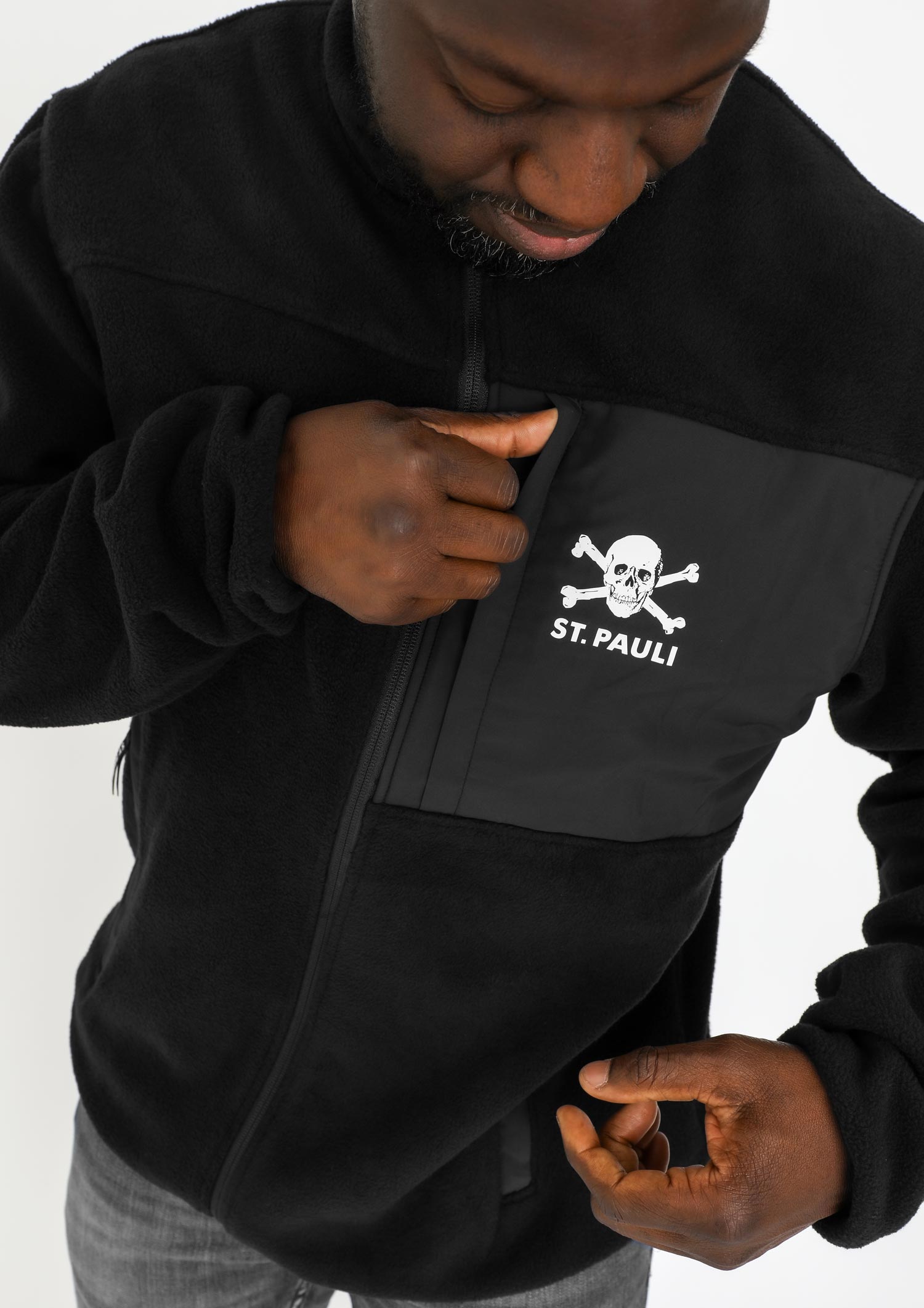 Unsere dicke, schwarze Fleecejacke mit weißem Totenkopflogo auf der Brusttasche hält dich warm, wenn der Wind auffrischt. Der softe Fleece-Stoff liegt dicht an deinem Hals und schützt dich am Kinn mit einem zusätzlichen Stoffabschluss. Elastische Abschlüsse an Ärmeln, Bund und Kragen sowie verschließbare Seitentaschen erhöhen den Komfort der Unisex Jacke aus 100% recyceltem Polyester.