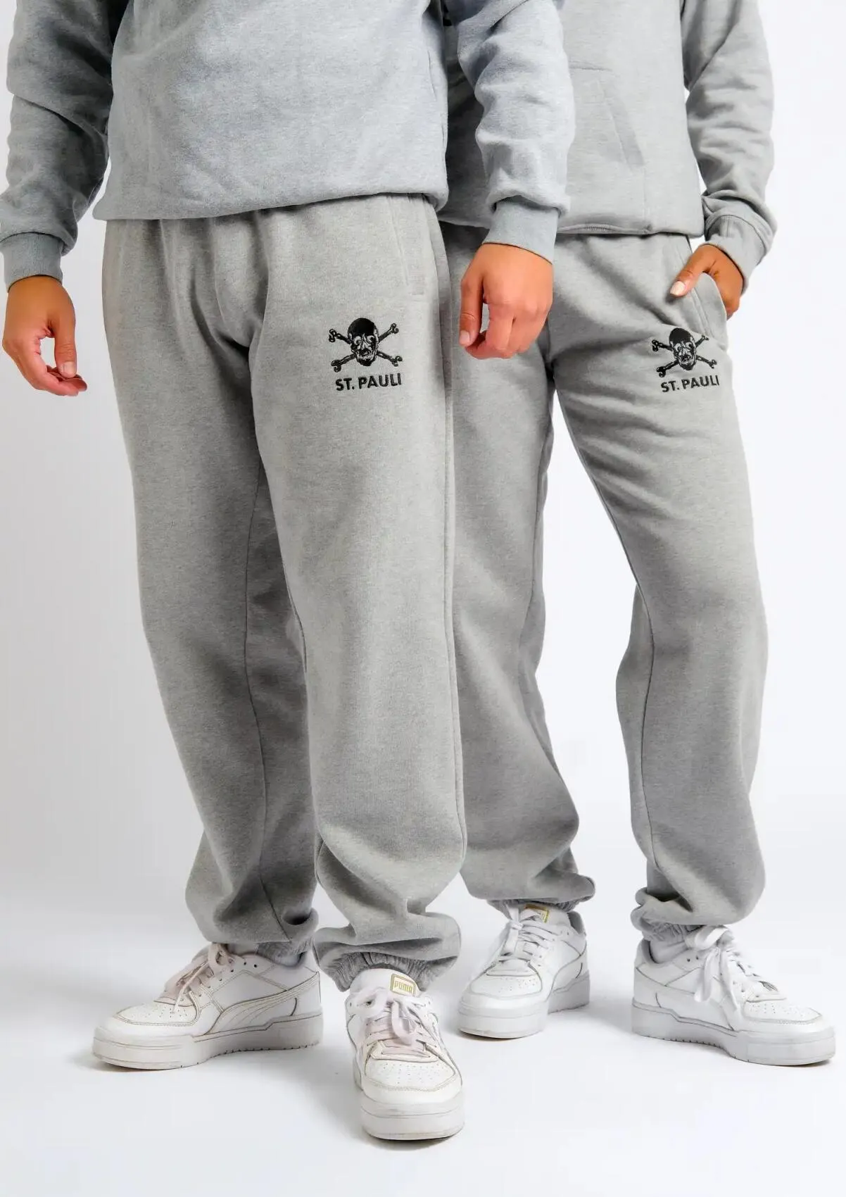 Klassische, schwarze Jogginghose mit praktischen Reißverschlusstaschen und kleinem, Totenkopflogo in Weiß auf dem Oberschenkel. Durch den festen Terry Fleece aus 100% Bio-Baumwolle liegt die Jogginghose angenehm auf der Haut, Bündchen am Beinabschluss verbessern Sitz und Komfort.