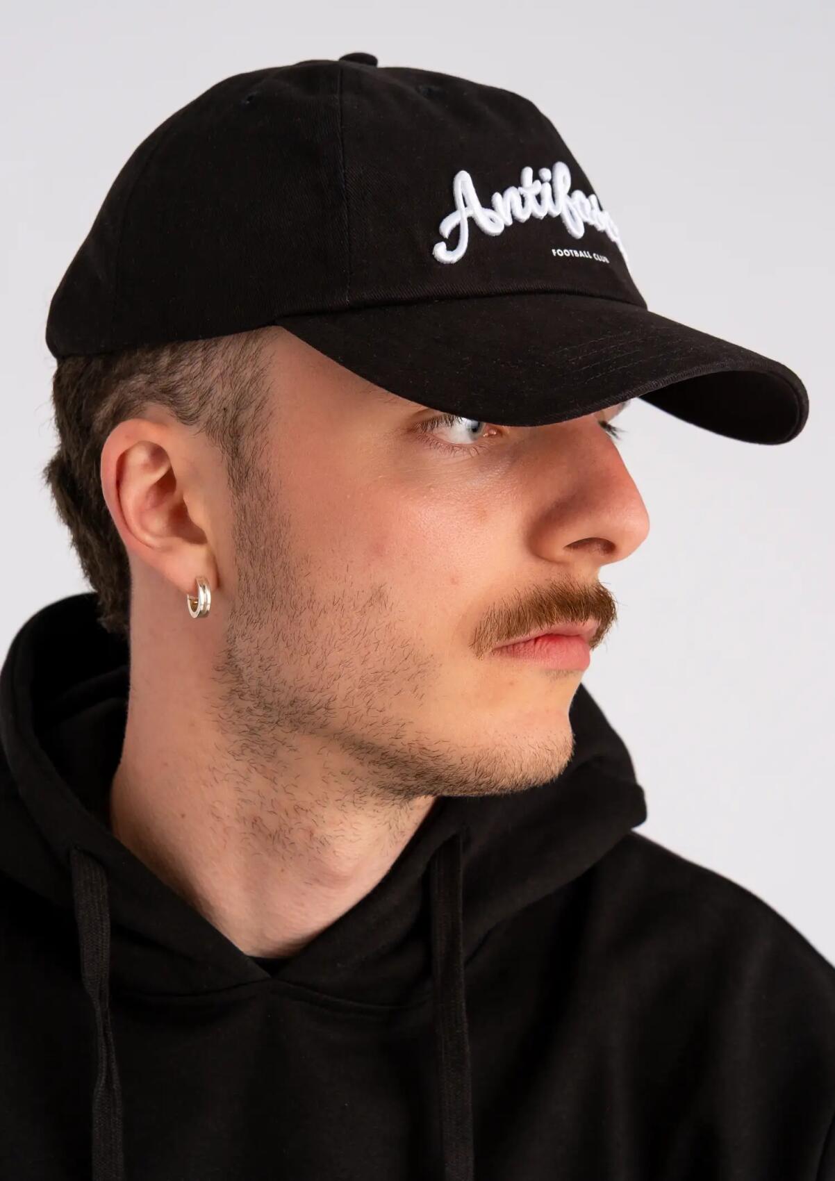 Ansage auf den ersten Blick: Die schwarze Kappe mit weißer "Antifascist – Football Club" Stickerei auf der Front bringt Haltung auf den Punkt. Hinten rundet das Totenkopf-Patch den Look stilecht ab. Aus 100 % Baumwolle gefertigt und größenverstellbar – perfekt für sonnige Tage im Viertel oder auf dem Weg zum Stadion. Für alle, die Flagge zeigen – direkt, klar und kompromisslos.