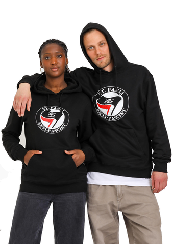 Zeig Haltung mit dem FC St. Pauli Kapuzenpullover Anti-Fascist. Das auffällige Design mit Totenkopf und „Anti-Fascist“-Schriftzug macht klar, wofür du stehst. Der bequeme Hoodie hält dich warm und ist perfekt für Stadion, Straße oder Freizeit – ein starkes Statement für Kiezkicker und alle, die Flagge zeigen.