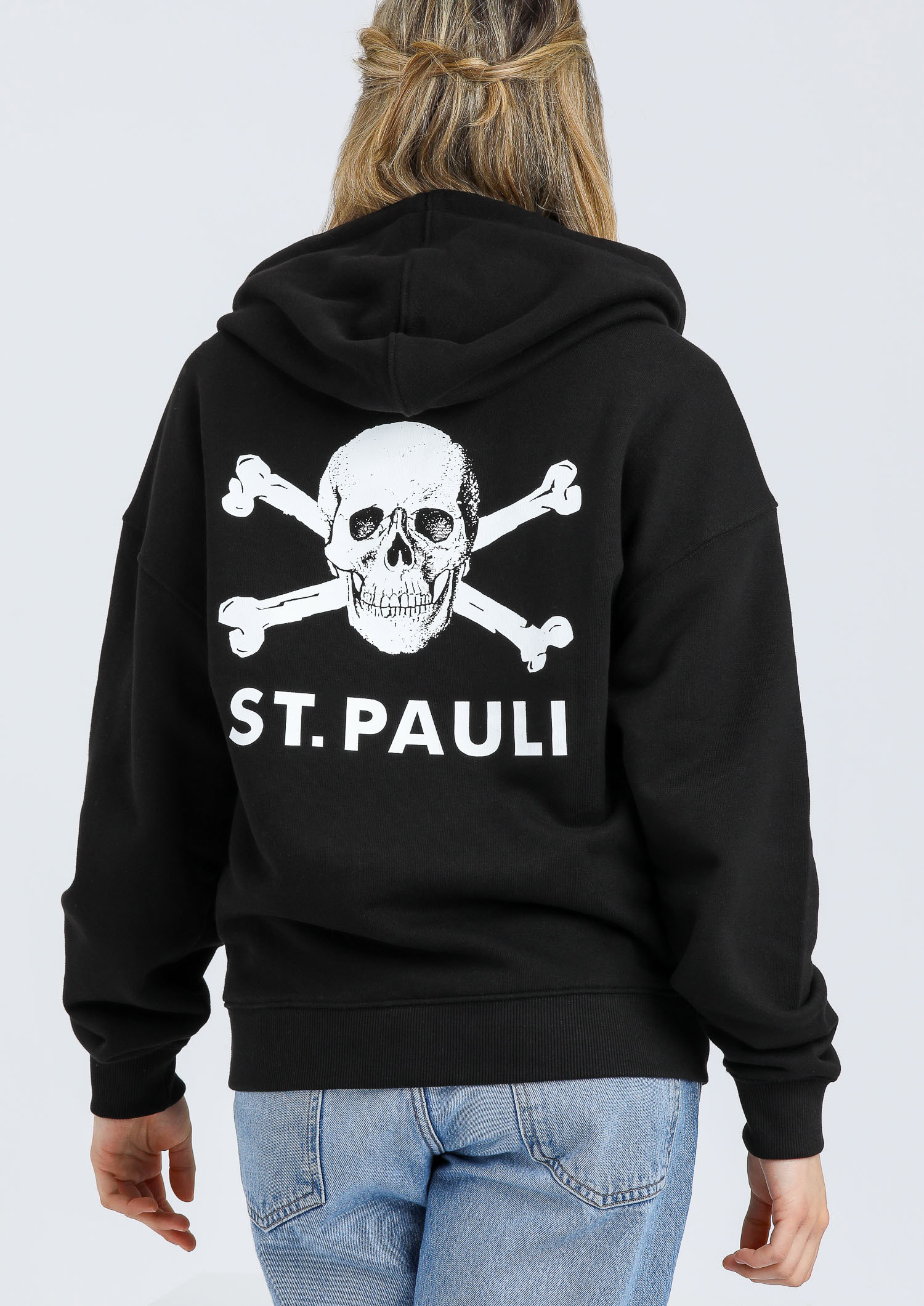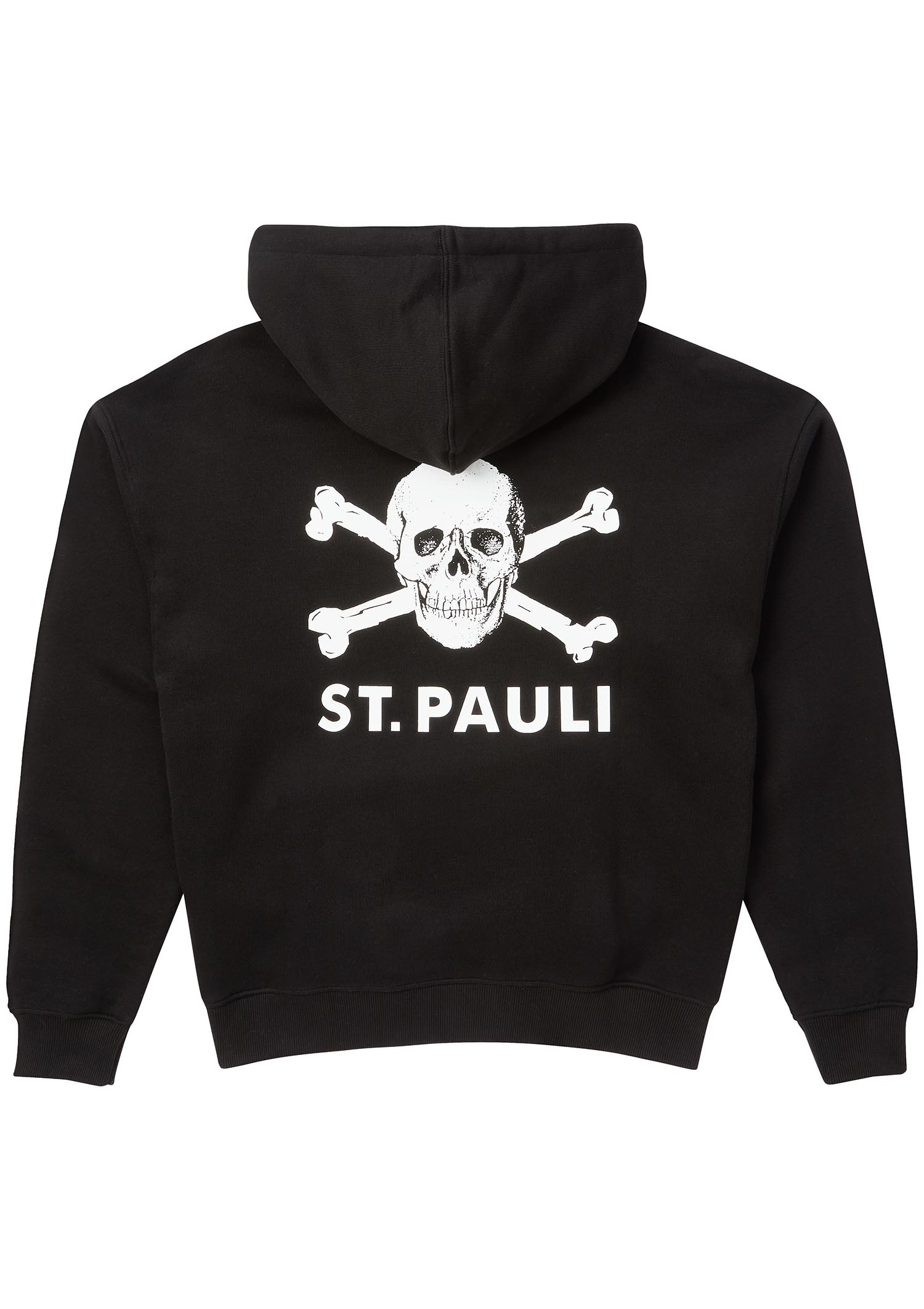 Der Kapuzenpullover "Die Straße trägt" – schwarz vereint Style und Statement. Auf der Brust prangt der dezente Schriftzug "Die Straße trägt St. Pauli", während der Rücken mit dem ikonischen Totenkopf und "ST. PAULI" Schriftzug überzeugt. Aus hochwertiger Baumwollmischung gefertigt, bietet er besten Tragekomfort und eine perfekte Passform – ein absolutes Must-have für Fans des unverwechselbaren Street-Styles.