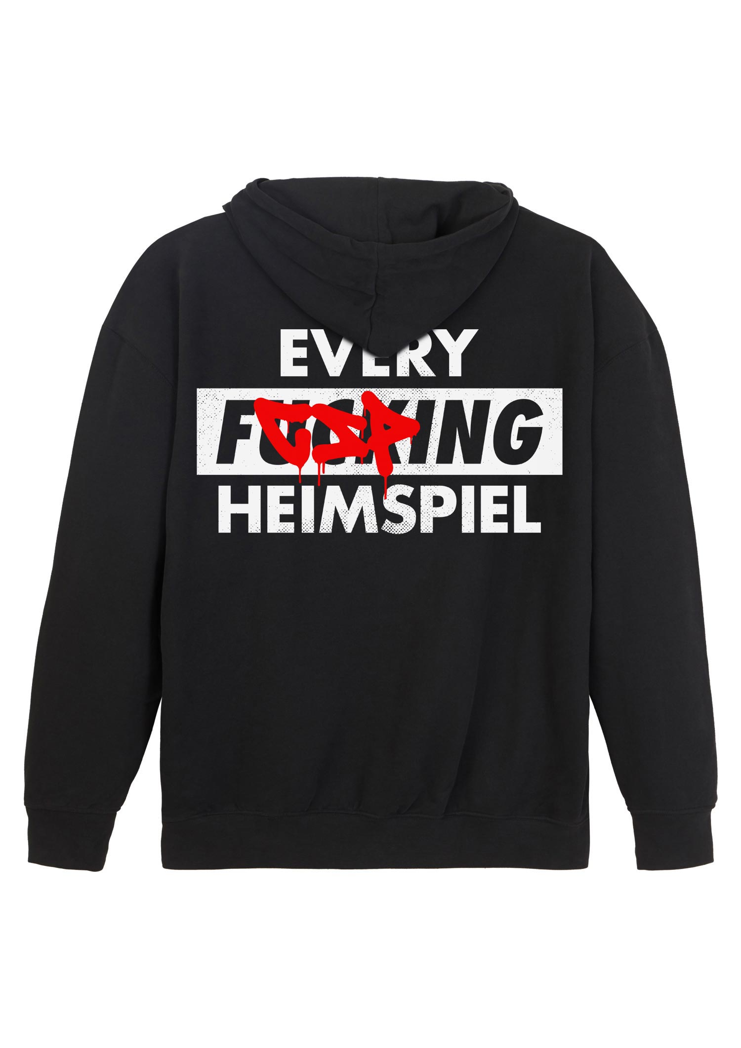 Zeig deine Leidenschaft für den FC St. Pauli mit dem Kapuzenpullover "FCSP Heimspiel". Der schwarze Hoodie überzeugt mit dem klassischen Totenkopf-Logo auf der Brust und der markanten Rückseite: "EVERY F***ING HEIMSPIEL" – ein klares Statement für jeden Heimspielbesuch. Der Hoodie besteht aus hochwertigem, weichem Material und bietet eine lässige Passform sowie eine gemütliche Kapuze. Perfekt für Stadionbesuche oder den Alltag – dieses Teil darf in keiner Fan-Garderobe fehlen!