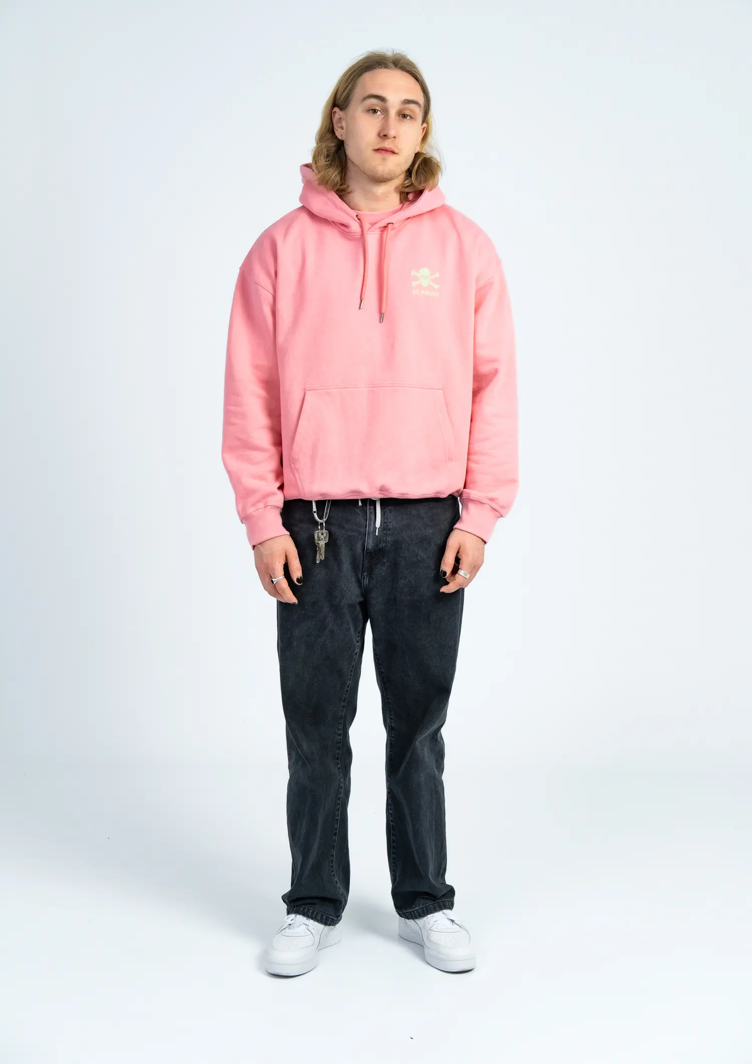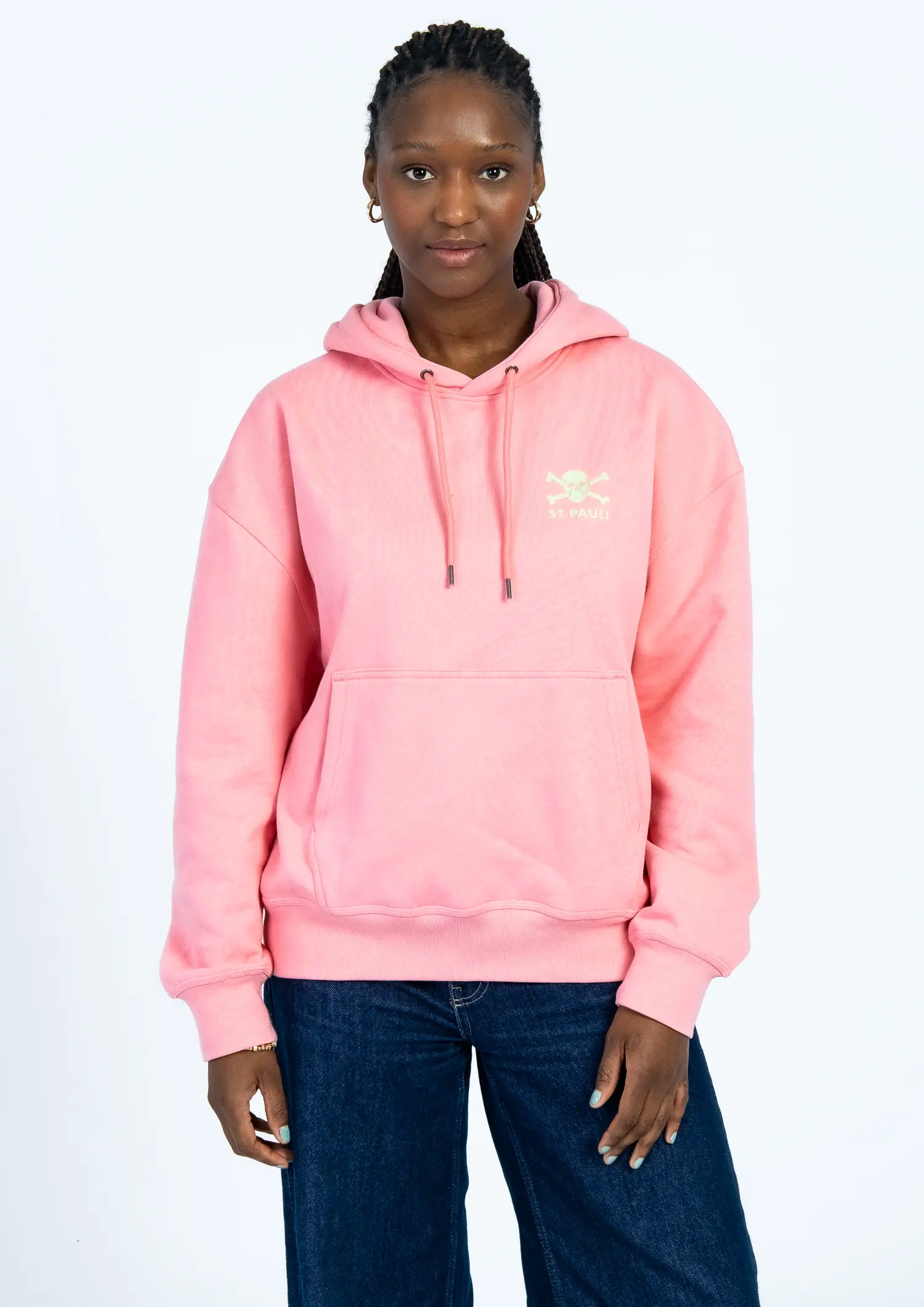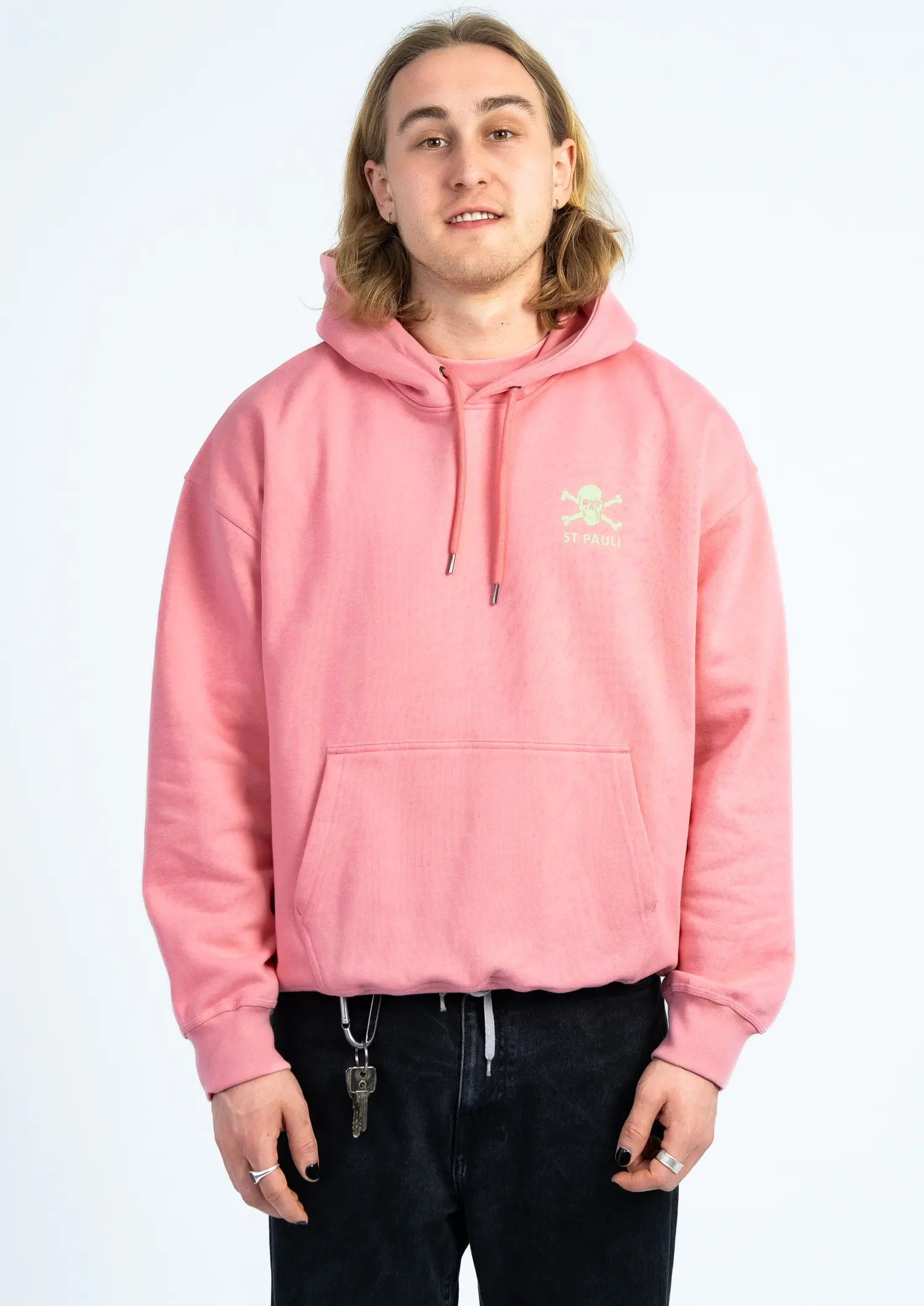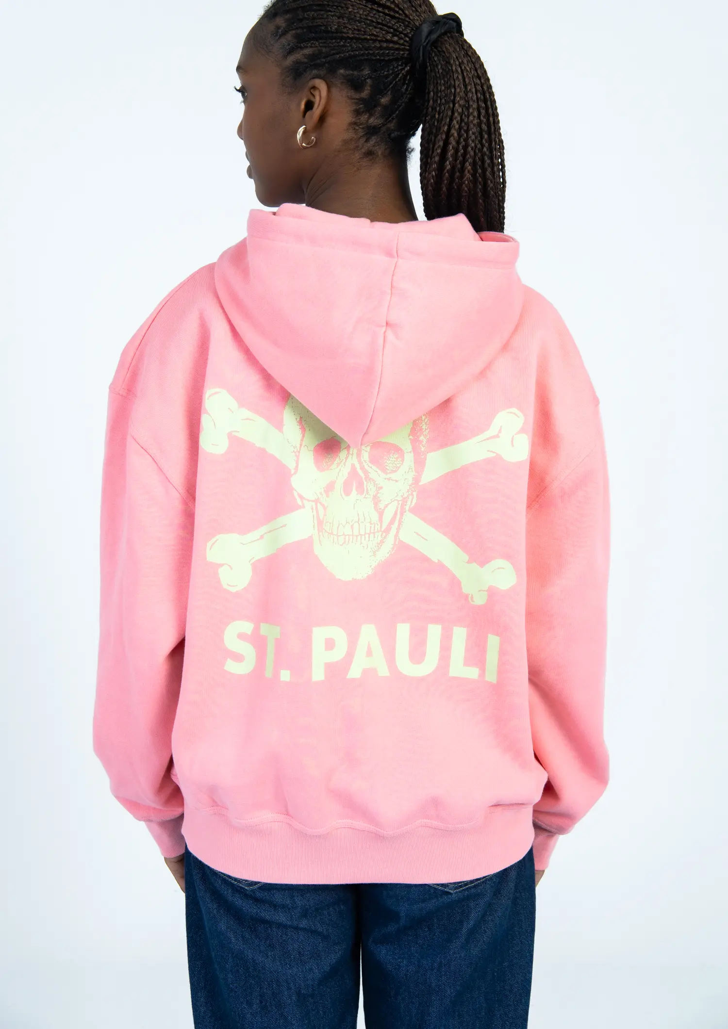 Für alle Kiezkicker, die auch im Sommer Statement setzen: Der FC St. Pauli Ice Cream Hoodie im lässigen Boxy Fit. 100 % Bio-Baumwolle, fresher Look in Pink und mit großem Totenkopf-Print auf dem Rücken. Vorne dezent, hinten klare Ansage – so läuft’s bei den Boys in Brown! Perfekt für kühle Abende nach’m Eis essen auf St.Pauli.