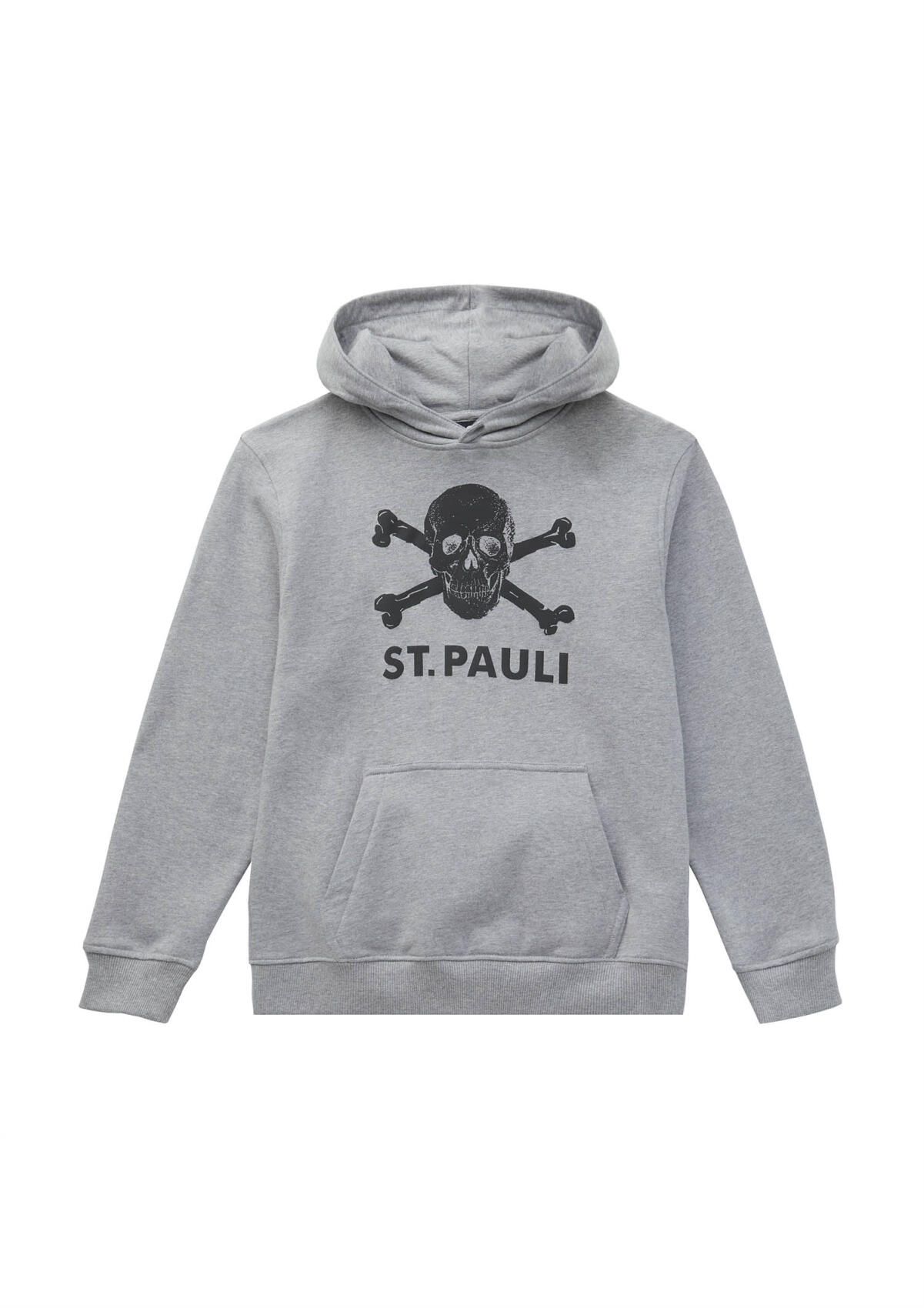Unser Klassiker: der Totenkopf-Hoodie in grau. Seit Jahrzehnten getragen auf der Tribüne, auf der Straße oder im Herzen des Viertels. Auf der Brust steht der große Totenkopf seit Jahrzehnten für unsere Werte ein. Nachhaltig und fair: produziert aus 100 % Bio-Baumwolle, Fair-Trade und GOTS zertifiziert.