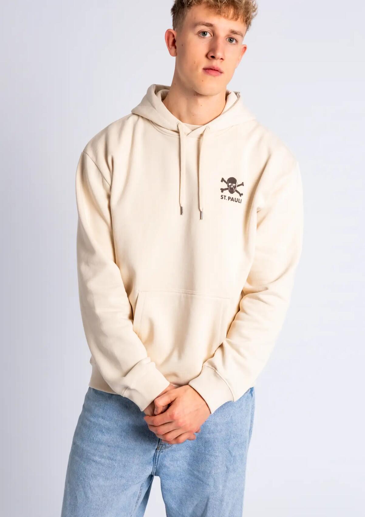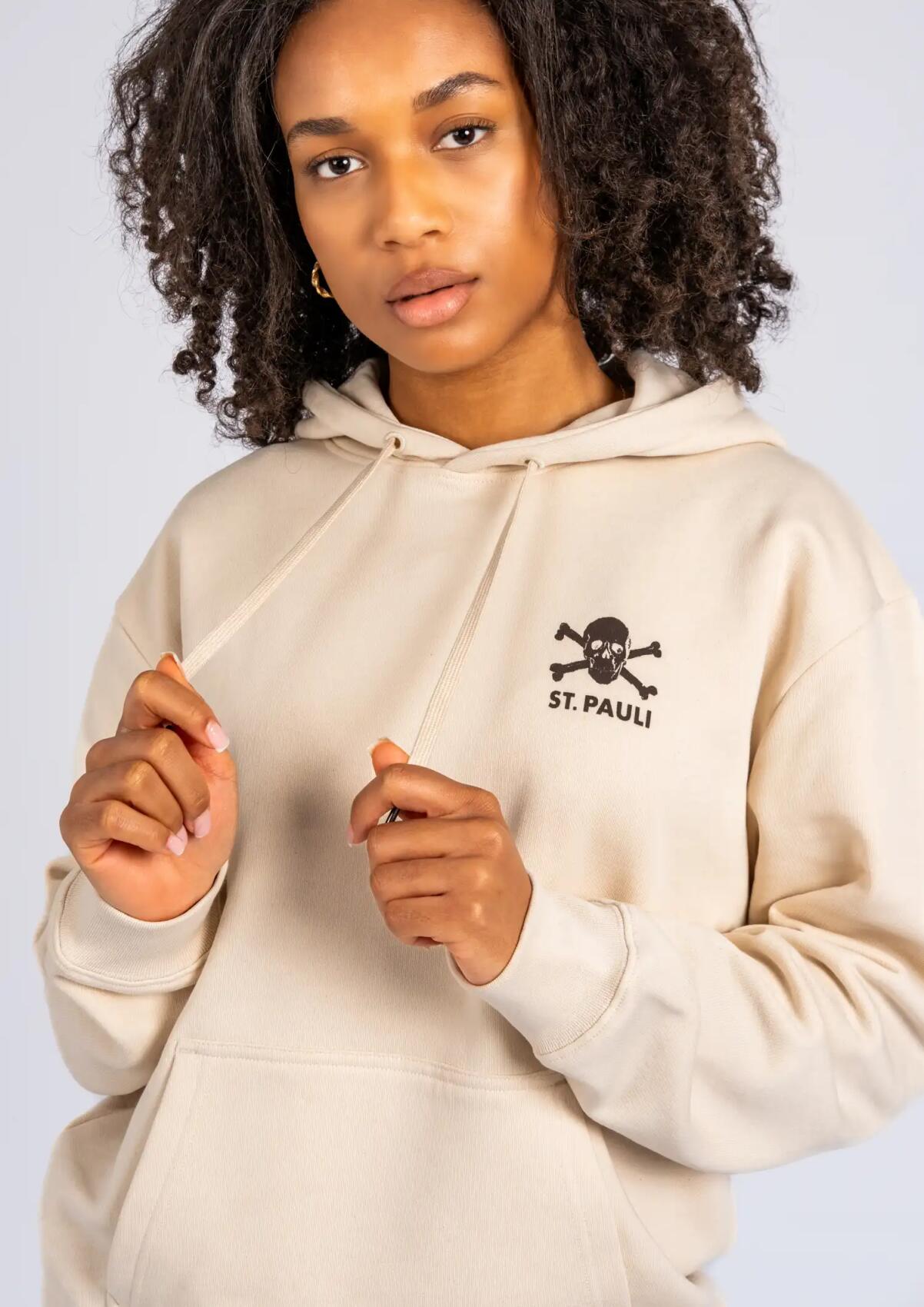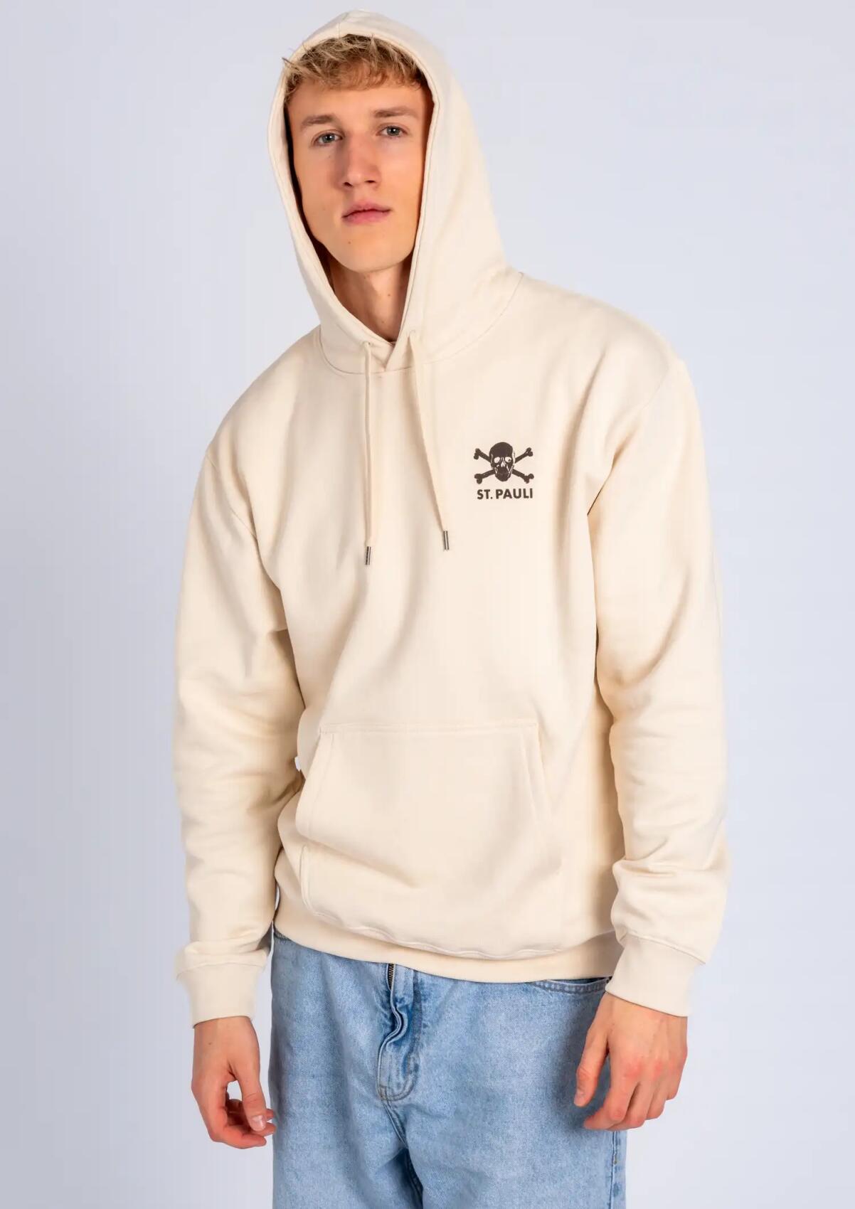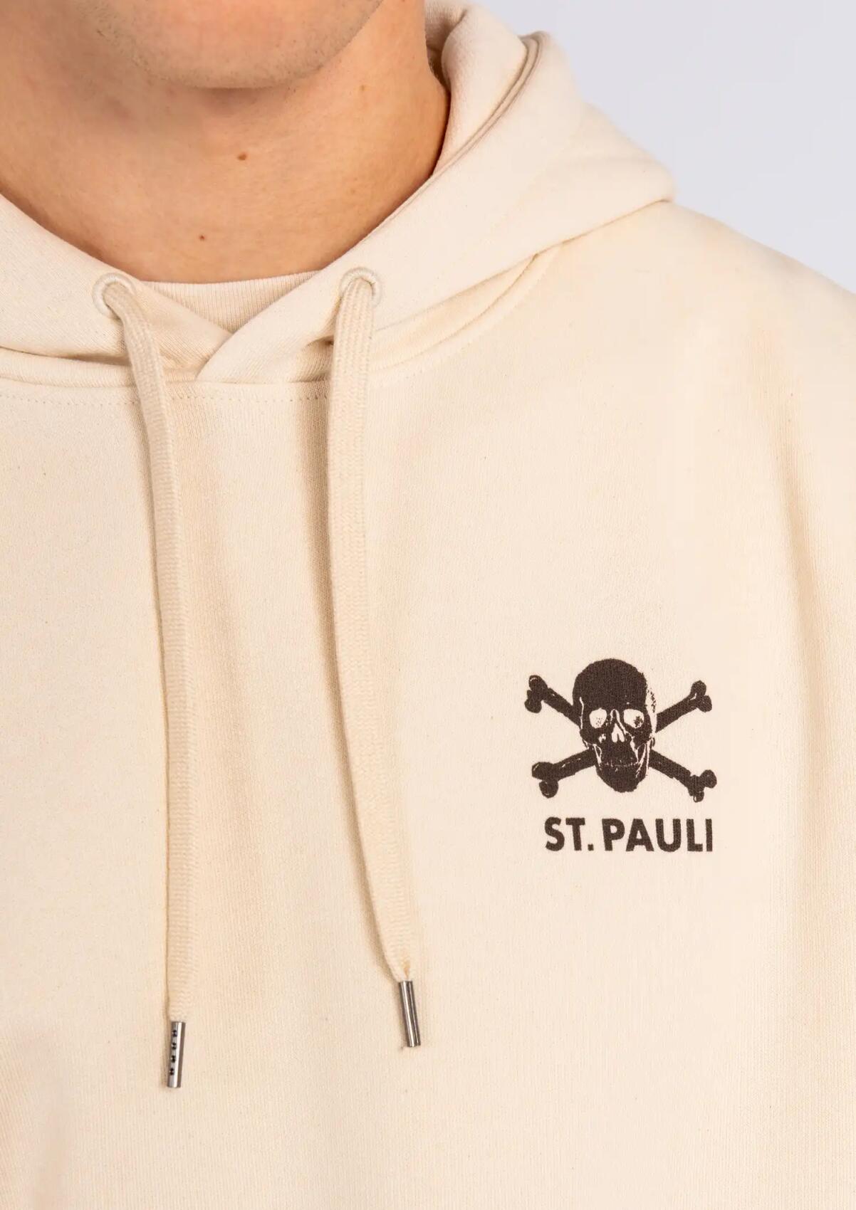 Zeig, wo du herkommst! Der FC St. Pauli Kapuzenpullover „Viertel“ bringt den Spirit des Stadtteils auf deinen Rücken. Der großflächige Backprint vereint alles, was den Stadtteil und den Verein ausmacht: das Millerntor-Stadion, die Reeperbahn, Hafenflair und natürlich die Totenkopf-Flagge. Mit kleinen Details wie „You'll never walk alone“ und „Hamburg ist braun-weiß“ ist dieser Hoodie eine Hommage an die Kiezkultur. Vorne dezent mit kleinem Totenkopf-Logo und lockerem Fit für maximalen Komfort.