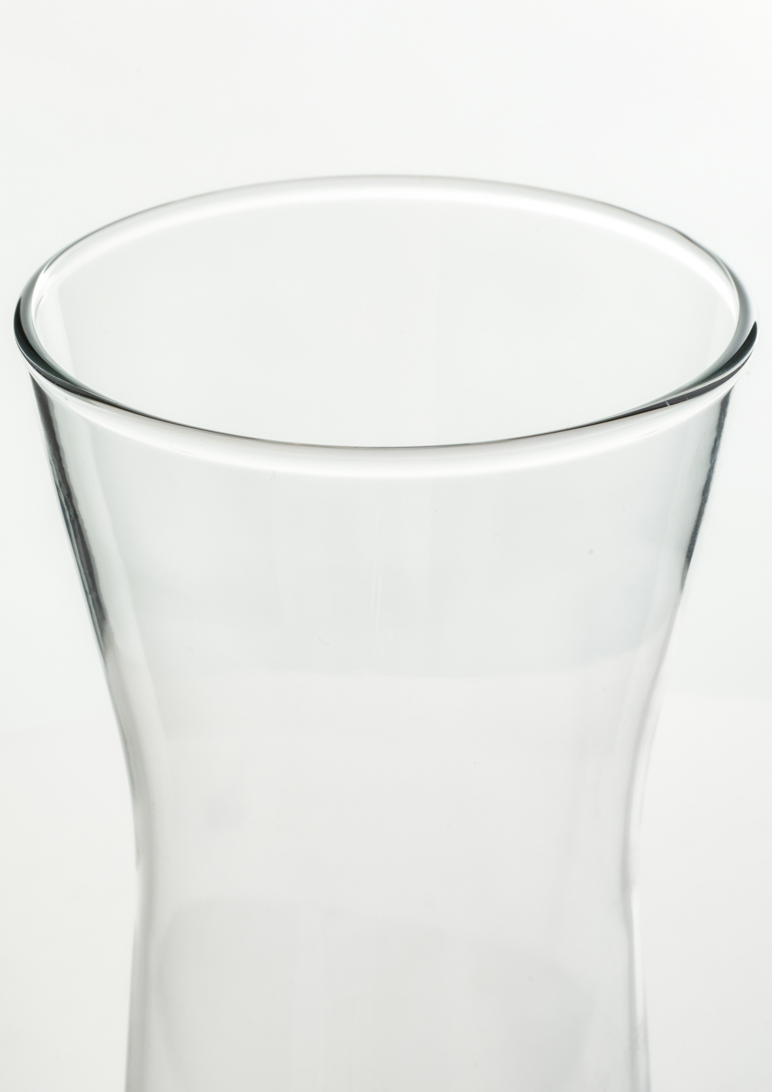 Schlanke Glaskaraffe für erfrischende 970 ml eurer Wahl, mit gedrucktem Totenkopflogo in hellgrau.