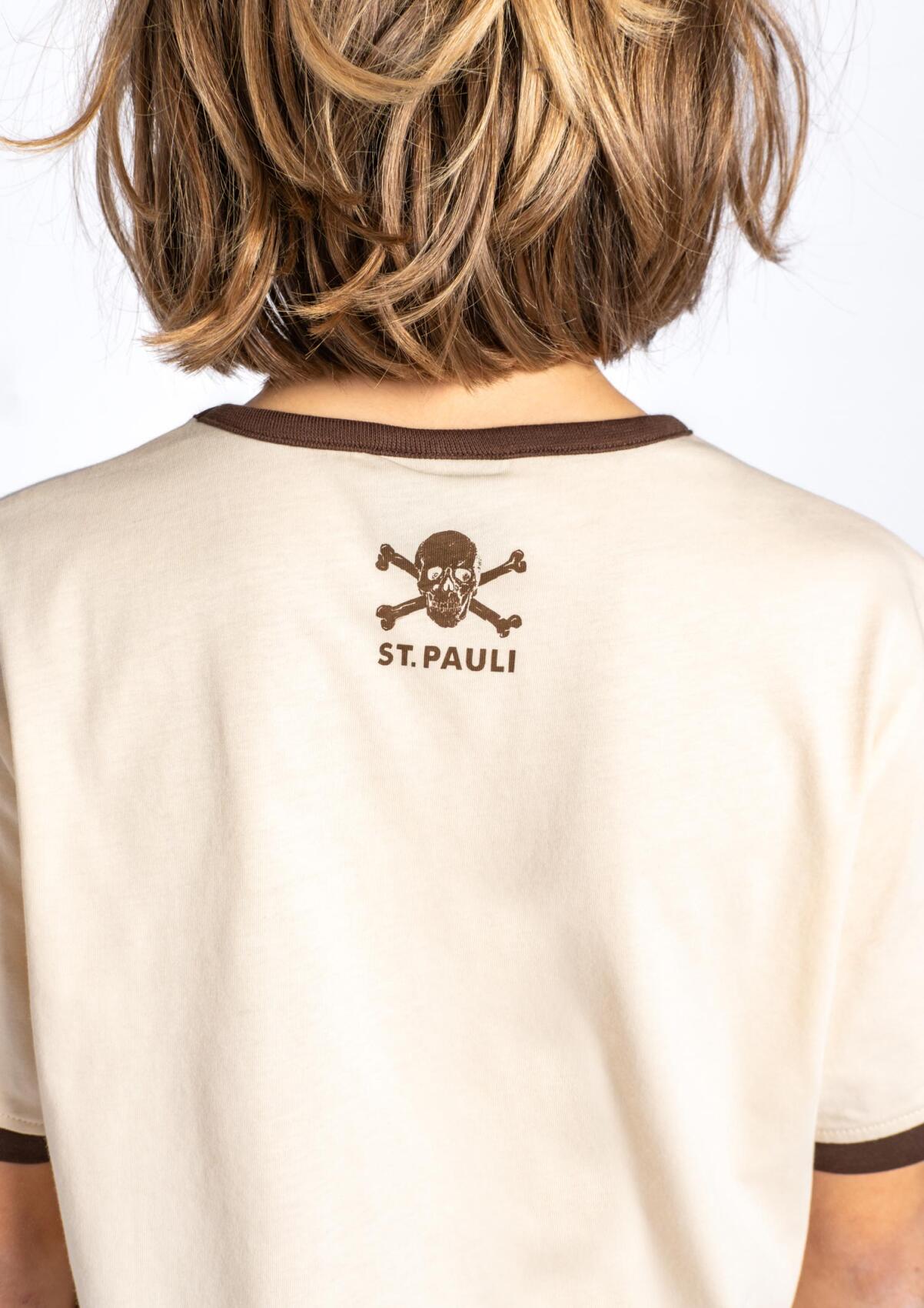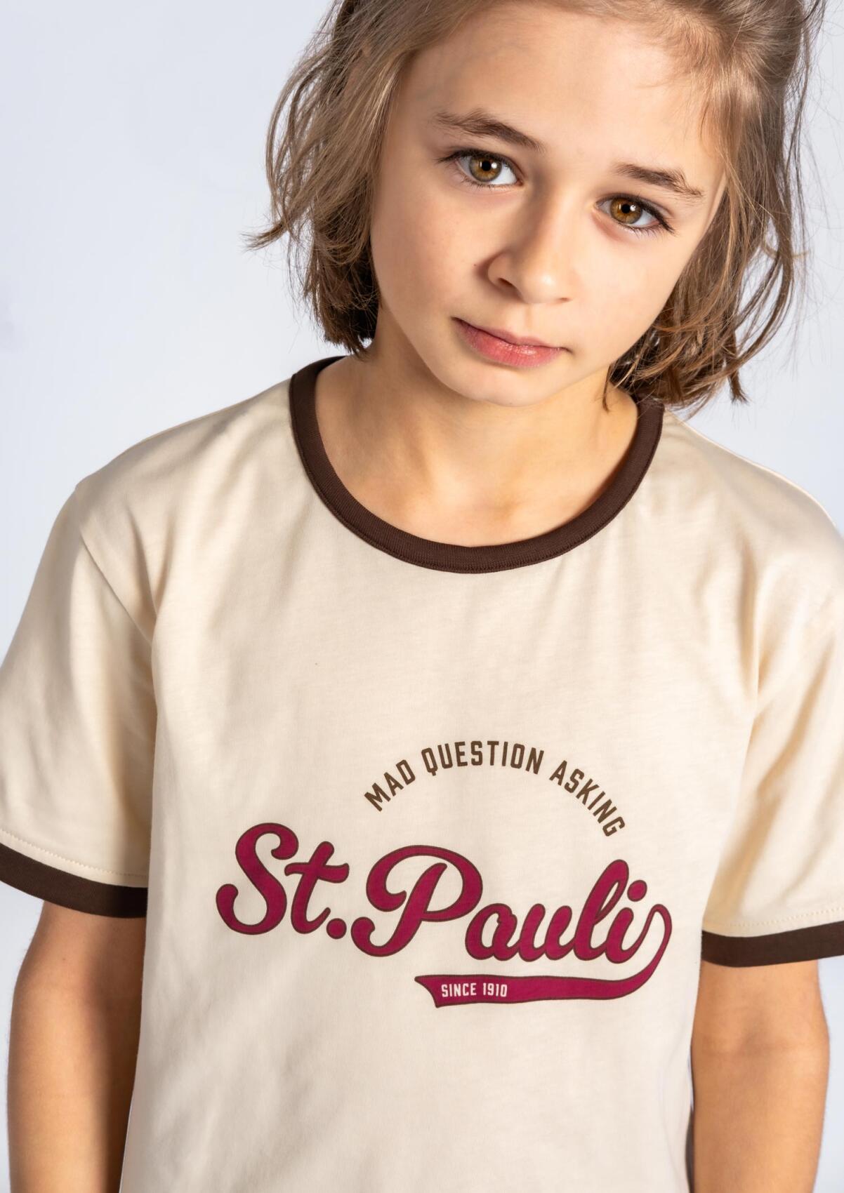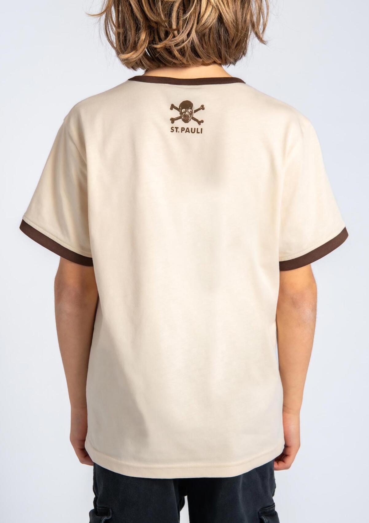 Für kleine Fans mit großem Stil: Das FC St. Pauli Kinder T-Shirt "College" in Offwhite ist die perfekte Wahl für junge Kiezkicker. Der Kontrastkragen und die farblich abgesetzten Ärmelbündchen verleihen dem Shirt einen coolen College-Look. Der auffällige College-Print auf der Vorderseite sorgt für sportliche Vibes, während der schwarze Totenkopf-Print auf der Rückseite den typischen FC St. Pauli Stil ergänzt. Dieses bequeme und stylische Shirt passt perfekt zu Schule, Freizeit oder dem nächsten Stadionbesuch.