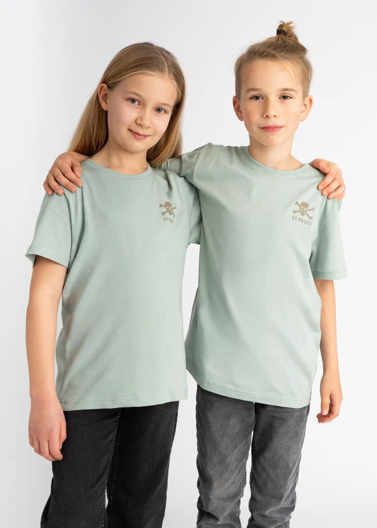 Kleiner Style, große Aussage: Das mintgrüne T-Shirt mit gespraytem Smile-Motiv ist Streetart für die Kids. Lockerer Schnitt, weiche Bio-Baumwolle, FCSP-Print im Nacken – dieses Shirt macht klar, wo man hingehört. Für die nächste Generation Kiezkicker, die Haltung zeigen – schon auf dem Schulhof.