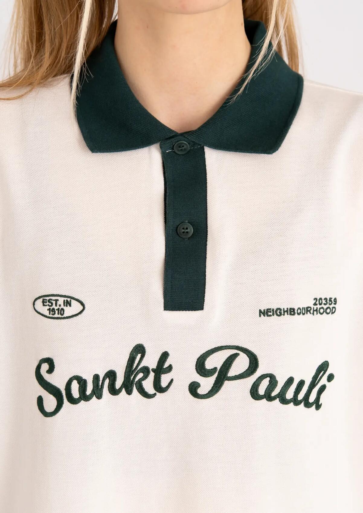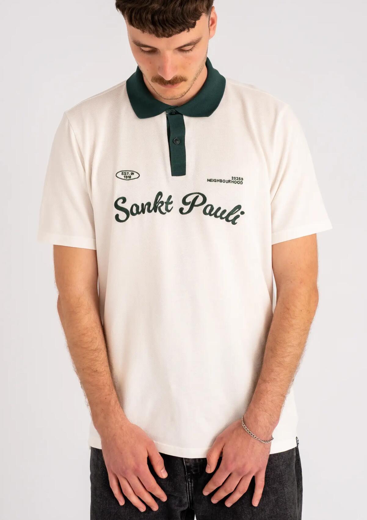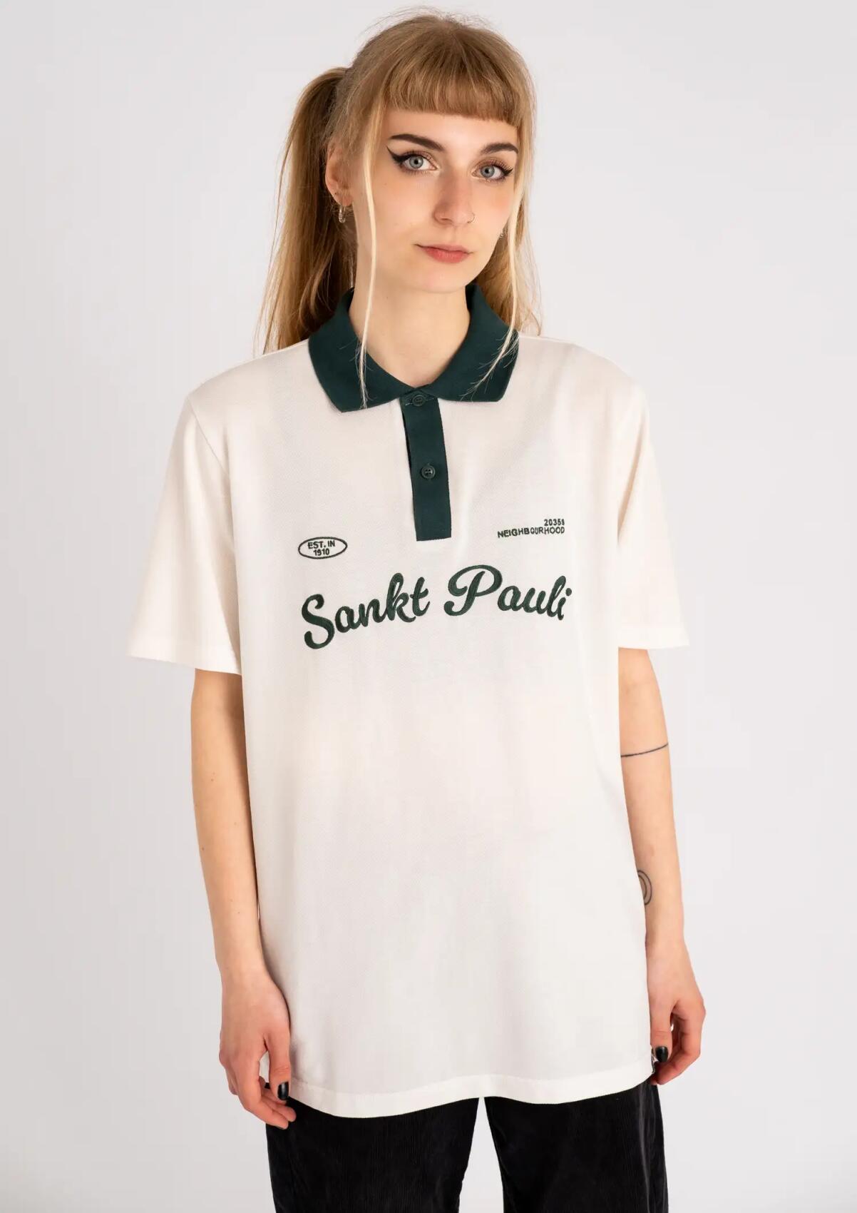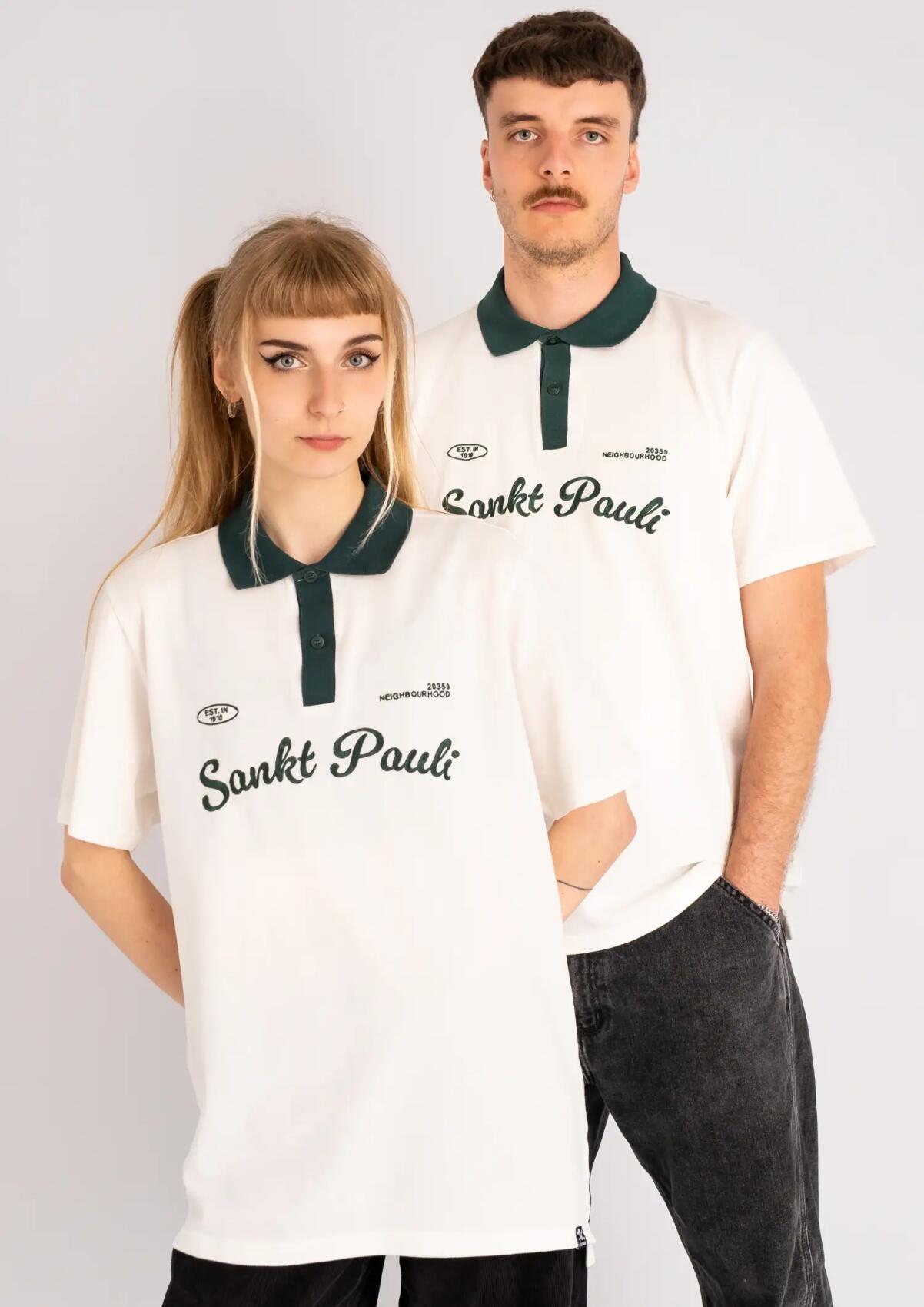 College-Coolness im Sommermodus: Das FC St. Pauli Poloshirt „Retro College“ bringt sportlichen 50s-Style direkt auf die Straße. Mit weißem Grund, grünem Polokragen und dem geschwungenen „Sankt Pauli“-Schriftzug auf der Brust schlägt dieses Shirt die Brücke zwischen Campus-Flair und Kiez-Mentalität. Die 100% Bio-Baumwolle sorgt für ein angenehmes Tragegefühl – egal ob beim Heimspiel, in der Kneipe oder auf dem Fahrrad durch St. Pauli. Clean, sportlich, unverkennbar FCSP.