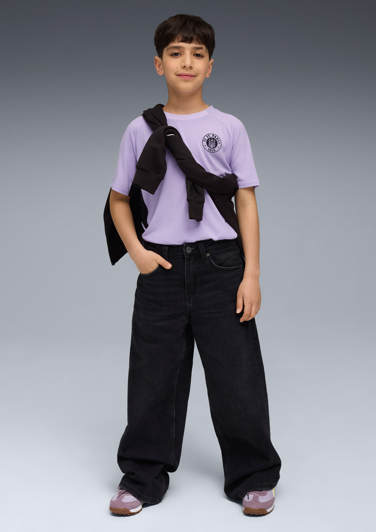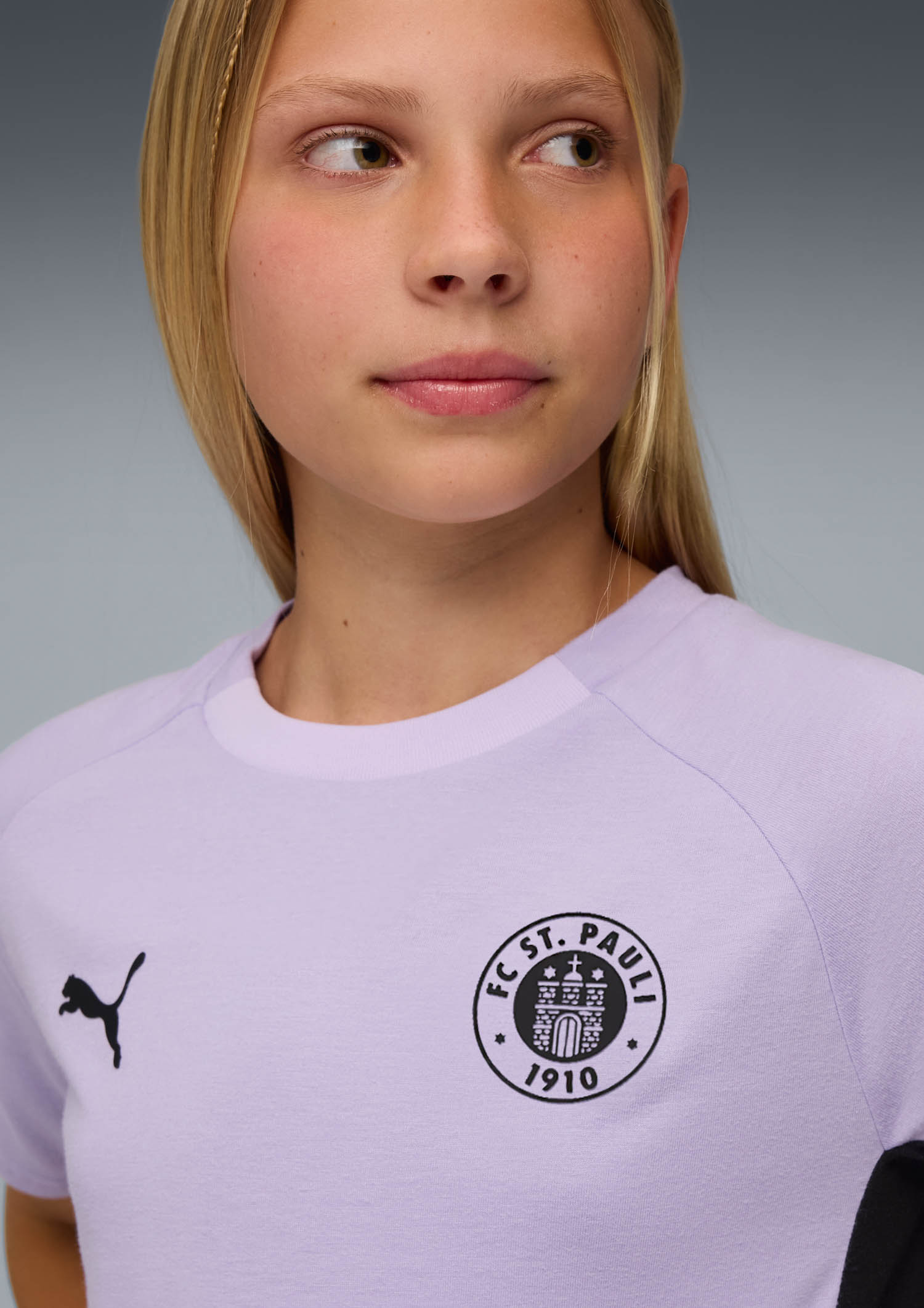 Das offizielle Teamshirt der Profis – auch für Kinder. Identisch zur Ausführung der ersten Mannschaft in der Saison 2025/26, in Violett mit schwarzen Details. Der bequeme Schnitt mit Raglanärmeln sorgt für Bewegungsfreiheit beim Sport oder im Alltag. Mit Vereinswappen und PUMA-Logo – für junge Fans, die Teil des Teams sein wollen.