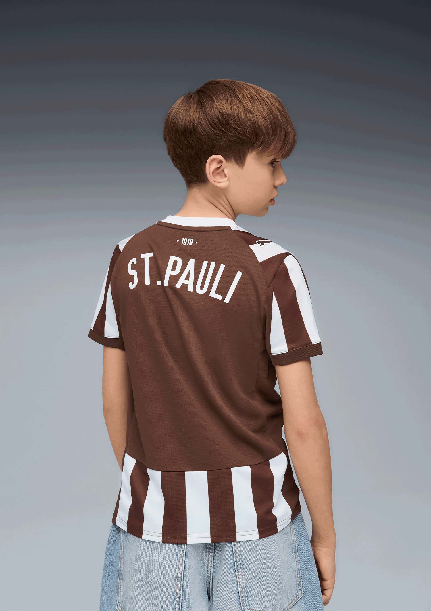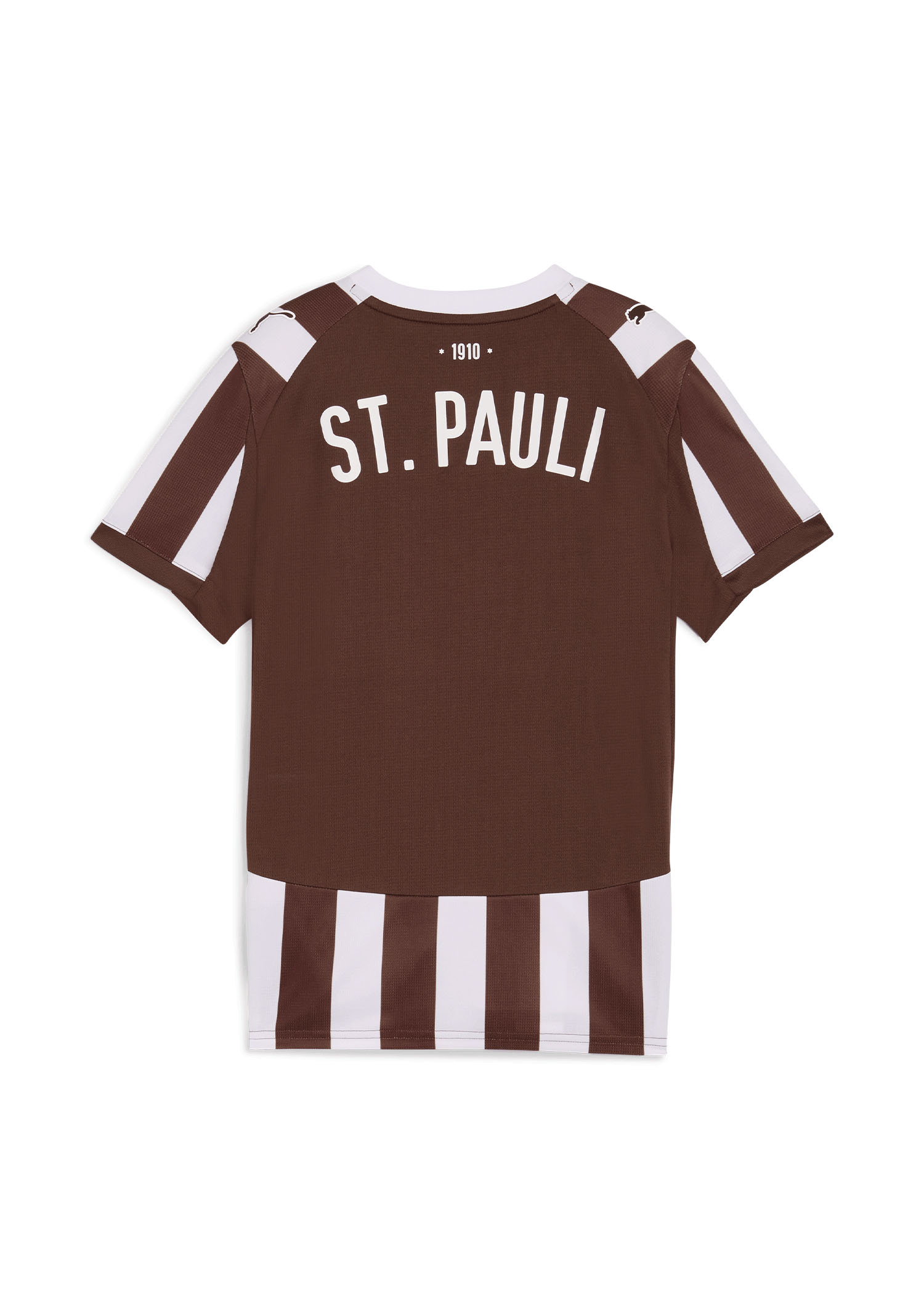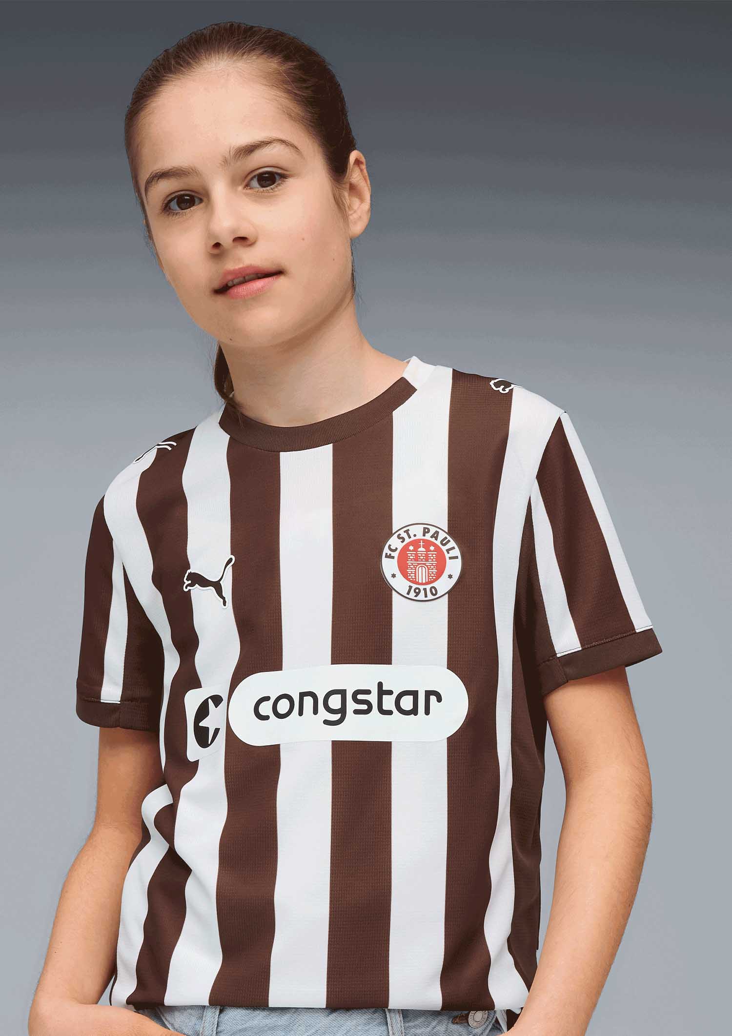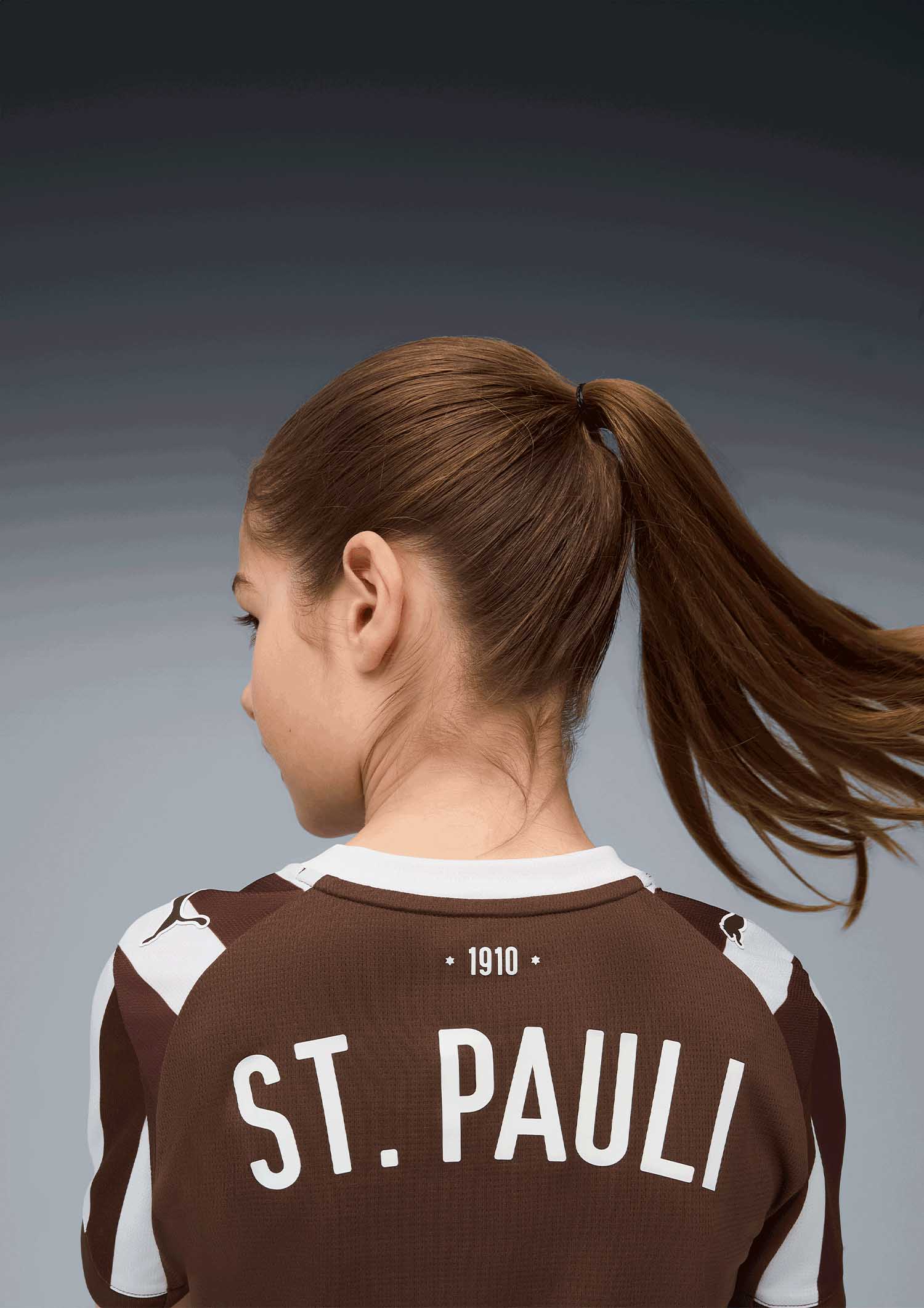 Das Trikot trägt die traditionellen Farben des Vereins und spiegelt die Werte des FC St. Pauli wider - getreu dem Motto „Braun. Weiß. Fürs Spiel.“ Mit den klassischen Längsstreifen bringt das Trikot die Geschichte unseres Vereins auf den Rasen und verbindet Vergangenheit mit Zukunft.