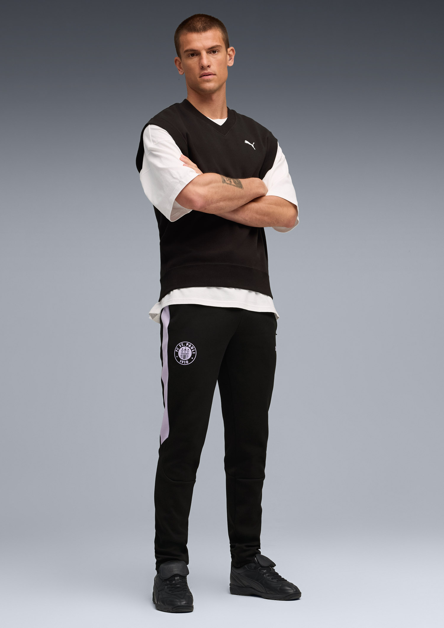 Die offizielle Jogginghose der FC St. Pauli Profis für die Saison 2025/26. Teil der originalen Teamline – in Schwarz mit violetten Einsätzen an den Seiten. Der sportliche, schmal zulaufende Schnitt bietet Bewegungsfreiheit, das weiche Material sorgt für angenehmen Tragekomfort. Mit FCSP-Wappen und PUMA-Logo auf den Oberschenkeln – ideal fürs Training, Aufwärmen oderdie Freizeit.
