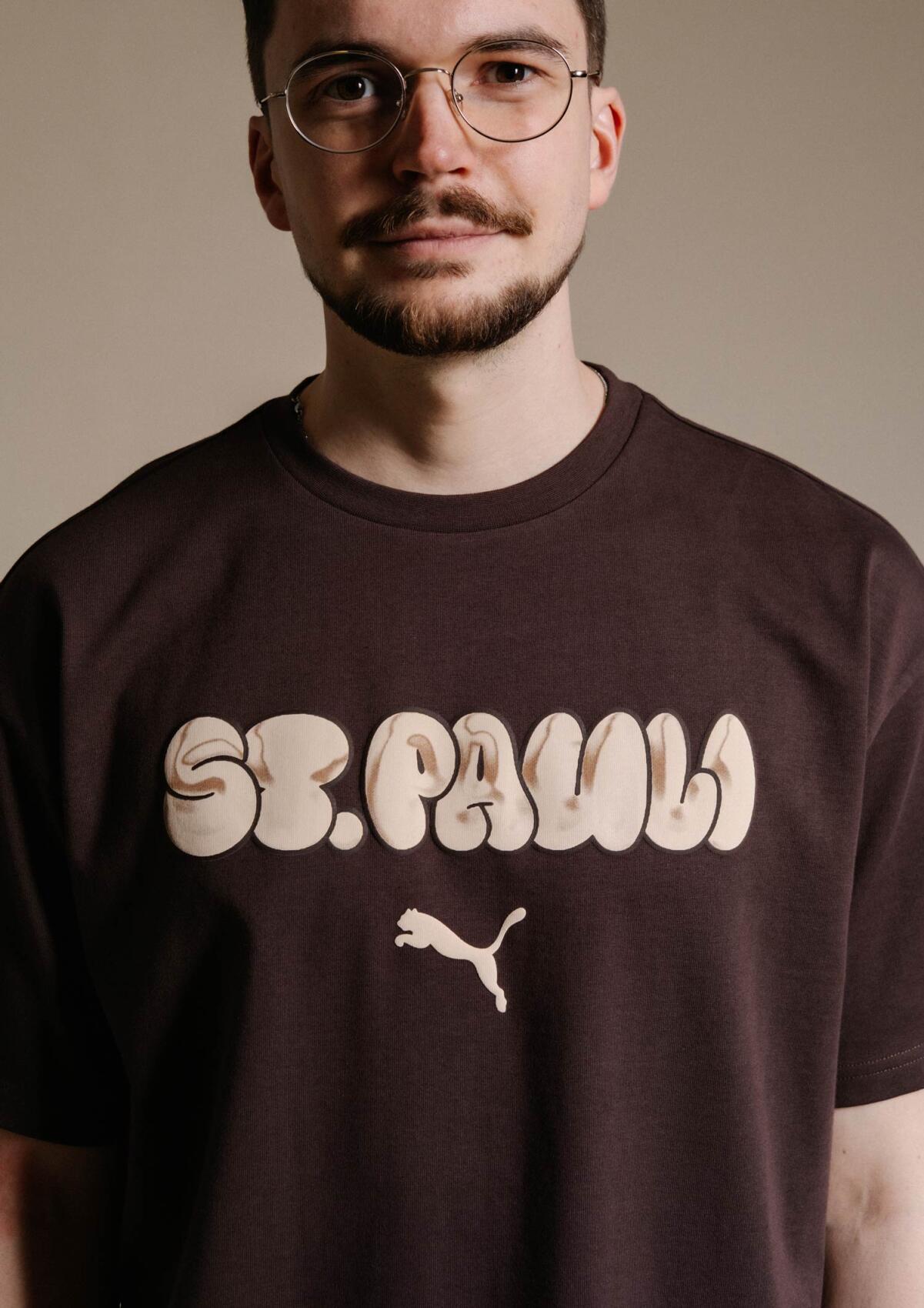 Reduziert im Design, klar im Ausdruck: Das FC St. Pauli x PUMA T-Shirt aus dem Graphic Pack verbindet sportliche Einflüsse mit urbaner Streetwear. Der satte Farbton in Chocolate trifft auf einen markanten „St. Pauli“-Frontprint im weichen Retro-Stil, ergänzt durch das dezente PUMA Cat Logo.
