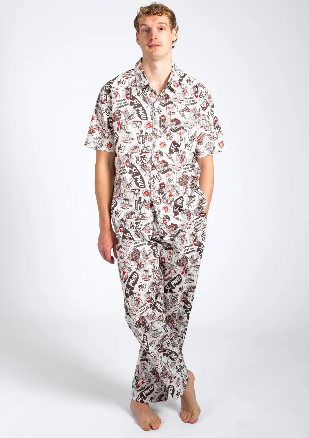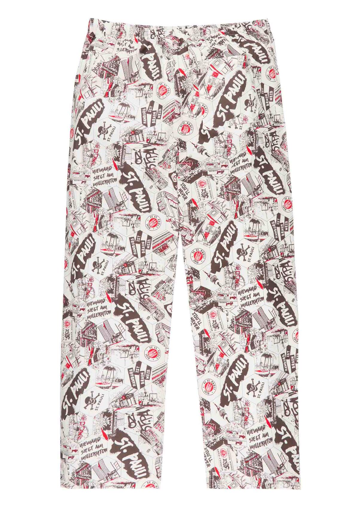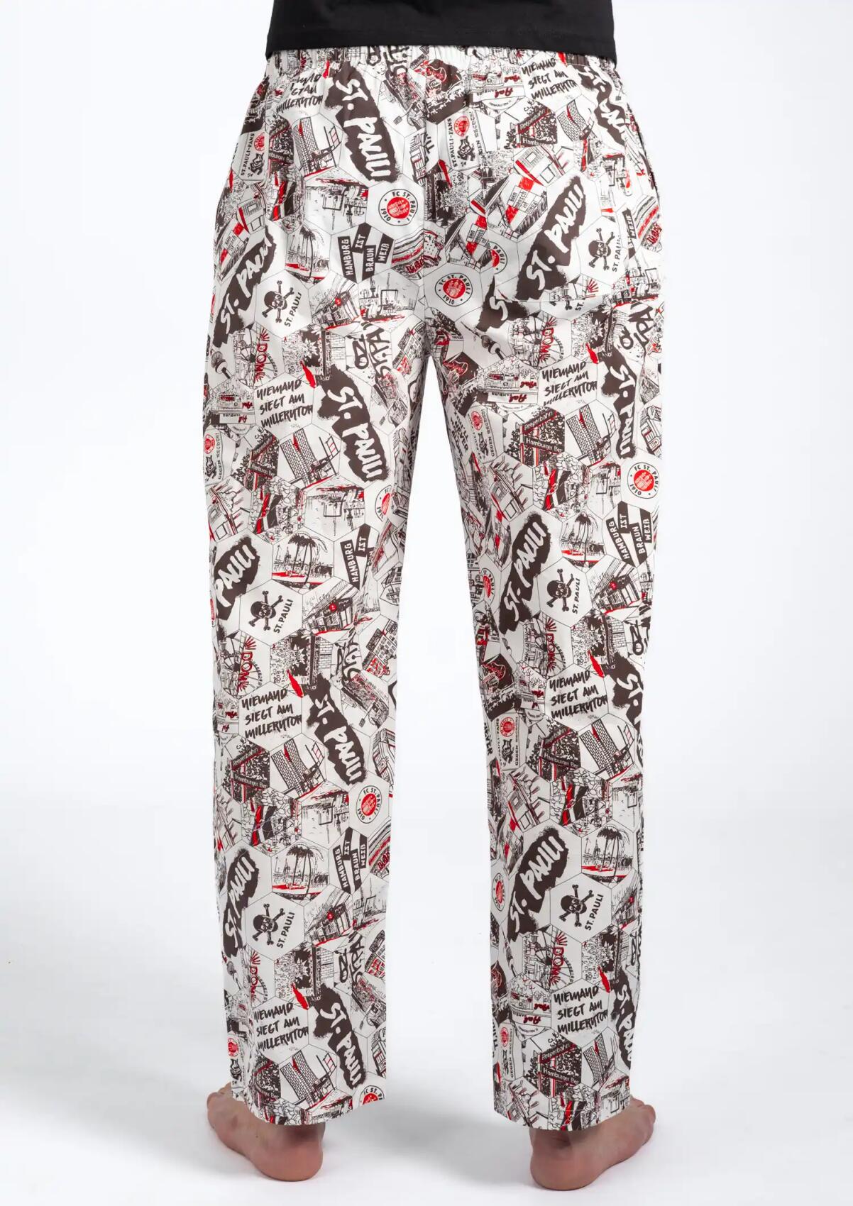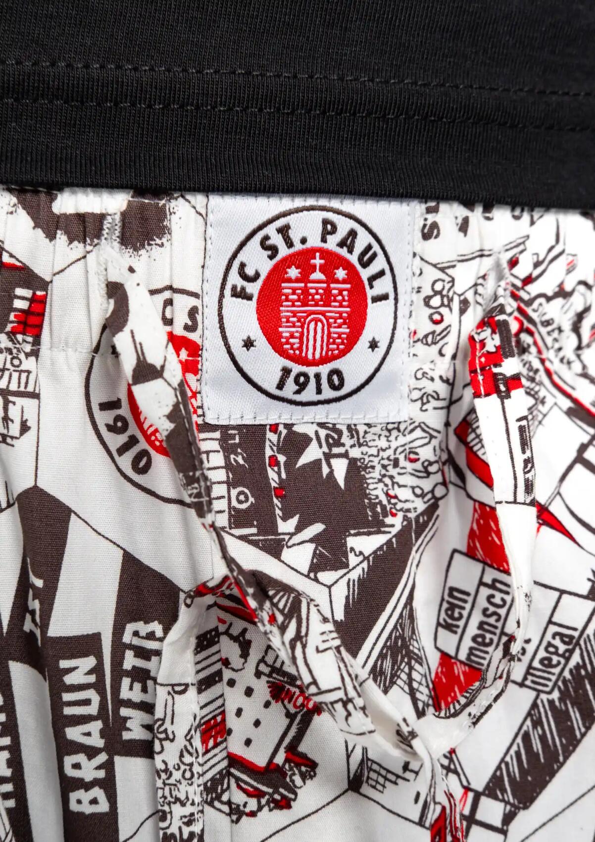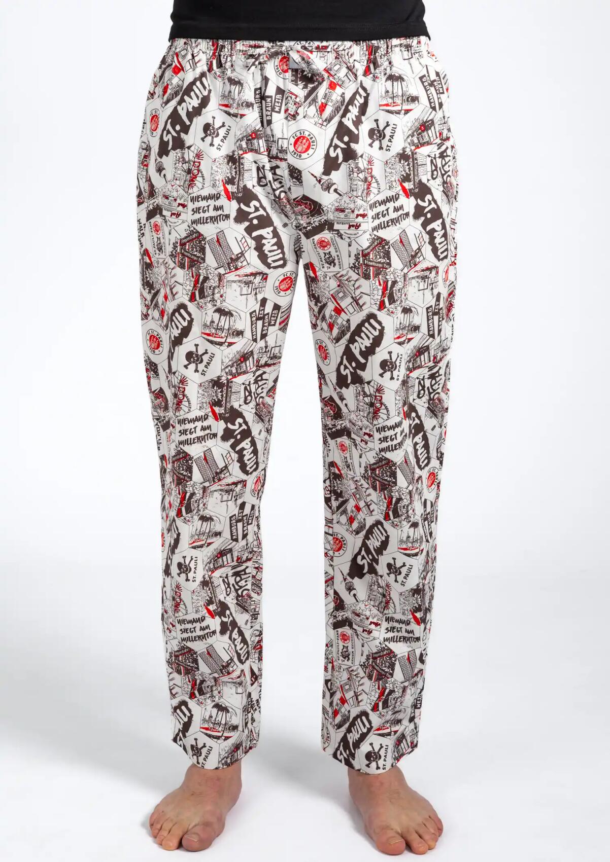 Entspannt schlafen im St. Pauli Style: Die Schlafanzughose "Viertel" kombiniert Komfort mit einem markanten All-over Print, der den Geist des Hamburger Kiez einfängt. Aus weicher Baumwolle gefertigt, bietet sie maximale Bequemlichkeit für erholsame Nächte oder entspannte Tage auf der Couch. Ein Statement für Fans, die ihre Liebe zu FC St. Pauli auch zuhause zeigen möchten.