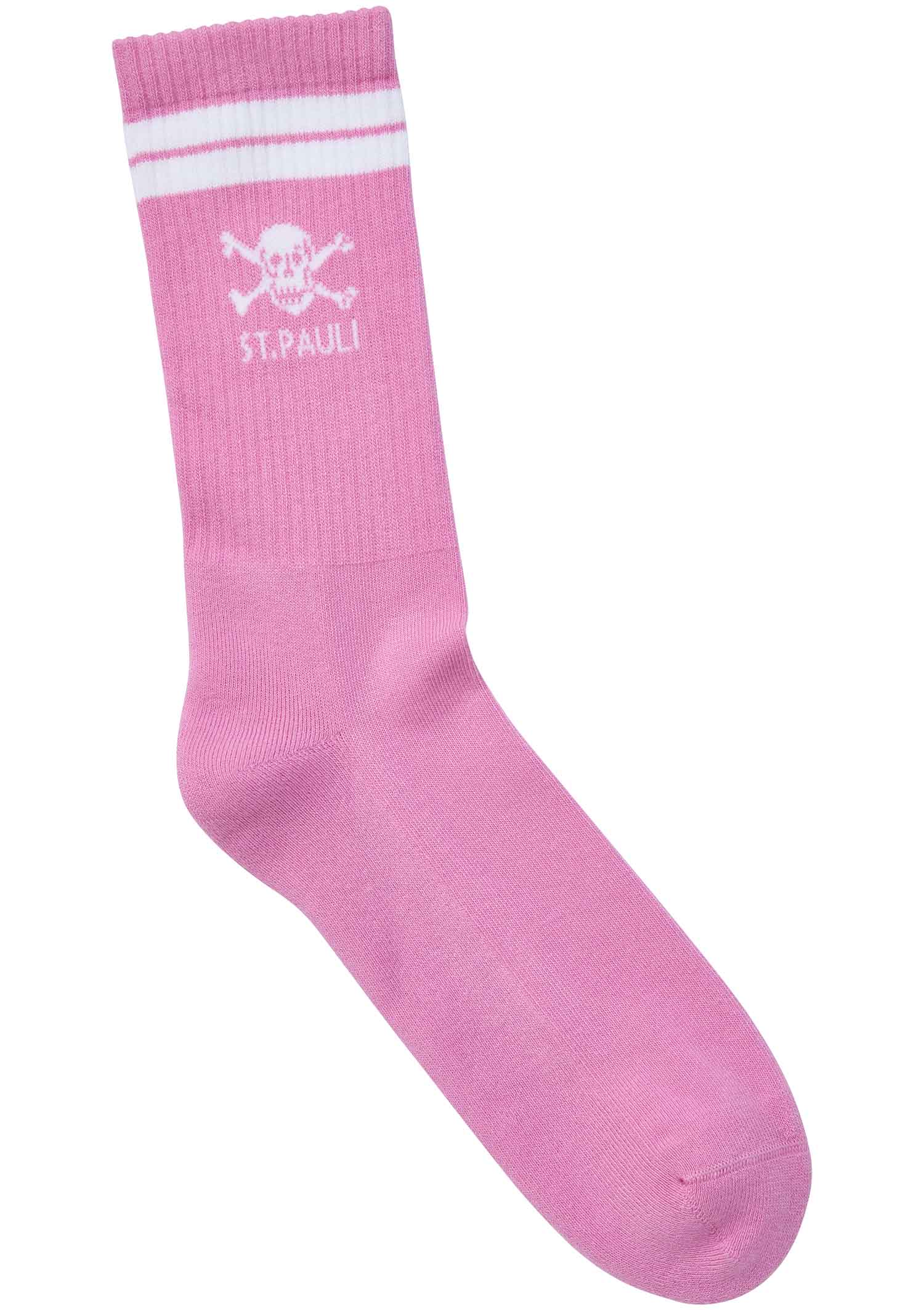 Für alle, die Farbe bekennen: Die pinken Socken "St. Pauli Skull and Crossbones" setzen ein starkes Statement. Mit eingesticktem Totenkopf-Motiv und kontrastierenden Streifen bieten sie den perfekten Mix aus Style und Komfort – egal ob im Alltag oder im Stadion.