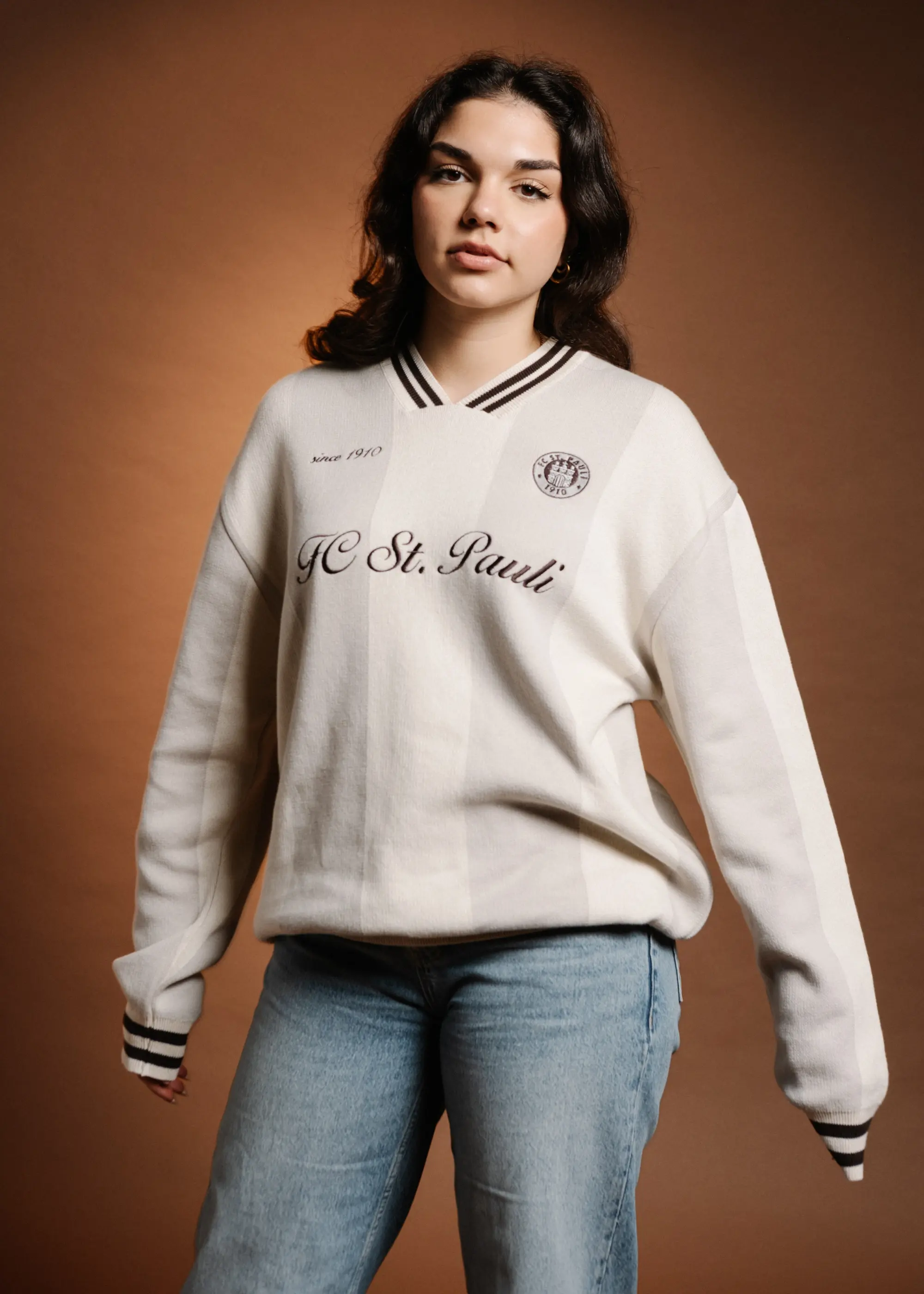 Zeitreise mit Stil: Der FC St. Pauli „Polo Grand Dad“ Strickpullover bringt den Vibe der 70er zurück auf den Kiez. Mit schmalem Streifenmuster, braunem Polokragen und Knopfleiste vereint er Retro-Look mit klarer Haltung. Auf der Brust prangt dezent „St. Pauli“, während das Vereinslogo im Nacken deine Zugehörigkeit markiert. Der Schnitt ist locker, der Style ist lautlos – aber sagt alles. Für Fans, die wissen, dass Streetwear auch smarter aussehen kann. Klassisch rebellisch – genau wie der Stadtteil, den wir lieben.