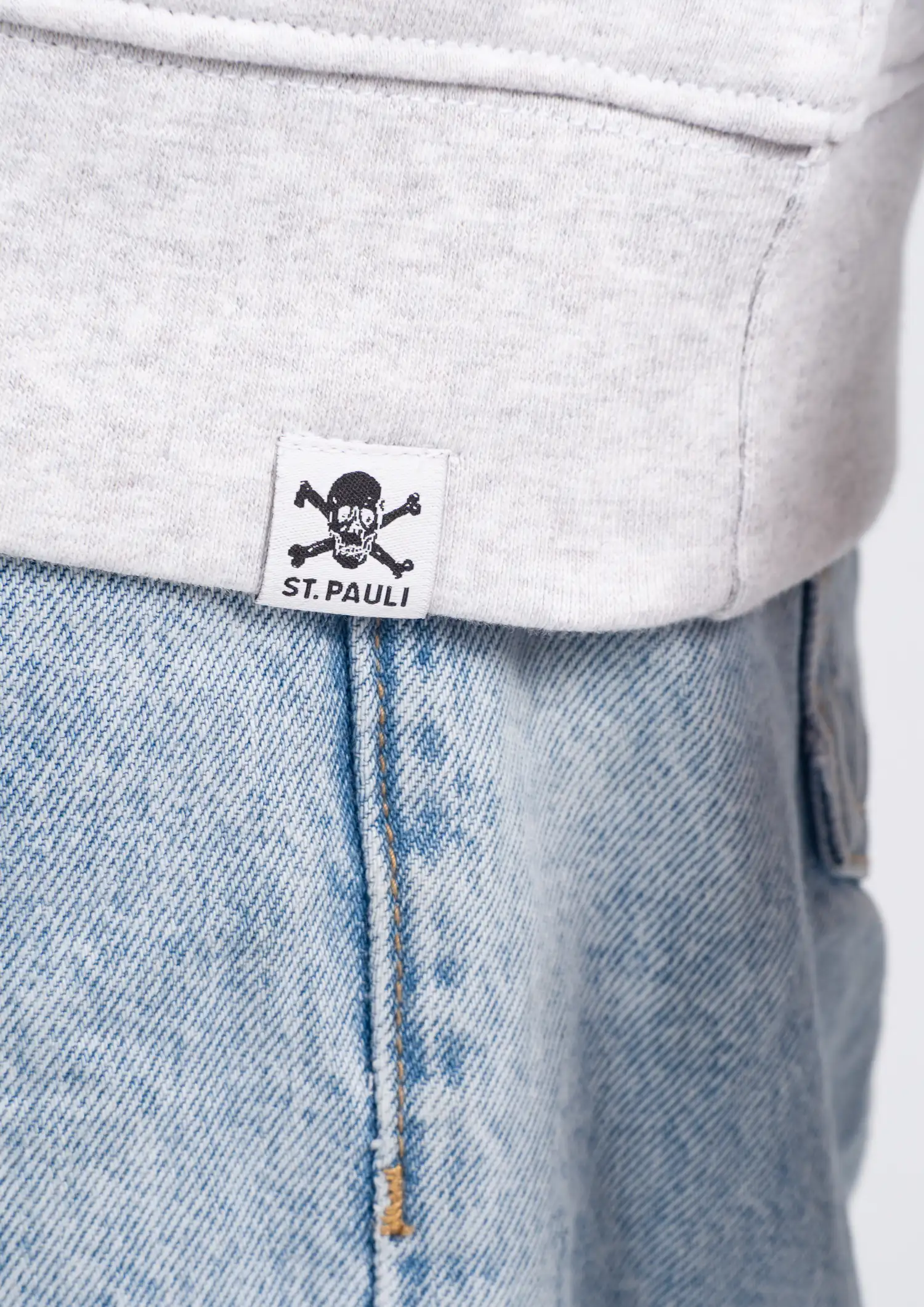 Straight aus dem Viertel und clean im Look: Der FC St. Pauli Sweater „St. Pauli Pure“ in Hellgrau überzeugt durch Understatement und Haltung. Mit dezentem ST. PAULI Stick auf der Brust und aus 100 % Biobaumwolle gefertigt, ist er der ideale Begleiter für alle, die klare Kante zeigen – ganz ohne laute Logos. Für den Alltag, fürs Stadion, für echte Kiezkicker.