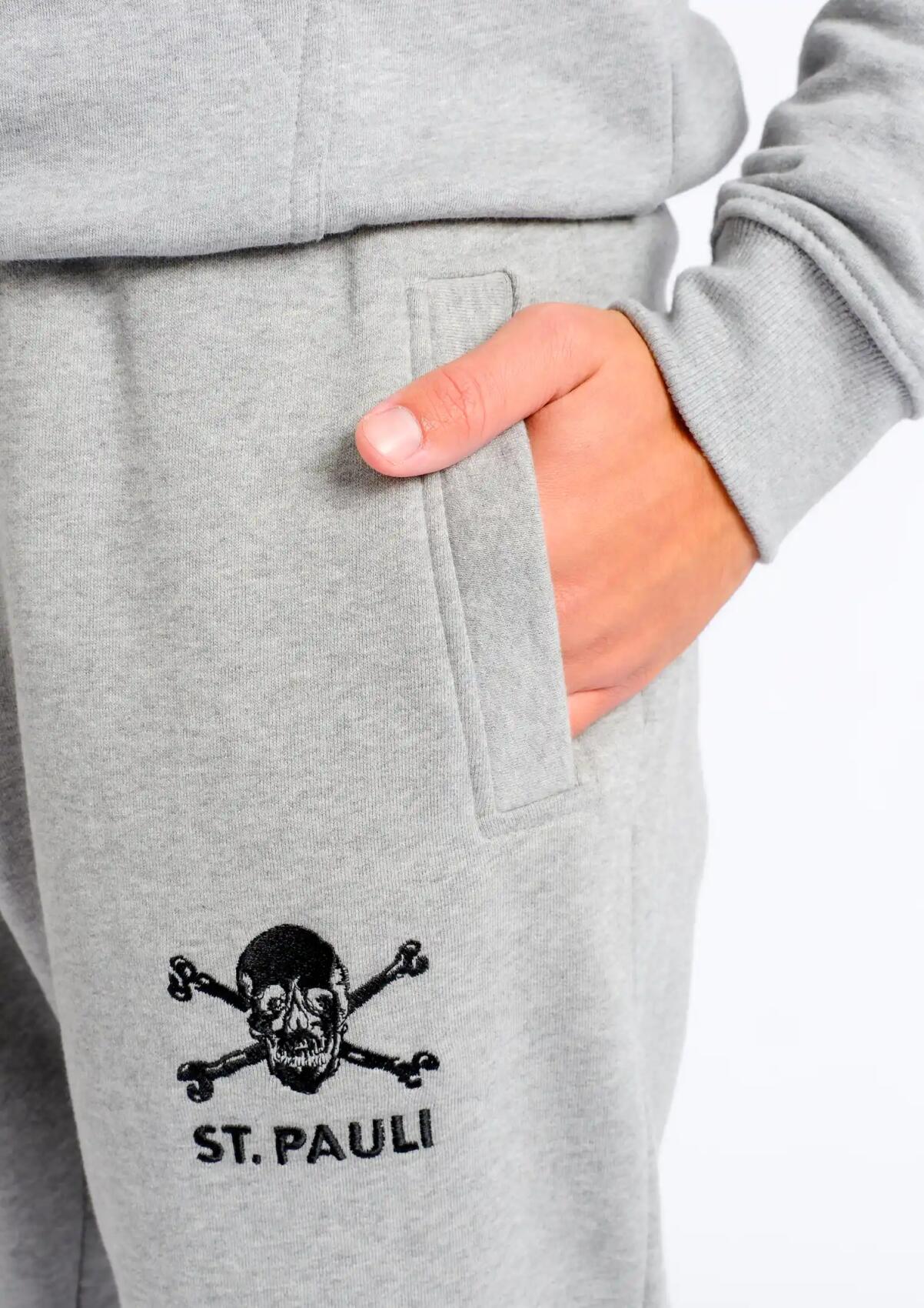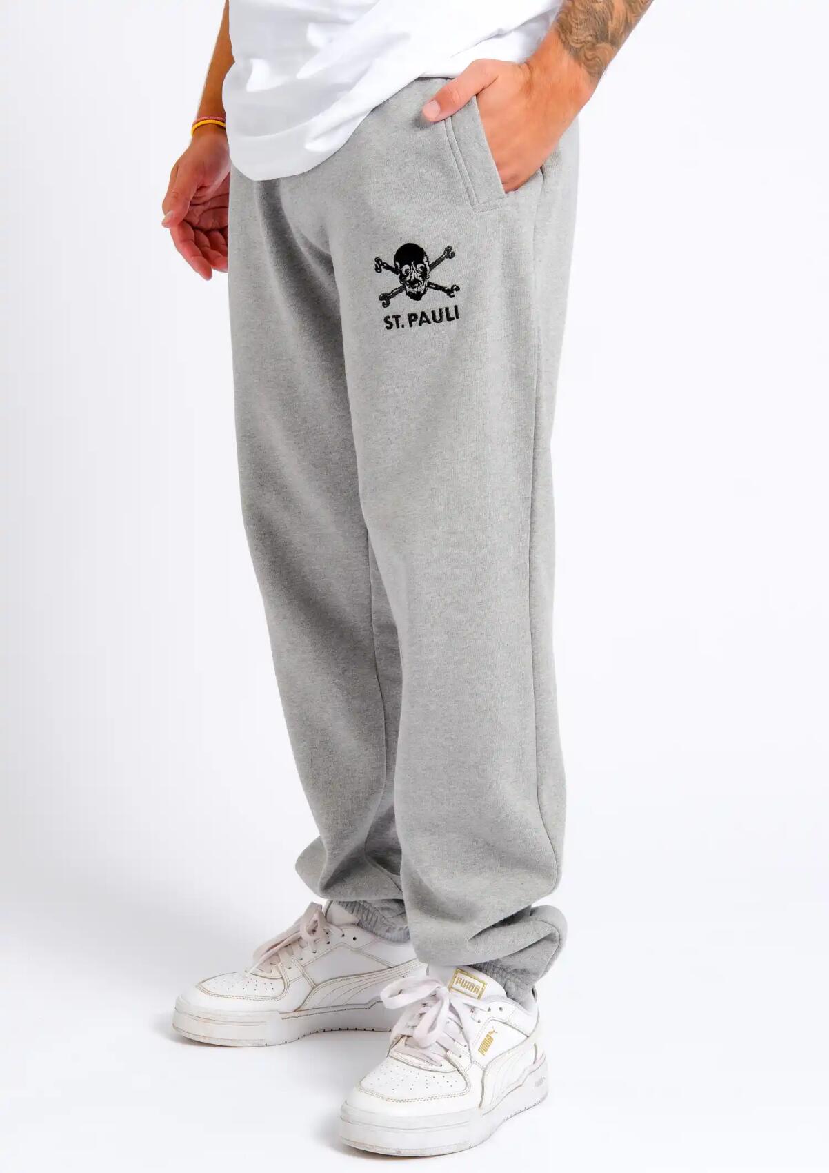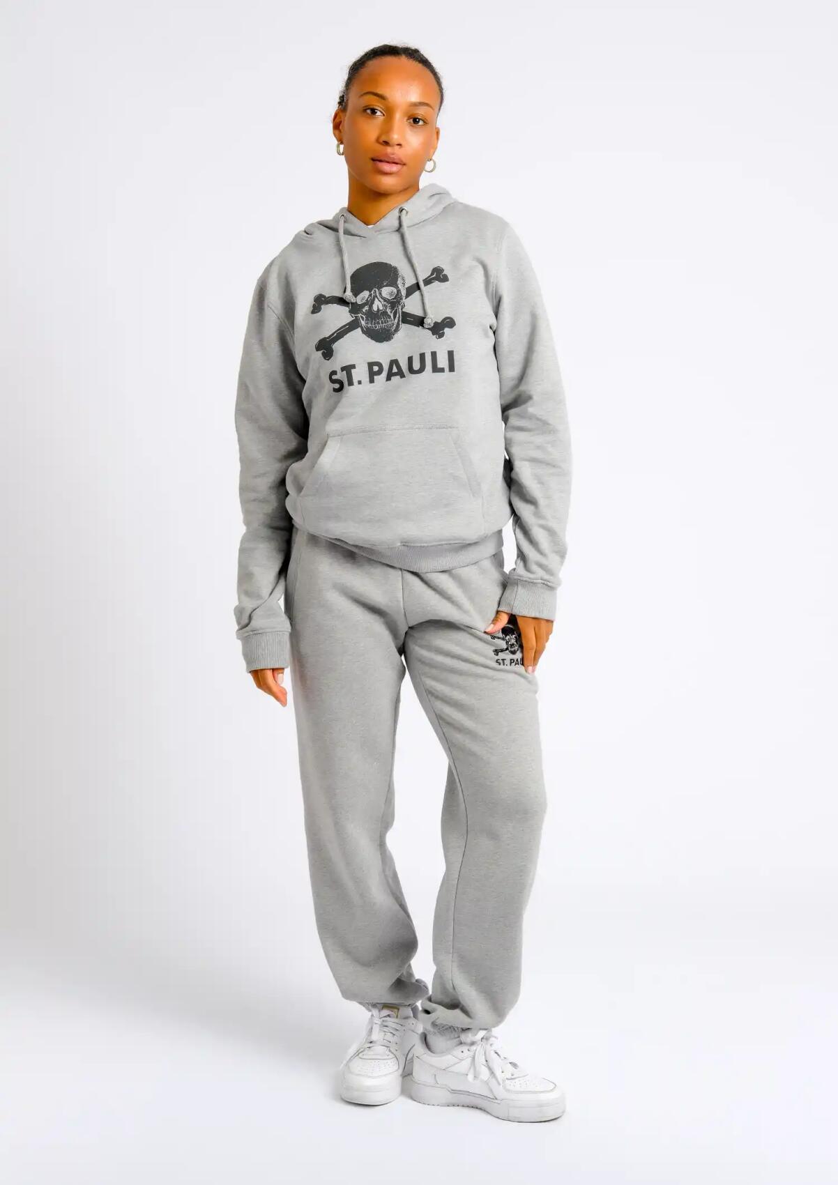Mit der FC St. Pauli Sweathose Totenkopf holst du dir maximalen Komfort und den legendären Totenkopf-Style. Die grau melierte Jogginghose überzeugt mit einem minimalistischen Design, das durch den Totenkopf-Print auf dem Oberschenkel perfekt ergänzt wird. Der elastische Bund mit Kordelzug und die Bündchen an den Beinen sorgen für optimalen Sitz, egal ob beim Sport oder beim Entspannen. Ein Must-Have für alle, die ihren FC St. Pauli Support auch in der Freizeit zeigen wollen.