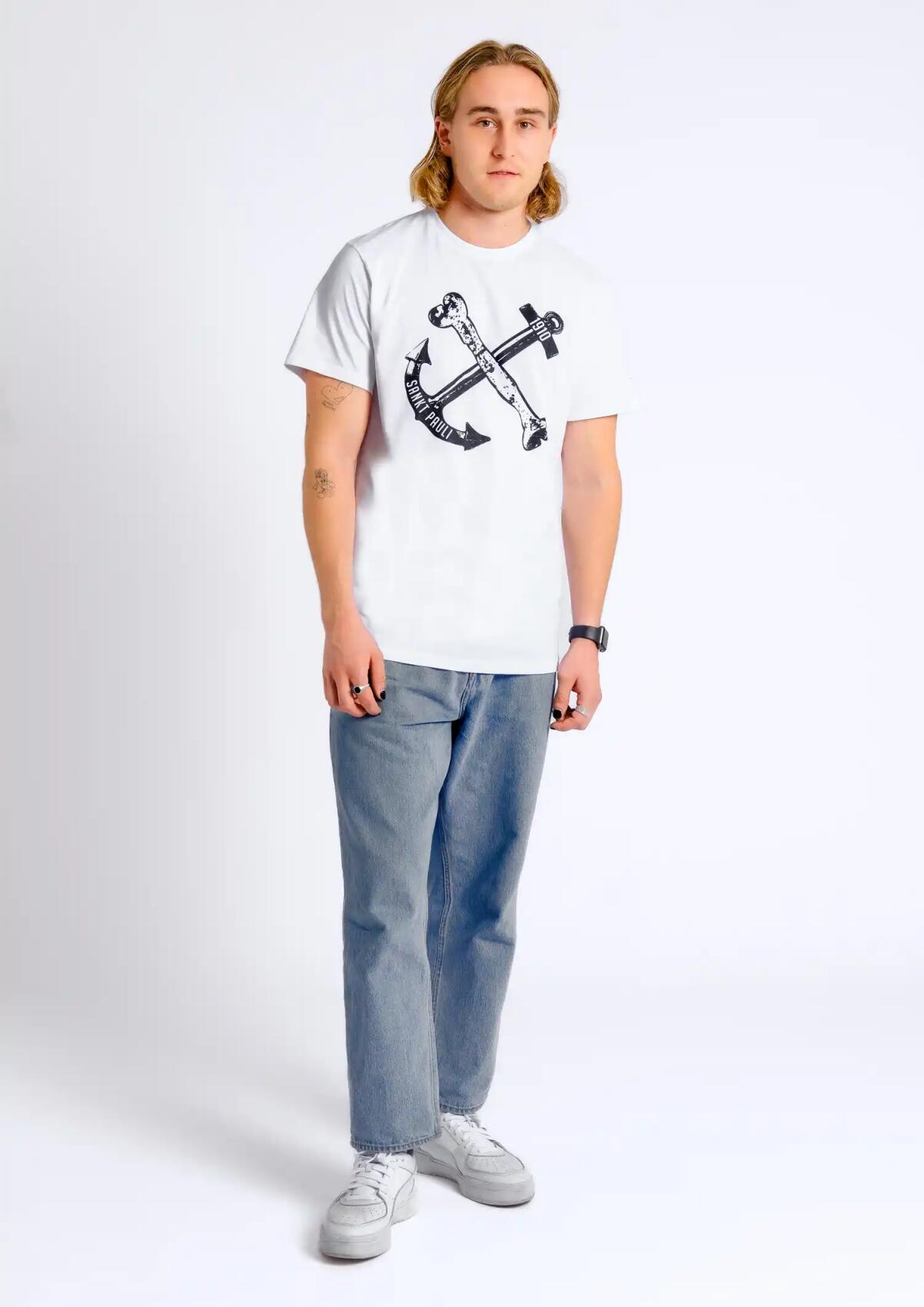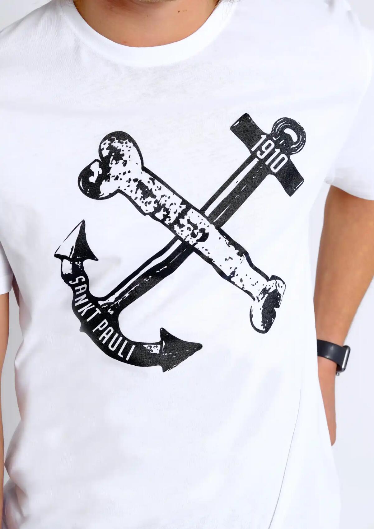 Hafenstyle in Weiß! Das T-Shirt mit dem markanten Anker-Print und der Schrift "Sankt Pauli 1910" bringt den einzigartigen Spirit des Kiezes auf den Punkt. Perfekt für alle, die die Verbindung zum Kiez und zur See zeigen wollen. Egal ob im Stadion, auf der Straße oder am Hafen – mit diesem Shirt setzt du ein klares Statement für St. Pauli.