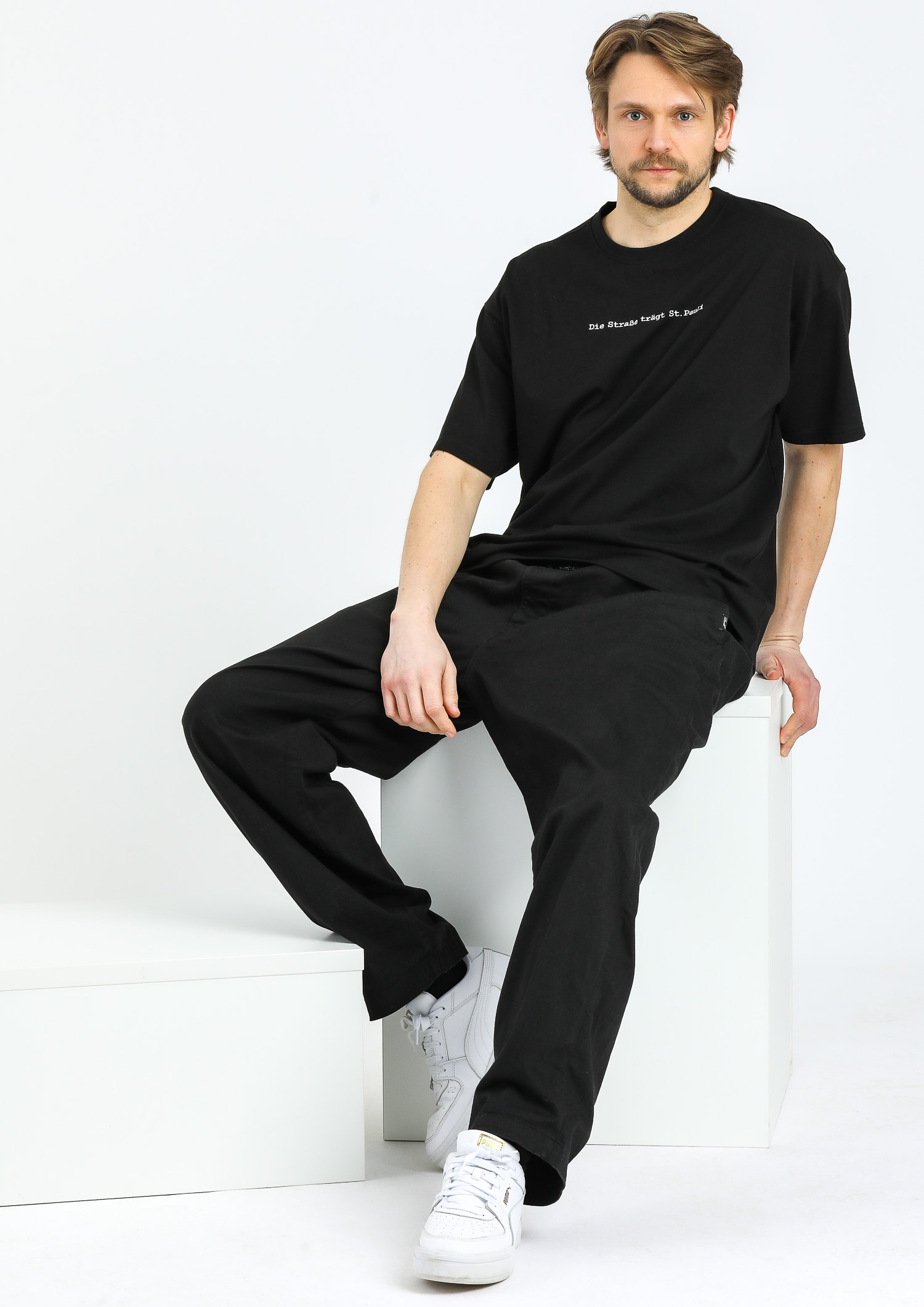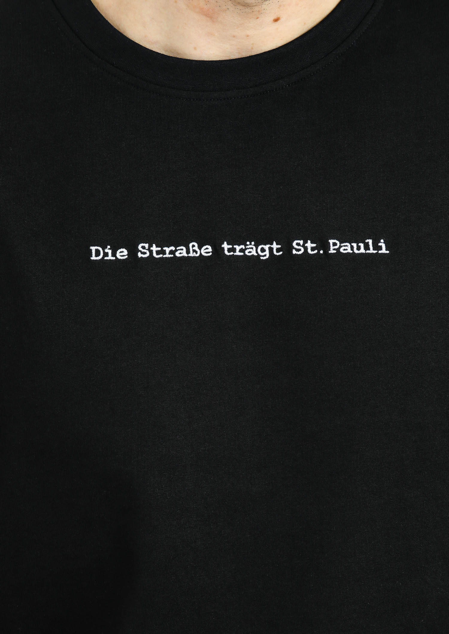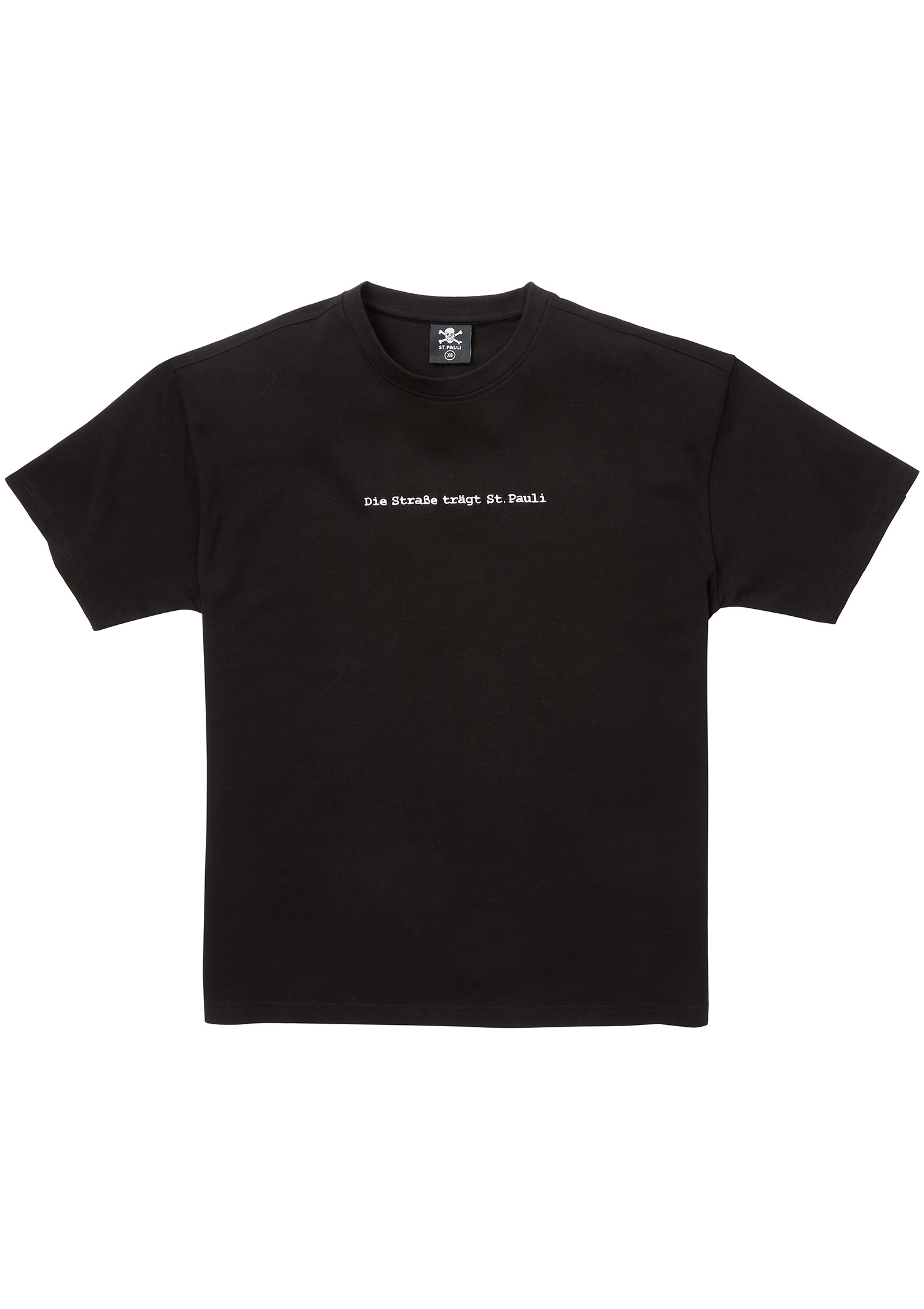 Das schwarze T-Shirt "Die Straße trägt St. Pauli" setzt klare Statements. Auf der Brust prangt der markante Schriftzug "Die Straße trägt St. Pauli", während die Rückseite mit dem ikonischen Totenkopf-Logo des FC St. Pauli beeindruckt. Der lässige Schnitt aus hochwertiger Baumwolle sorgt für maximalen Komfort und Stil. Für alle, die den FC St. Pauli auch auf den Straßen repräsentieren wollen.