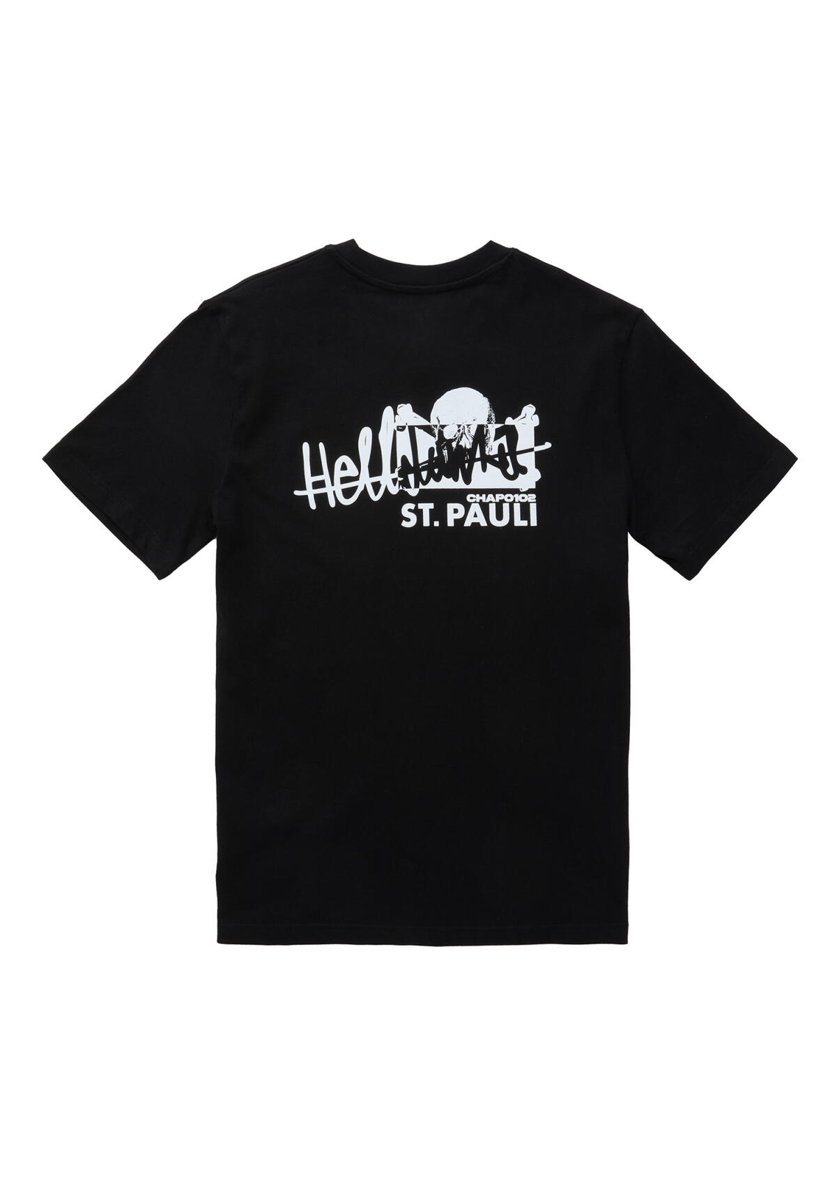 Finally - endlich machen wir auch auf Textil gemeinsame Sache und versorgen euch mit frischestem FCSP x Chapo102 Kollabo-Merch! Als Sonderedition passend zu Chapos aktuellem "helldunkel"-Album samt Tour kommt das schwarze Shirt im loose Fit mit kleinem Kollabo-Print auf der Brust und großem Backprint, der Chapo und den st. paulianischen Totenkopf helldunkel in Szene setzt. ...und das Beste zum Schluss - Teile der gemeinsamen Erlöse fließen an die FC St. Pauli Rabauken, die dadurch wiederum sozial benachteiligten Kids die Möglichkeit geben, an einem der Rabauken-Feriencamps teilzunehmen.